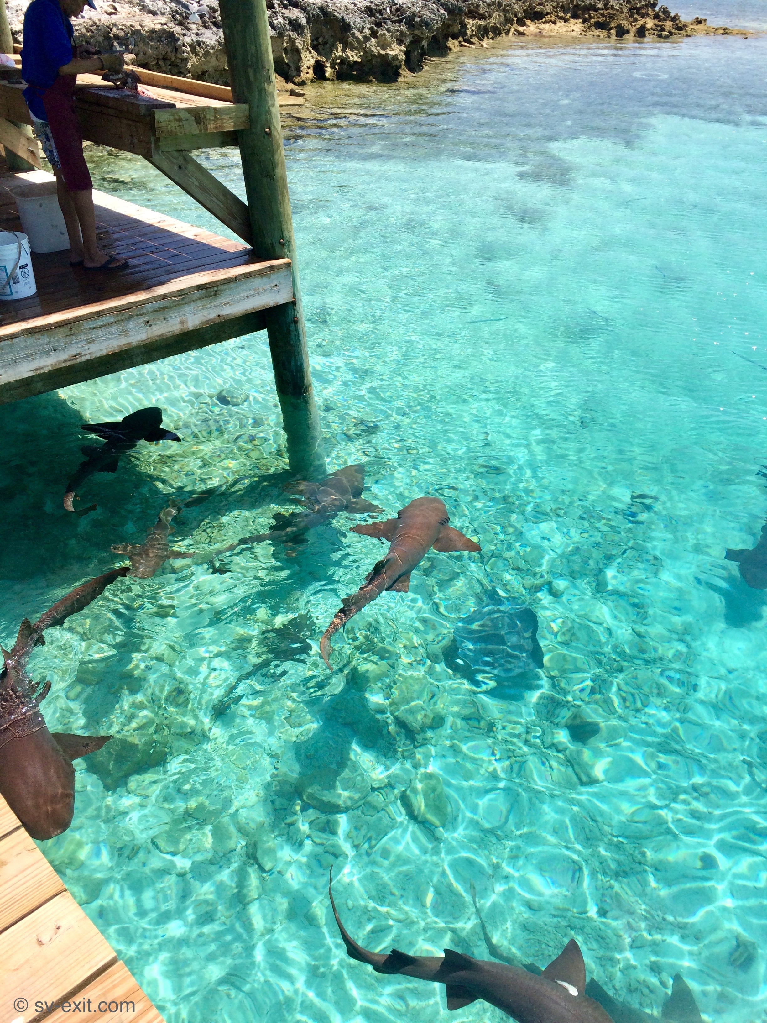 Nurse sharks at the fish cleaning area