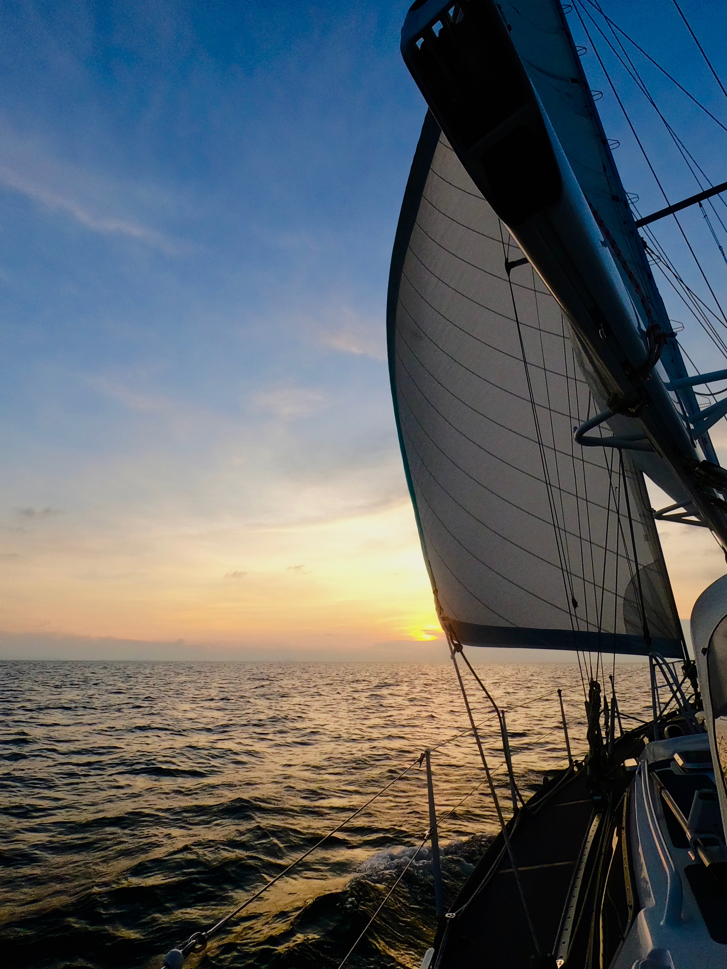 Previous Image Next Image Underway from Utila to Rio Dulce Passage sunset between Honduras and Guatemala