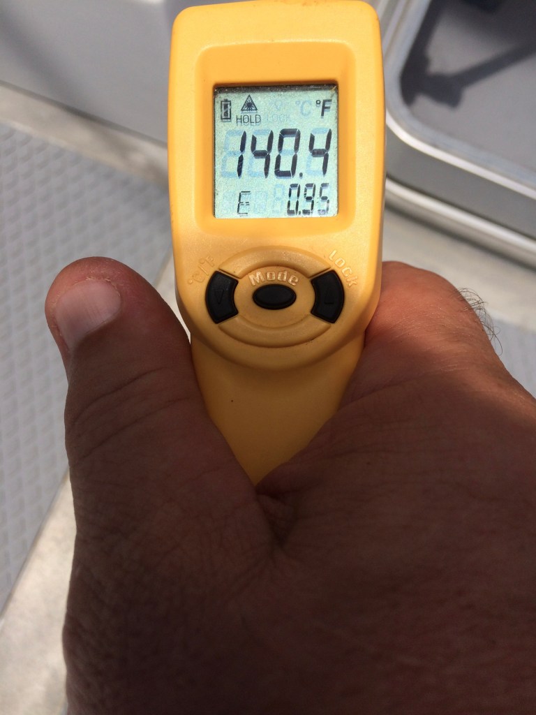 At least with overcast days we avoided the 140 degree temperatures the bare metal deck reached in direct sunlight!
