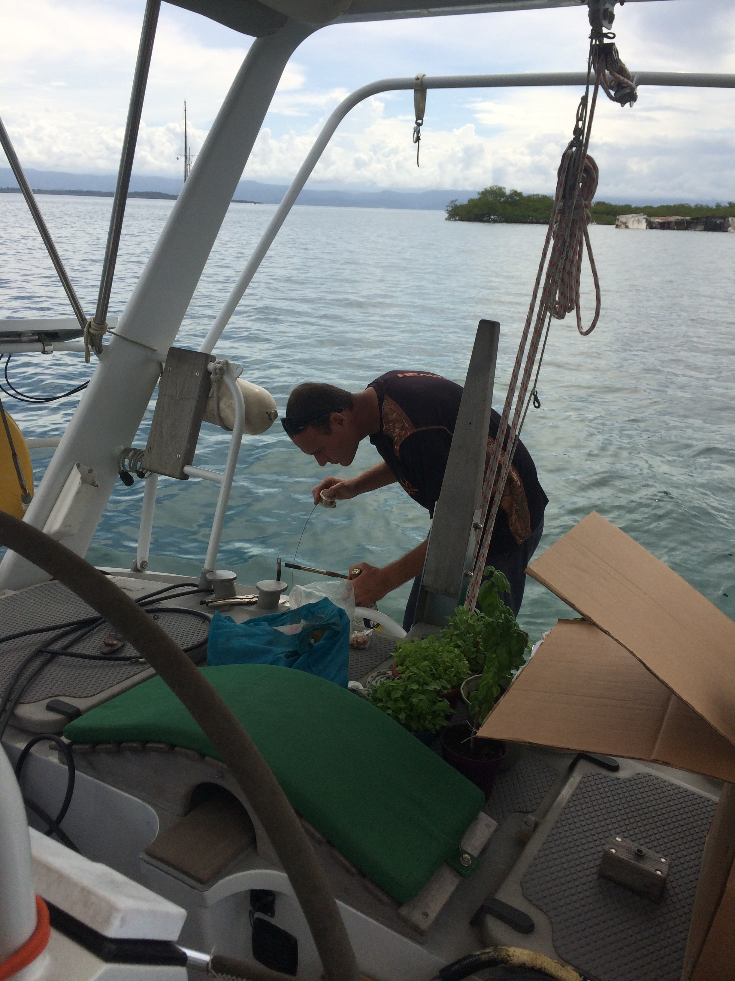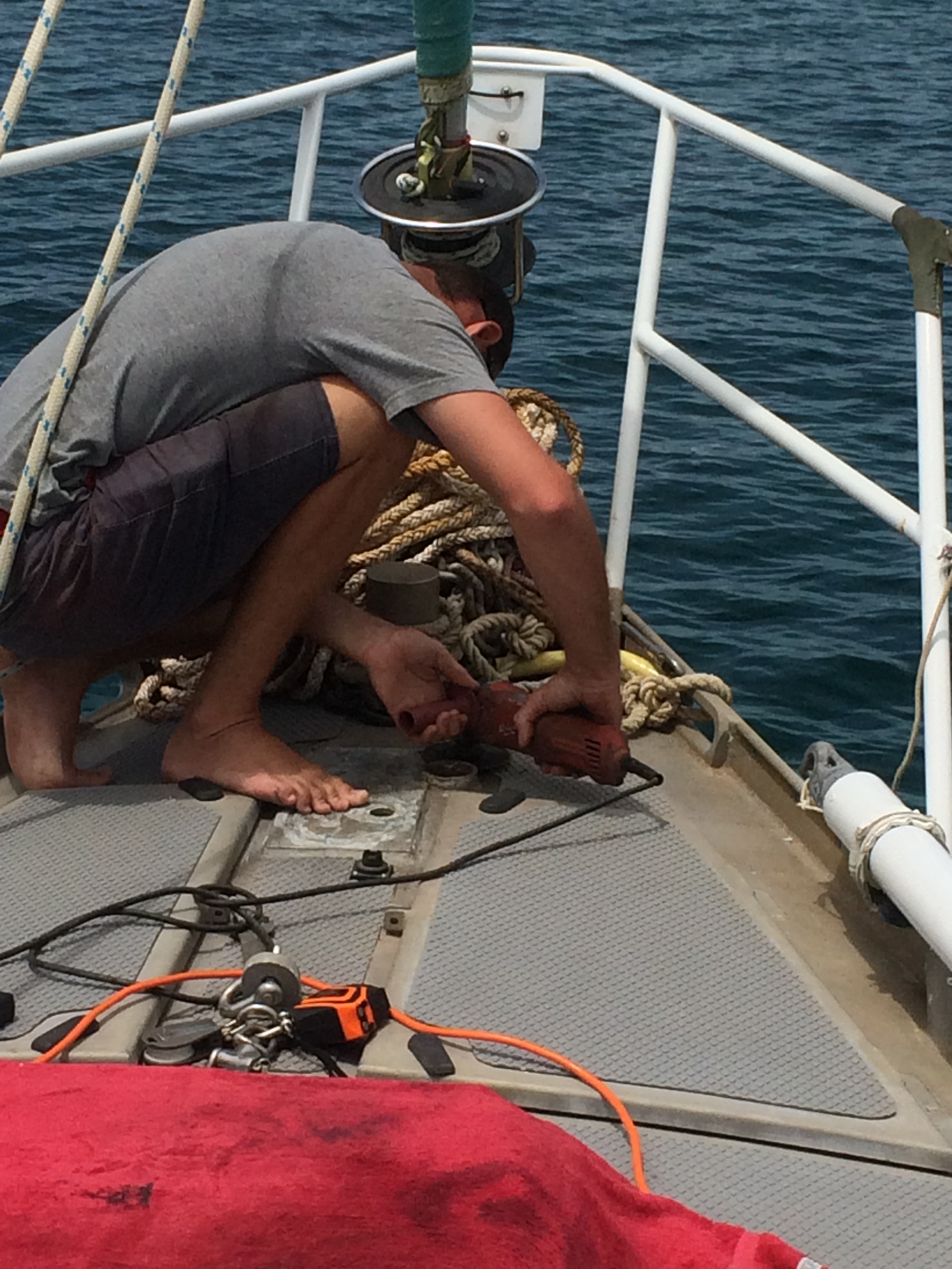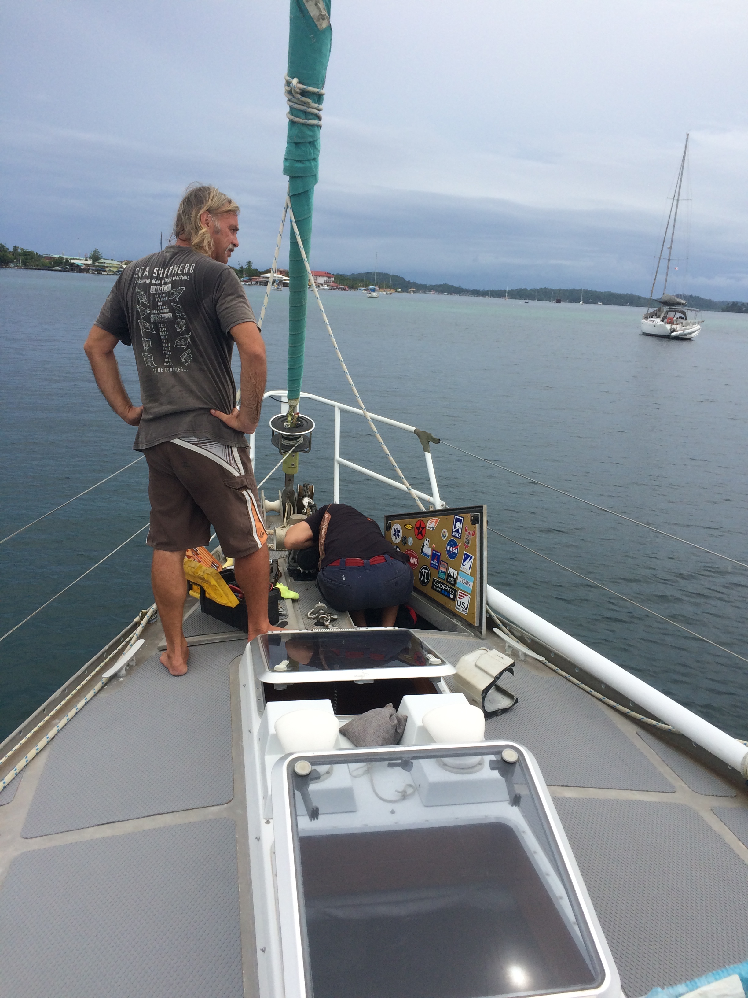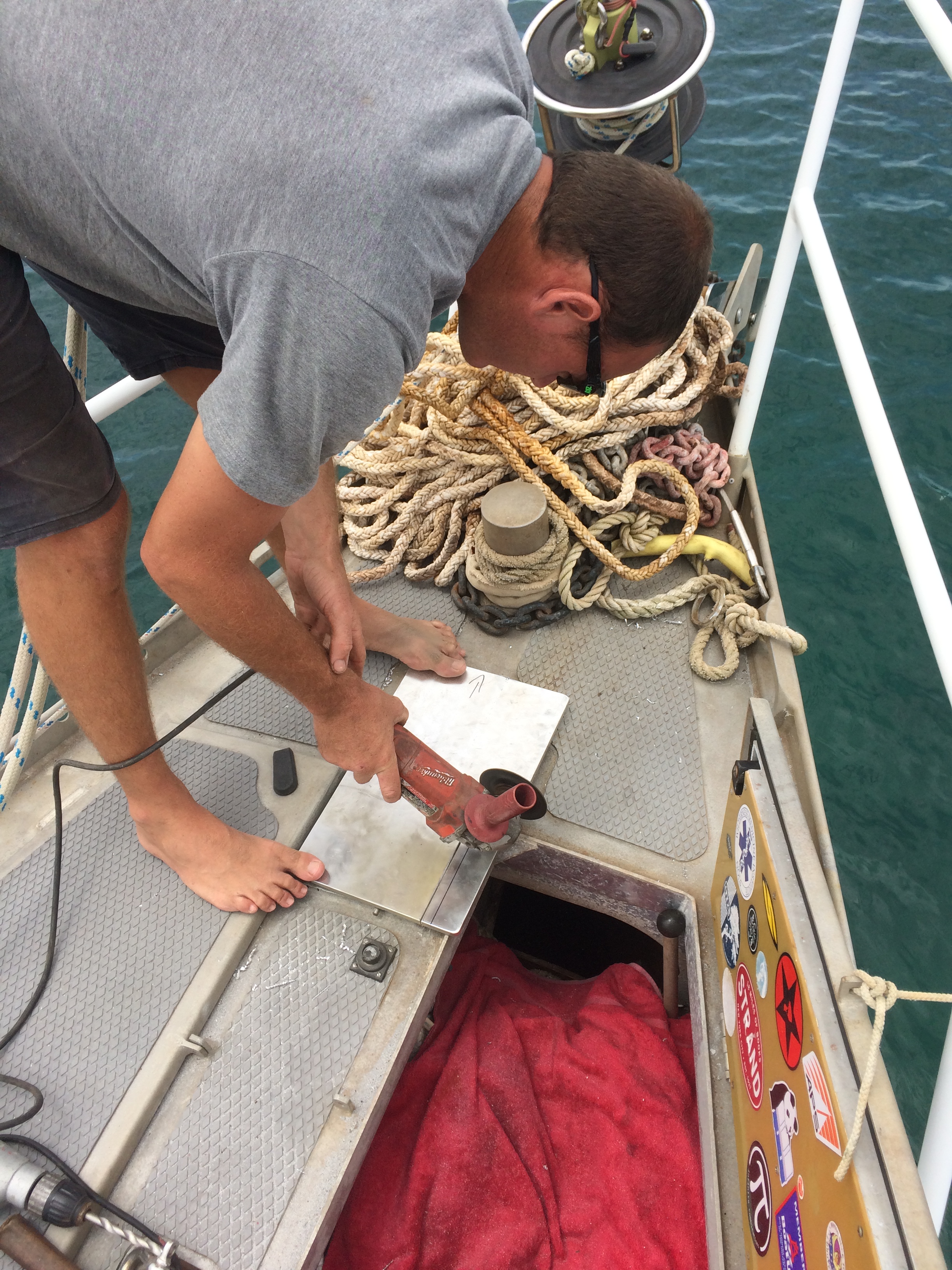 Day 2: Dave discovers he’s mistaken. He doesn’t have the aluminum plating after all. Not even enough to weld multiple pieces together. Delivery from Costa Rica could take six weeks (I was quickly regretting having pulled the other windlass). We went to town desperately, though ultimately unsuccessfully, seeking an alternative.