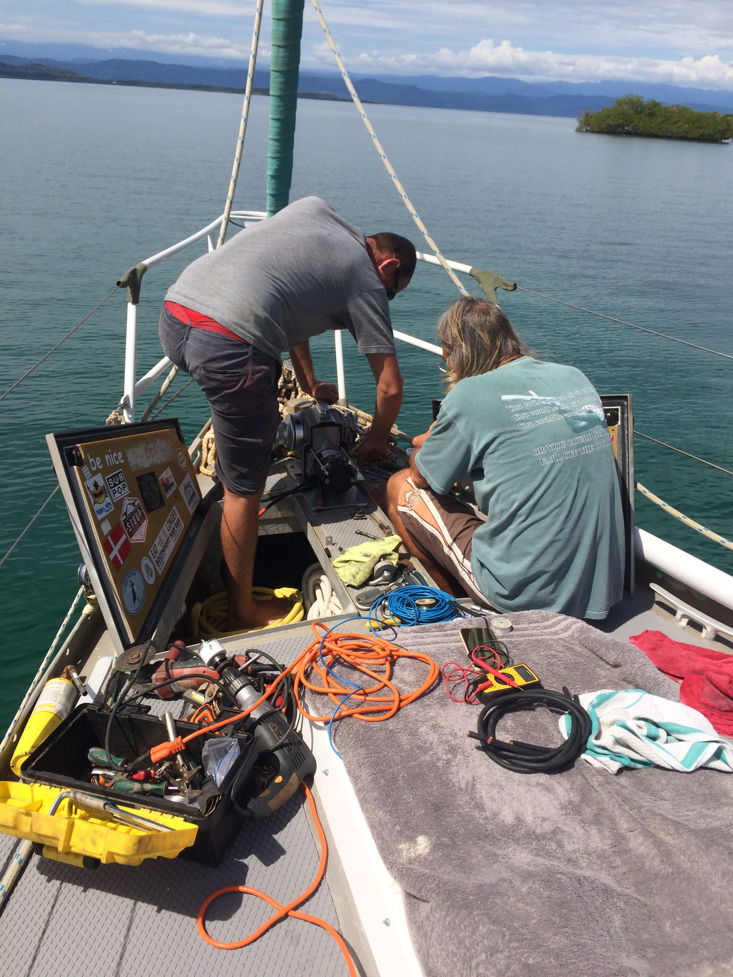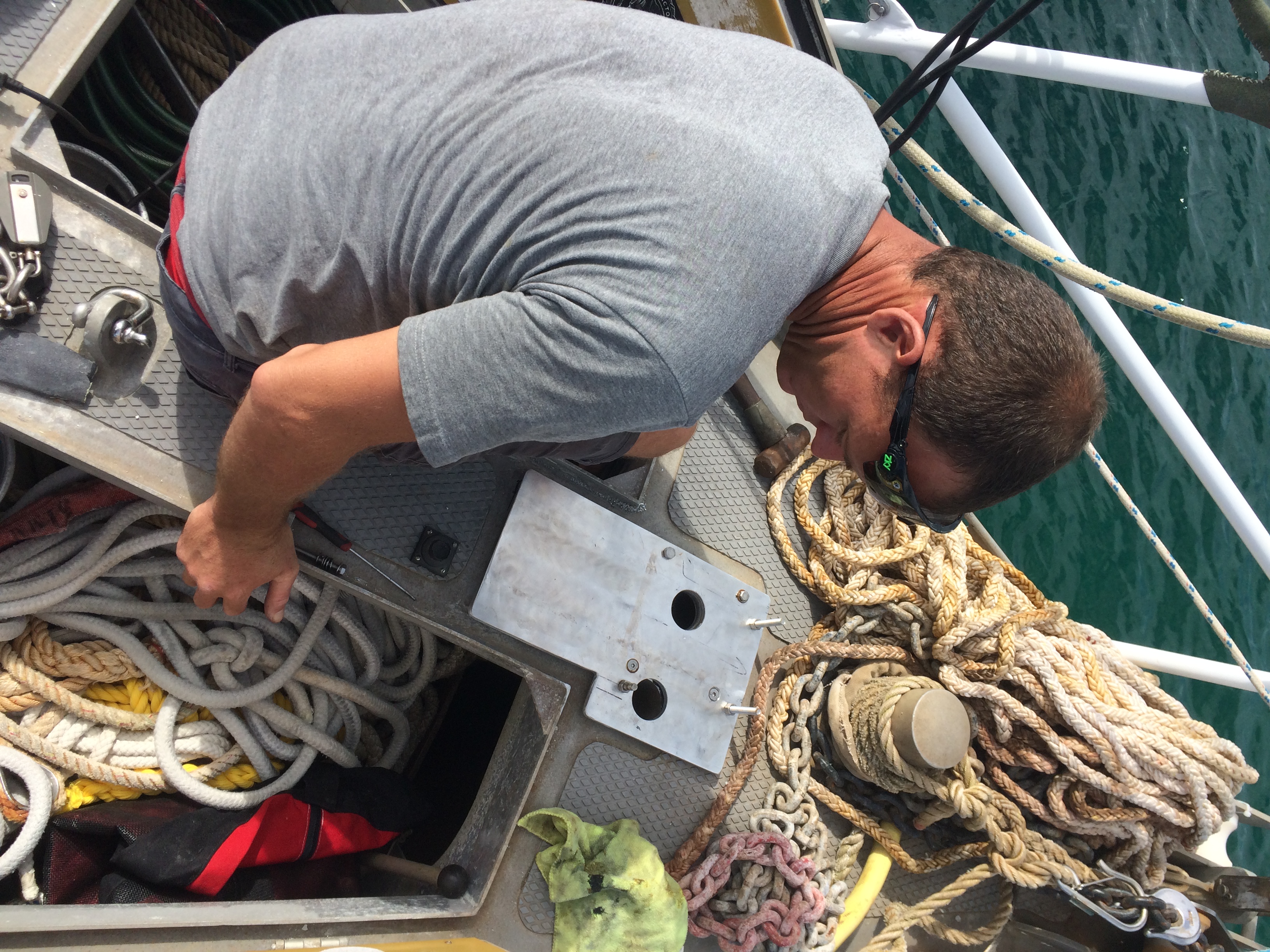 I still hadn’t fully wrapped my head around how this was all going to play out. We had to switch windlasses, which would NOT be as simple as unbolting the old one and bolting the new one into the existing holes… some kind of adaptor (presumably an aluminum plate) would need to be designed, fabricated, and fitted to the original deck plate… but the ground tackle we were currently sitting on would require the old windlass to be brought up… nearly a thousand pounds of gear had to get from Bocas Marina onto Exit… the new 3/8” chain and anchor would need to be deployed while the old 1/2” chain and anchor still had to come up…