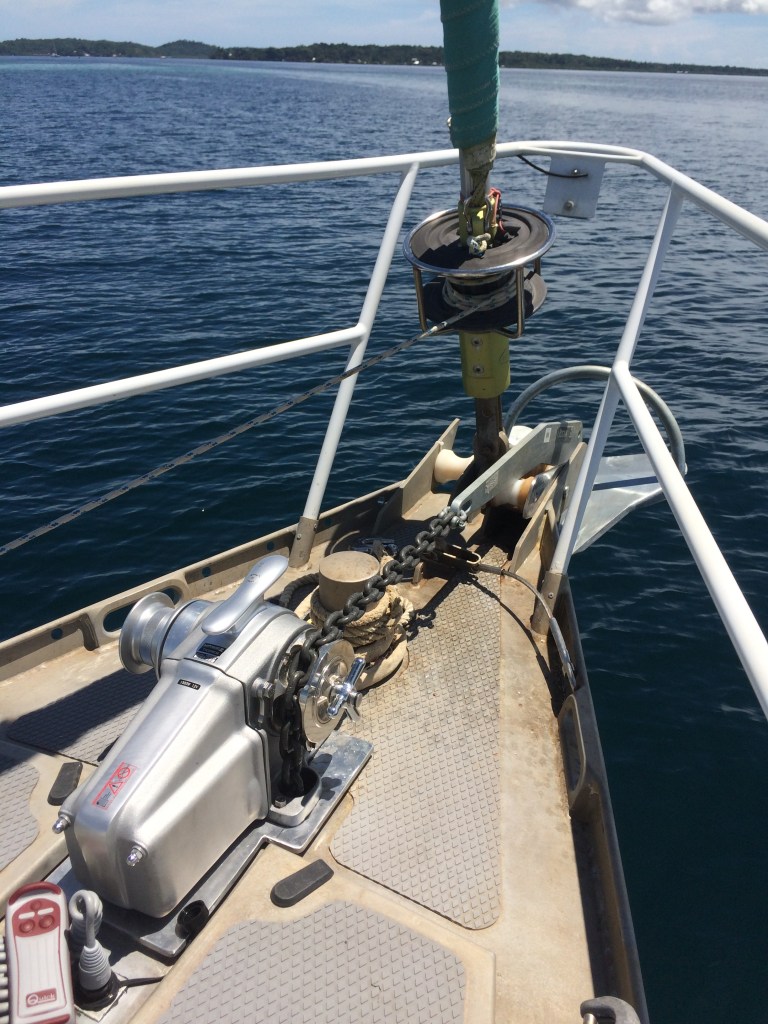 Finally, the up button on the controller was pressed – the windlass gypsy sprang to life in one direction. The down button yielded the same result in the opposite direction… Ooooooweee, did it run quietly!