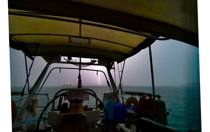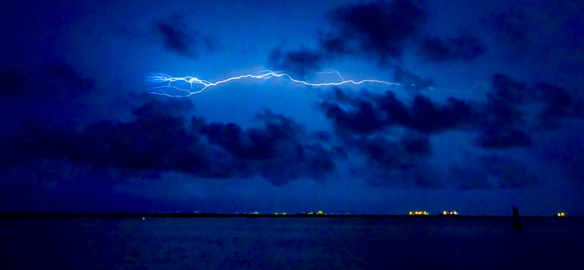 San Blas lightning is the stuff of legends. Intense. Loud. If you’re tucked next to trees or other boats, it’s scary. Exposed in the open, it can be TERRIFYING. Supposedly, Exit’s aluminum hull creates a natural faraday cage of protection inside the entire boat, but that would not the case on deck. Ultimately, we don’t want to directly test any electrical strike theories or hypotheses. Nearby lightning strikes may have fried electronic chips in our wind speed indicator (located at the top of the mast) as well as a chip in the autopilot at one point, but we can’t be sure. Fortunately, so far we seem to have dodged any direct hits (knock on aluminum).