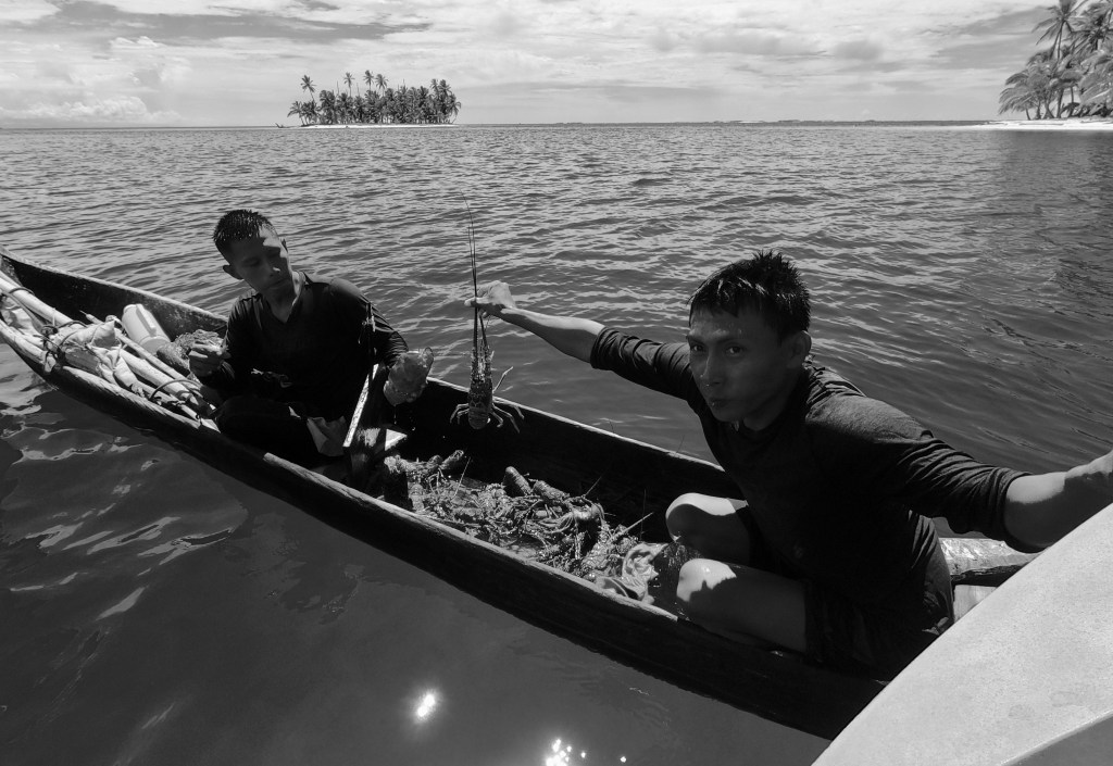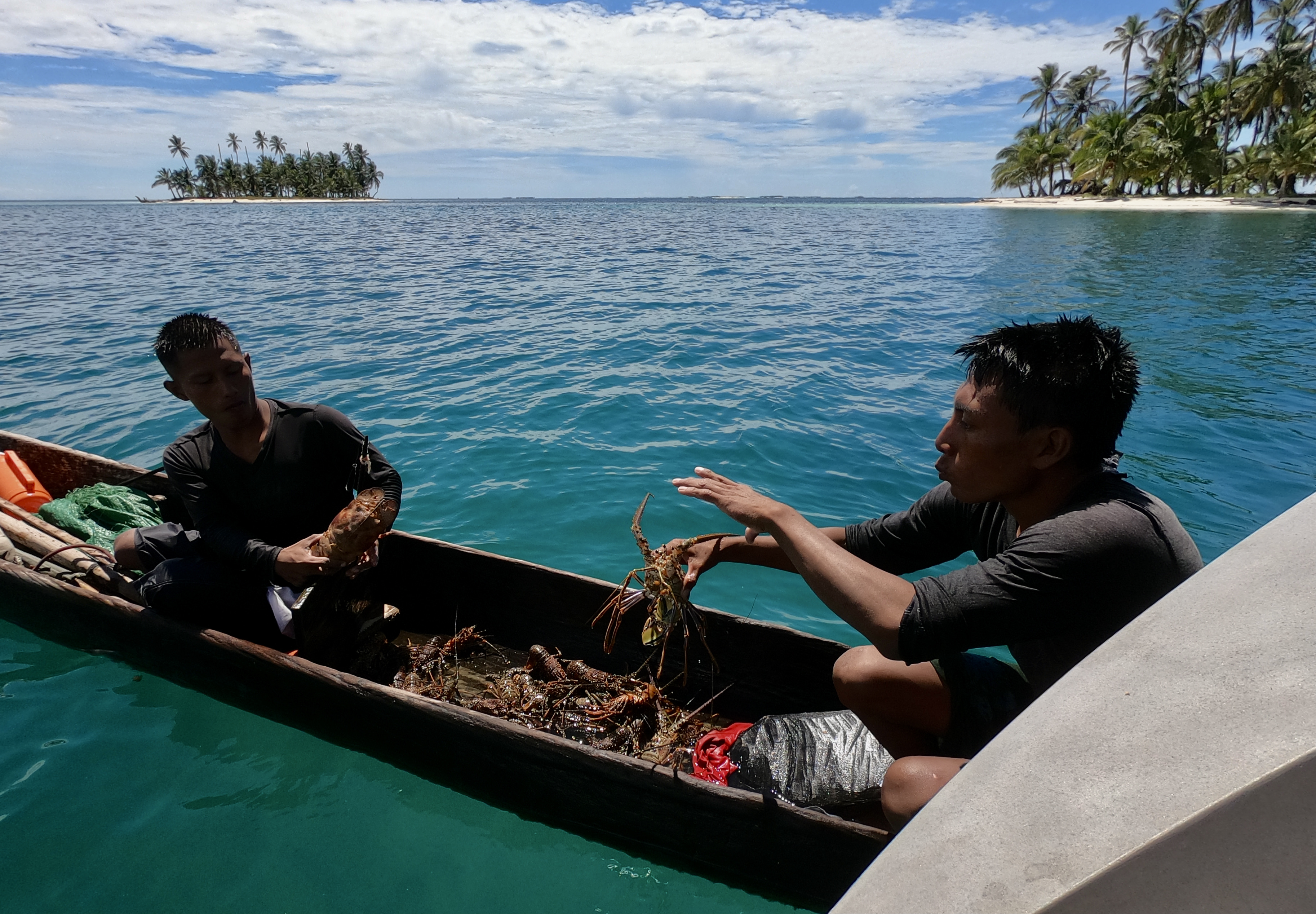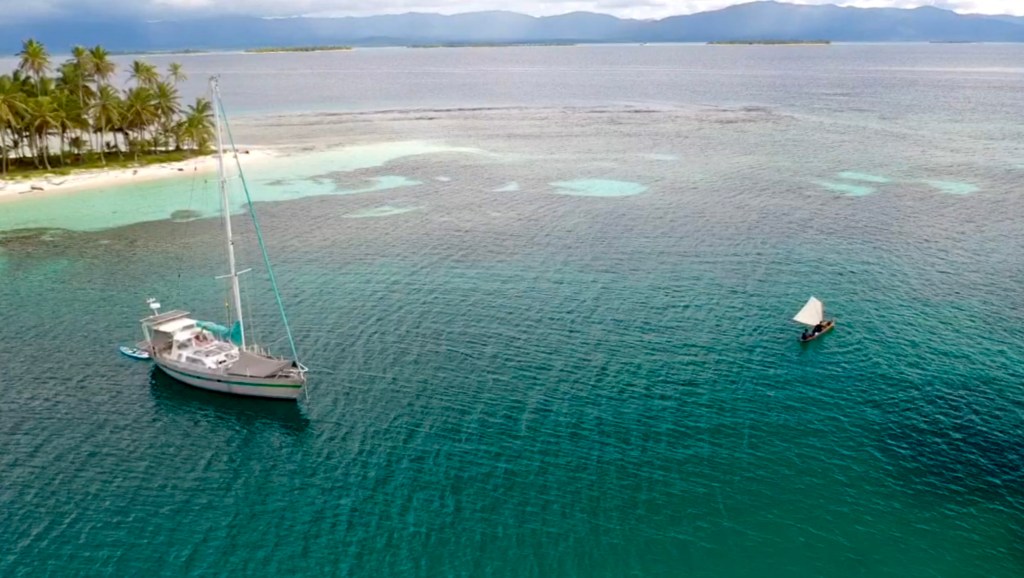 For a time, while we were anchored just off of the uninhabited island next to Orduptarboat, the same guy’s son would paddle up to Exit nearly every day and ask us to charge his phone while he was out fishing. On the first day, he brought a big reef crab in exchange… wow! That certainly had to qualify for one of my top three favorable transactions of all time. After that, the barter became fresh reef fish. Eventually, with a smile I told him not to bother; no payment was necessary. He sure still liked getting that phone charged though.