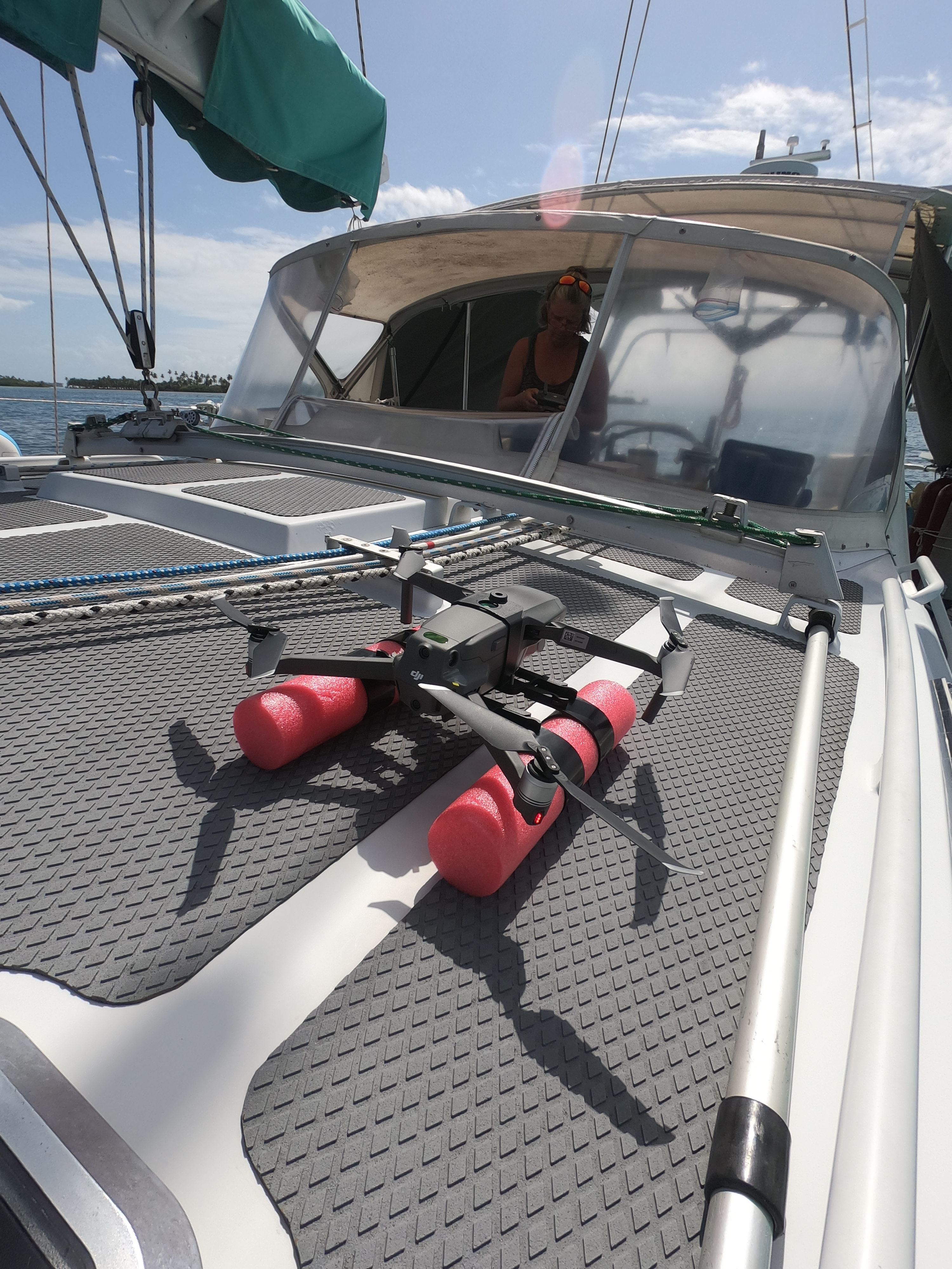However, it was launching and landing the drone from the deck of Exit while we swung at anchor in Los Bajos Lagoon that instantly raised the bar for excitement… as well as risk, I suppose. Good thing we are able to equip the drone with foam tubes that act as landing gear in the case of an accidental water landing… yikes!