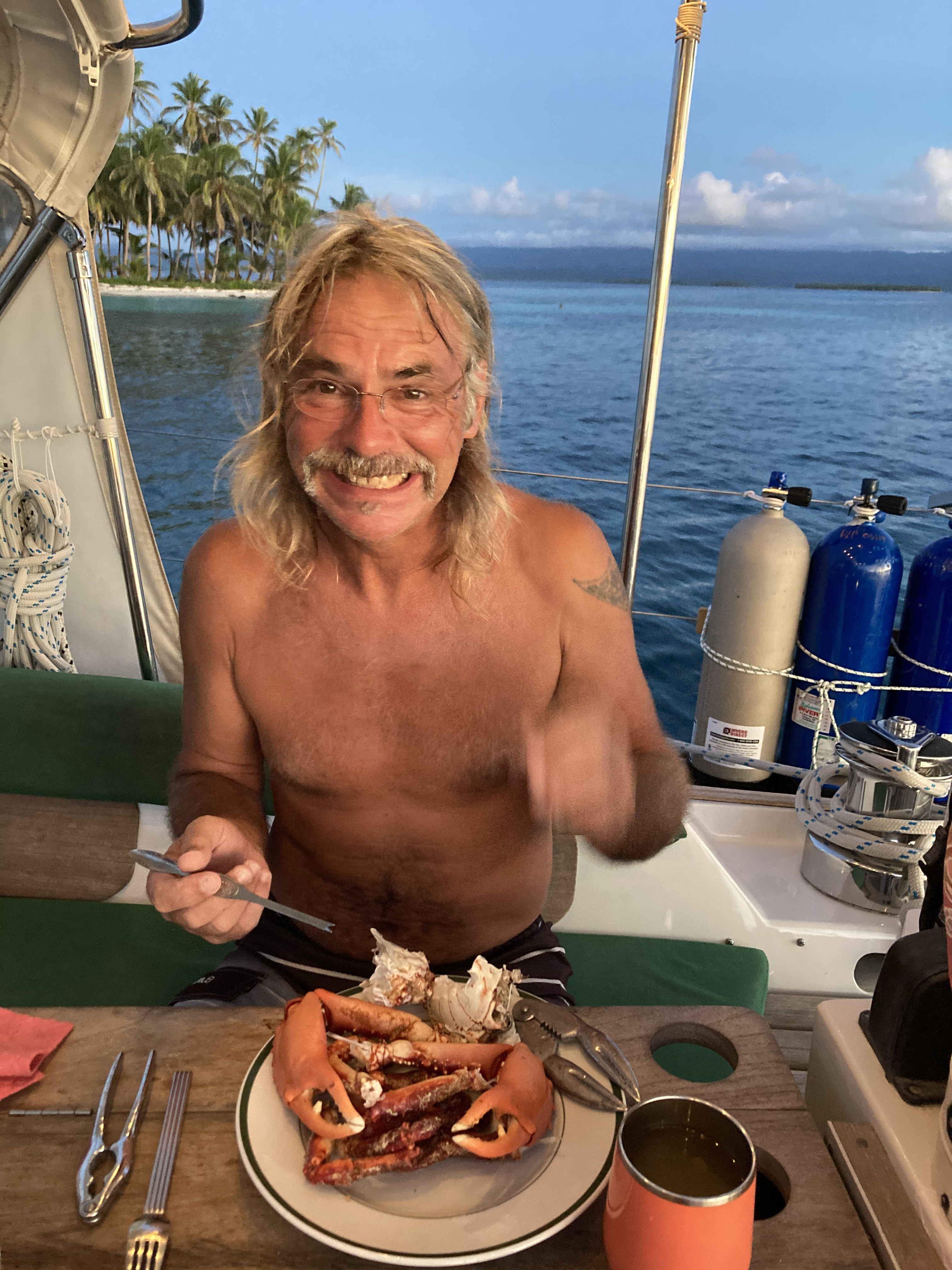 Local Kuna fishermen are always nearby with fresh fish, live lobster and crab. In spite of the ridiculous amount of work required to eat, crabs of the Caribbean go down in my book as number one on the menu!