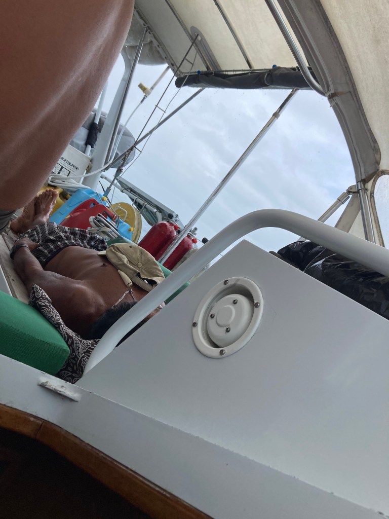 Apio (one of the rougher around the edges supply guys who stopped by Exit every now and then to see if we needed anything) once opted for a nap in our cockpit waiting out a squall…