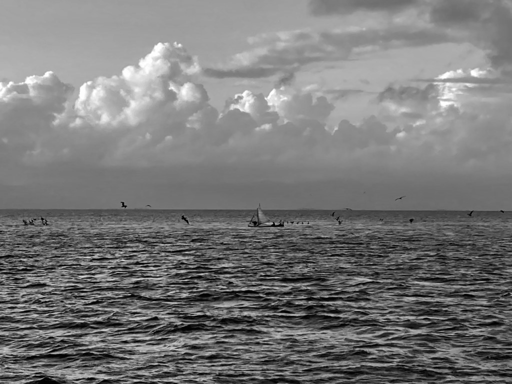 As we prepared to raise the sails, in the distance you could see a boat of local fishermen arguing with a squadron of pelicans over who had first rights of fish ownership.