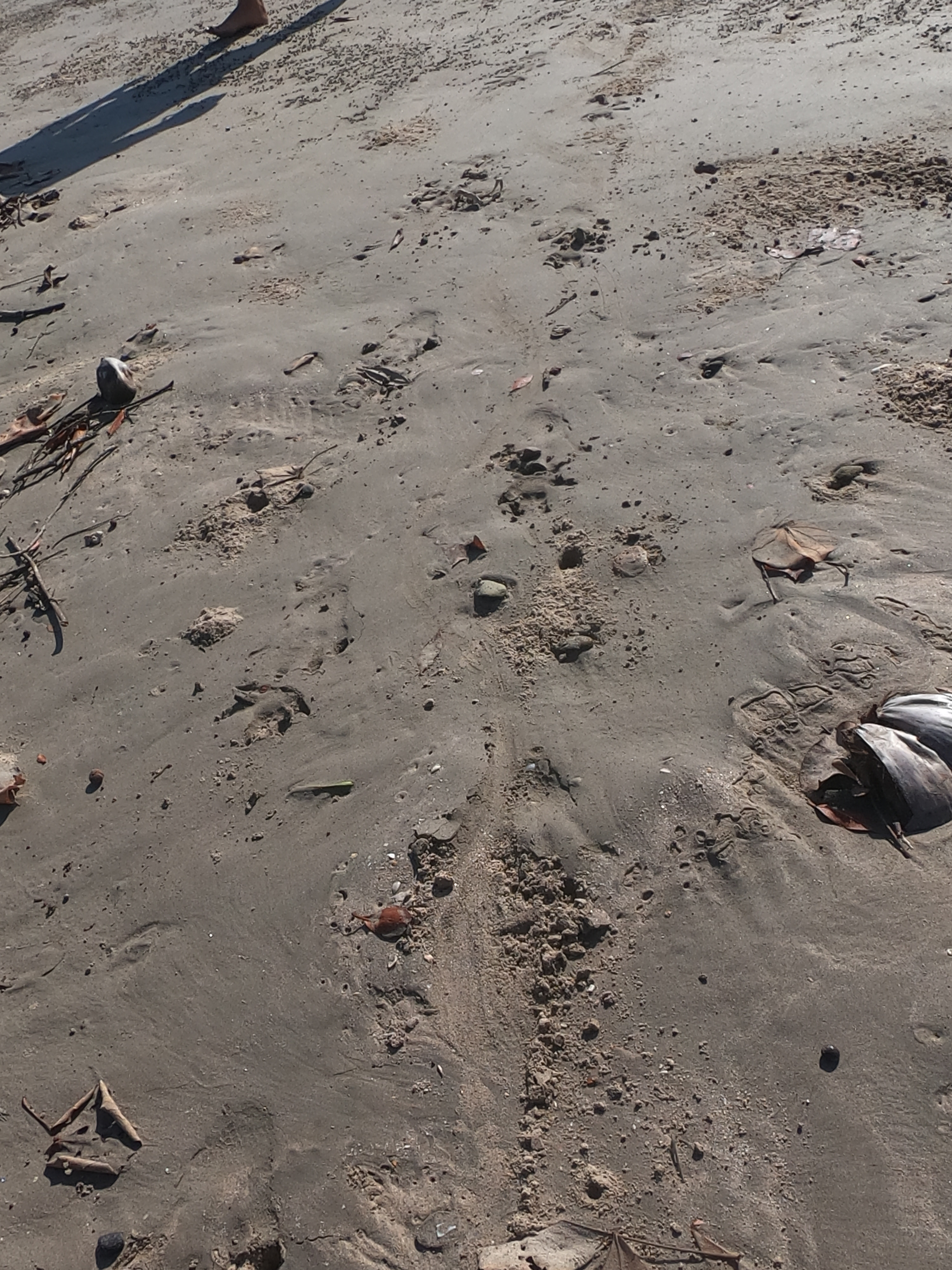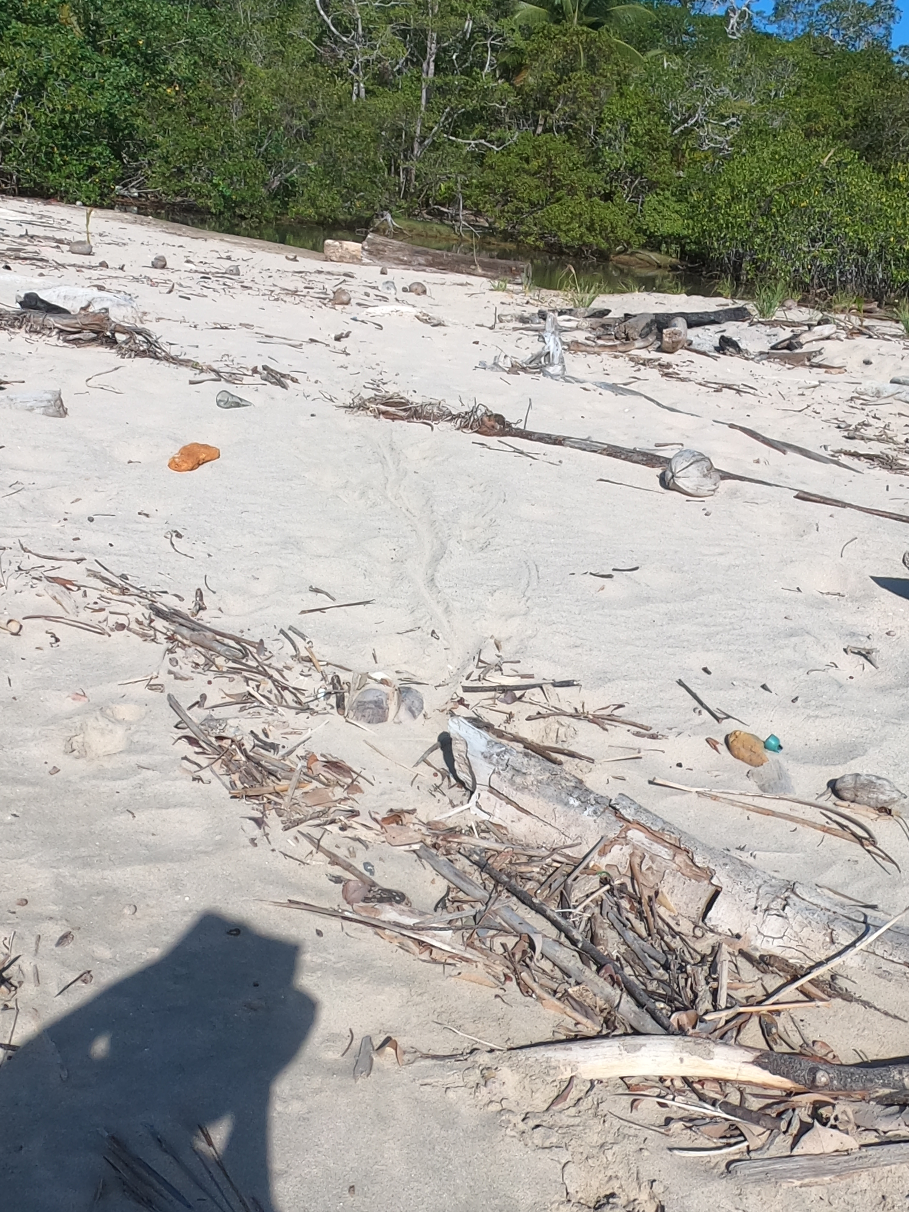 During one trip to the beach looking for Macaws, which we saw only a few brief glimpses of, we found evidence that we were on the front doorstep of a crocodile’s abode. The tracks left in the sand by its feet and tail were a dead giveaway. Given the fact that this was just entering the beginning of their nesting season, we opted to not go wandering around the shoreline, barefoot and all. Probably smart.