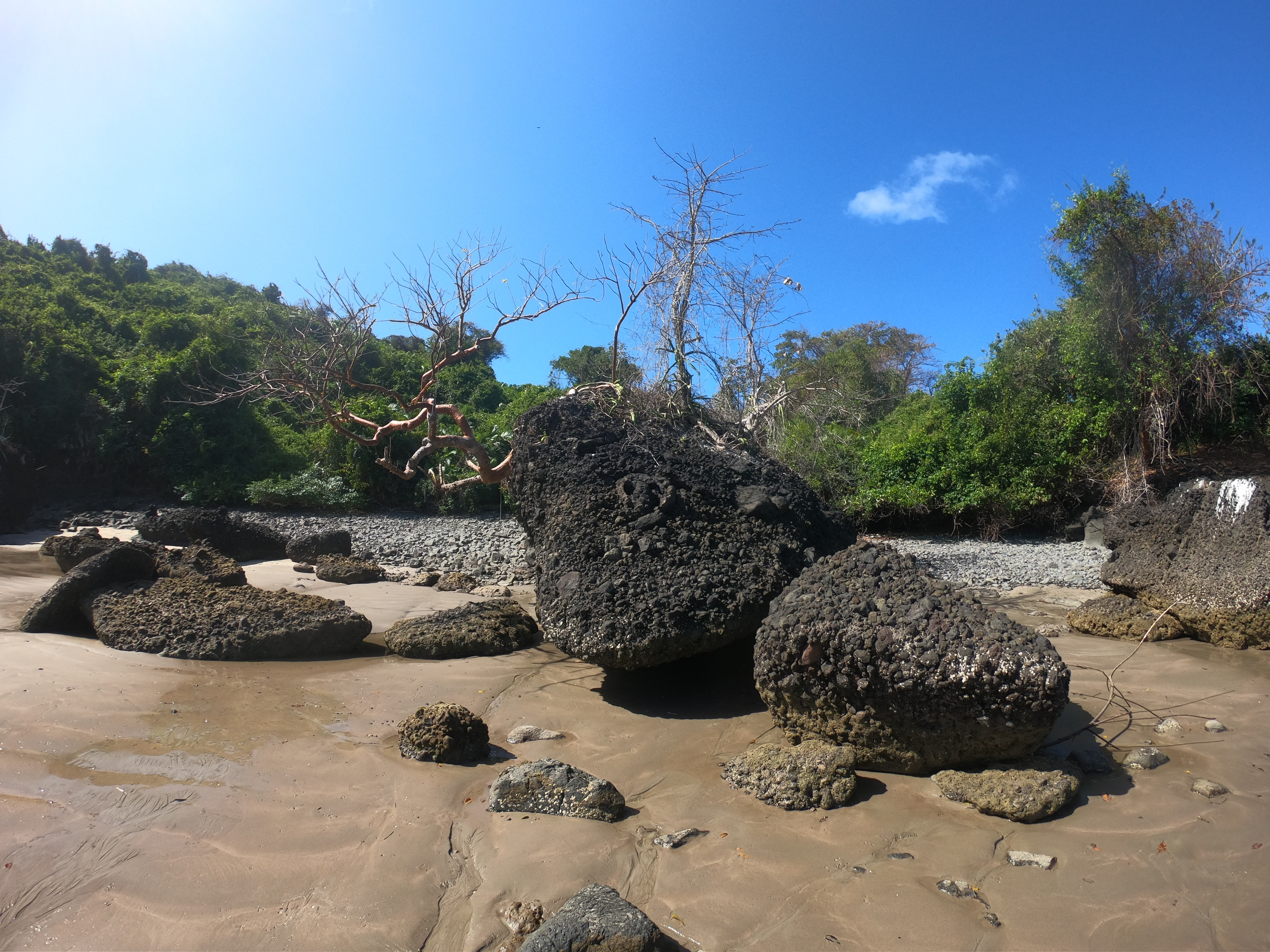 This left a small one or two hour window during which the tide was high enough for the dinghy to not run aground and the surf was controlled enough to not be outright dangerous, where we could explore the river as it wound back and forth, continually growing narrower until we could barely even turn the dingy around. Long before we had the opportunity to really check out many of the areas as the river branches or proceed too far inland, we had to remind ourselves to turn around and head back in time to get back outside the sand bar before all hell broke loose again.
