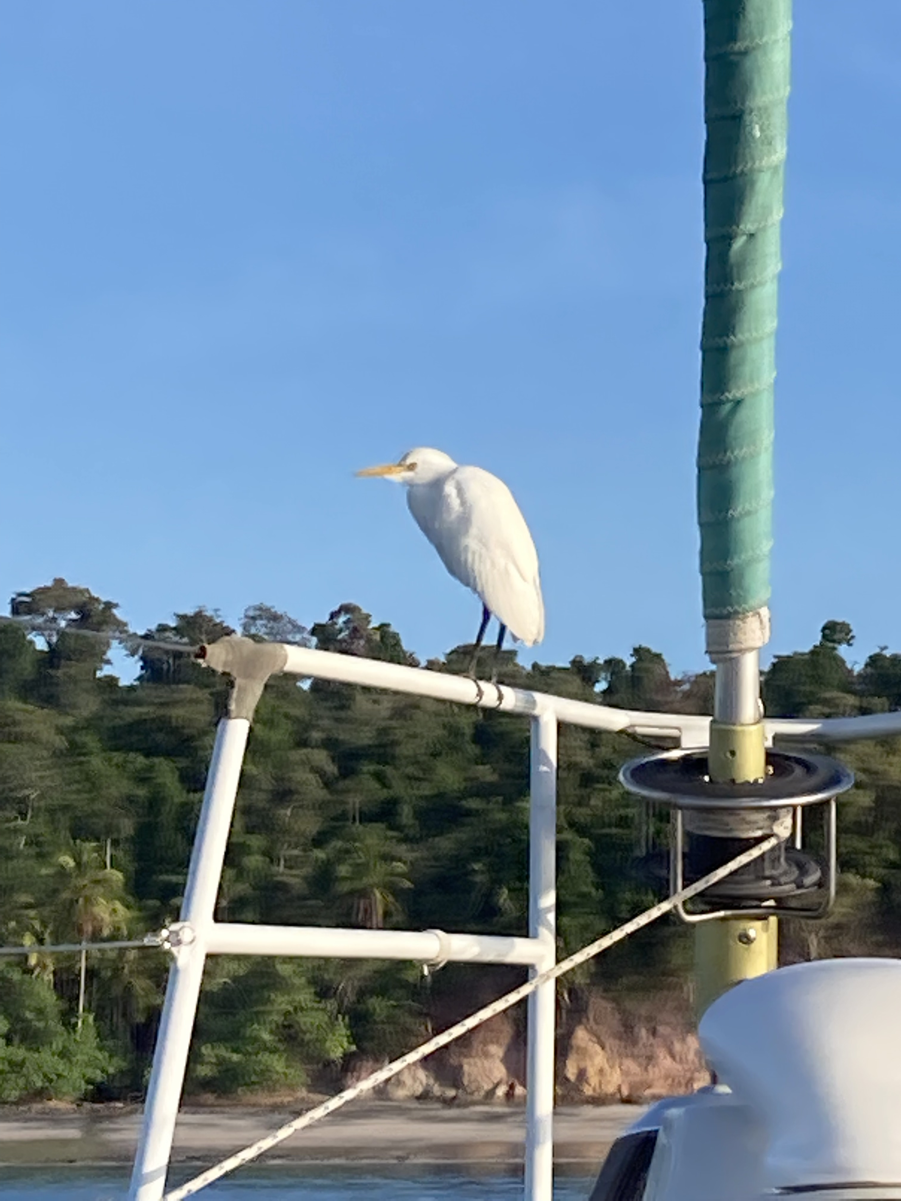Less than ten minutes later, we heard the rattling of chain and watched as the cat picked up anchor. They slowed as they passed right up next to us. According to the guy at the helm, the guy I had seen on the SUP, they had spoken with the person we had heard earlier on the radio with the Securite announcement. He said it was the boat in the previous anchorage we had seen putting out laundry.