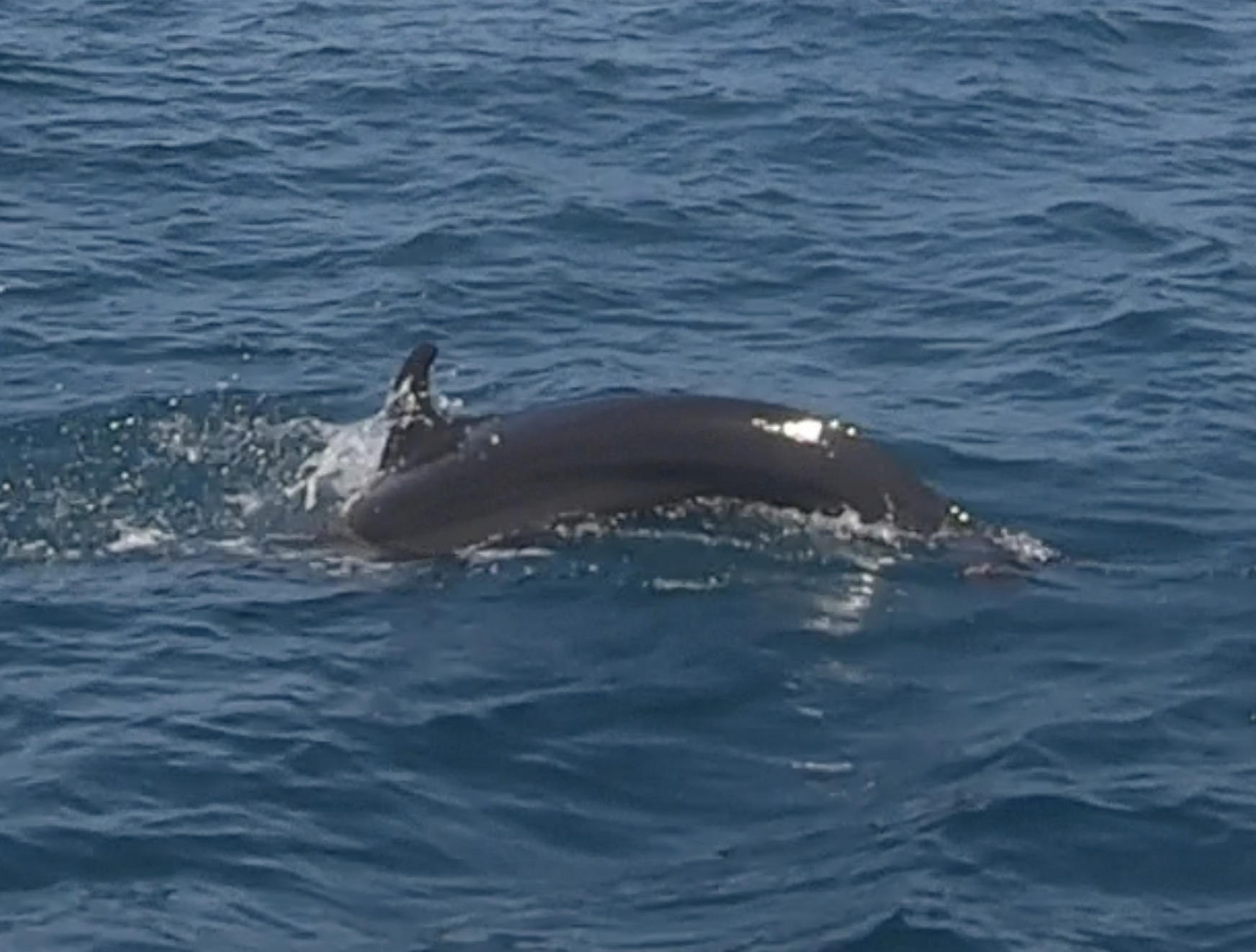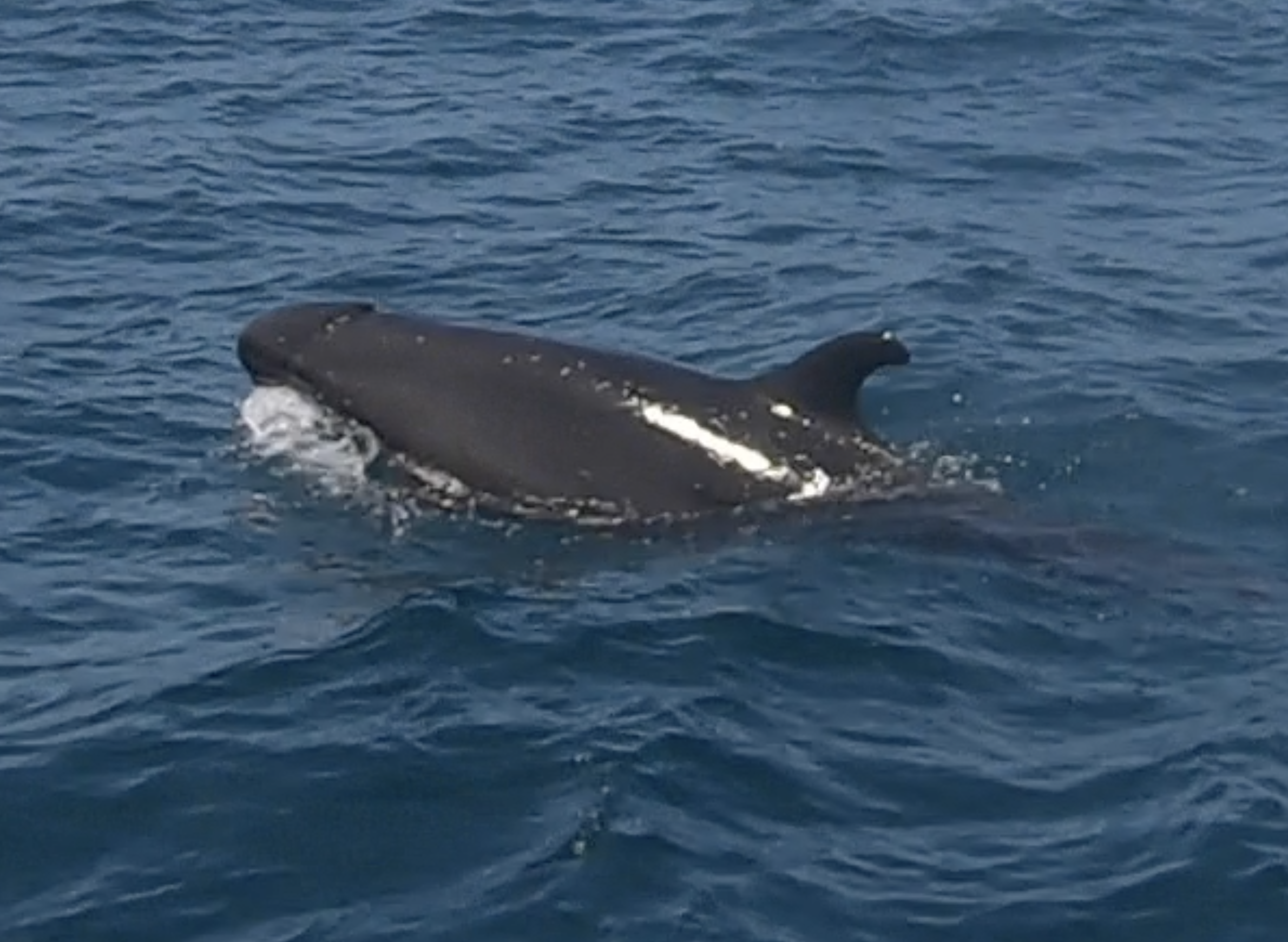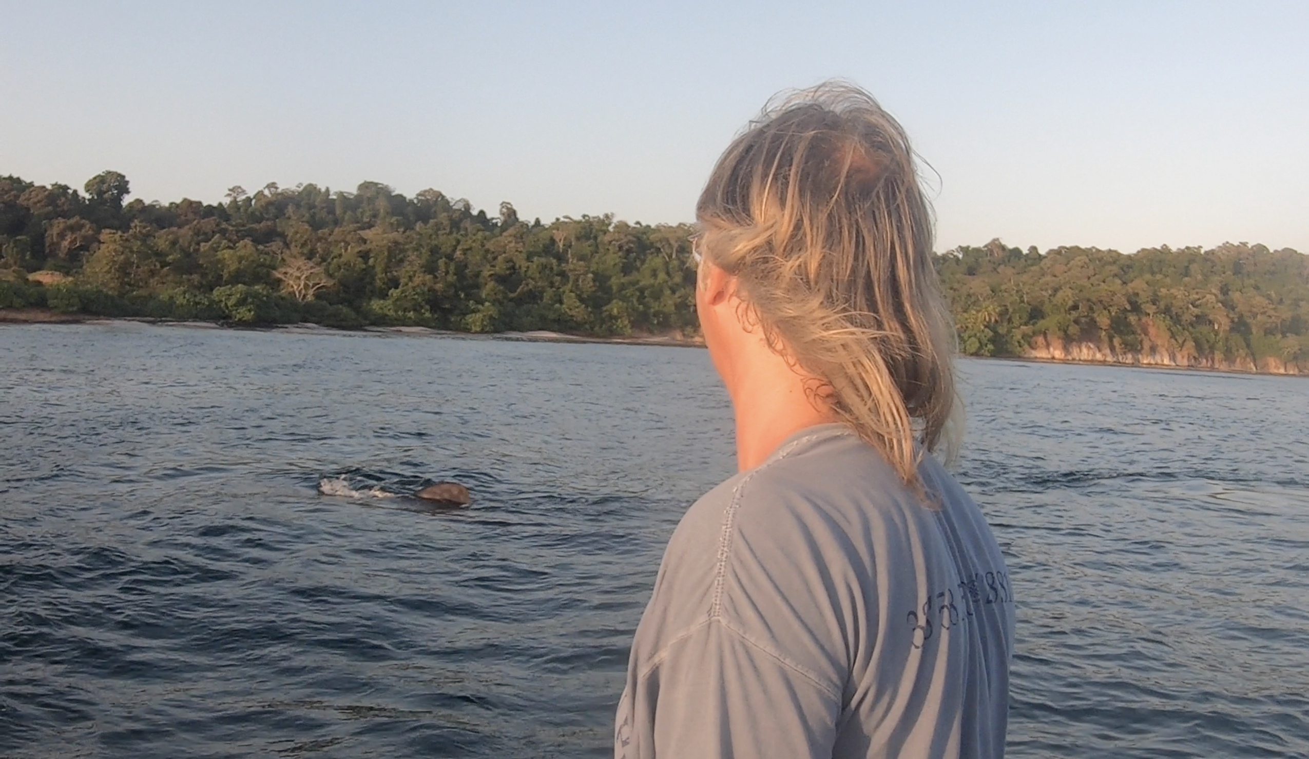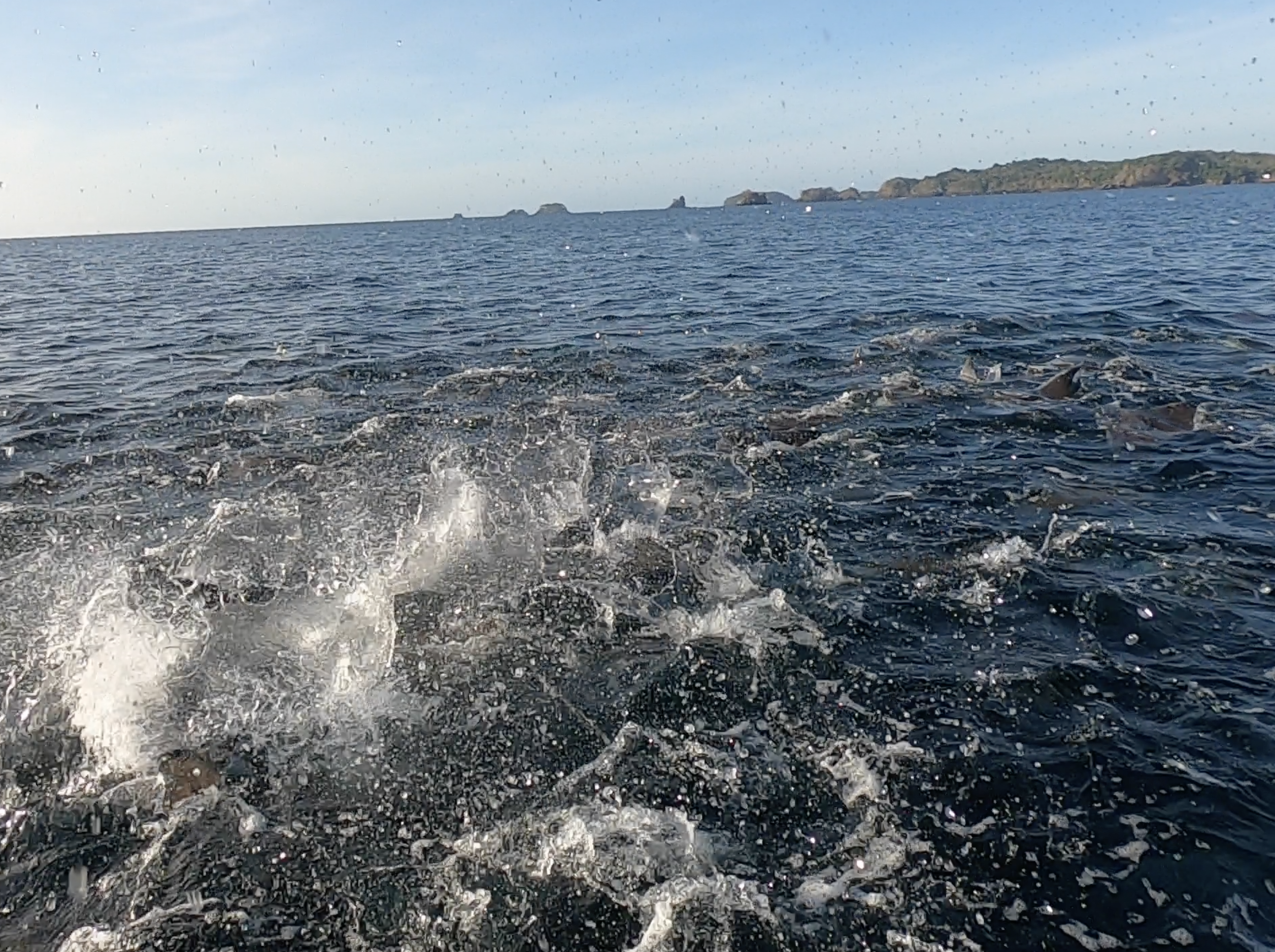 Between Isla Contadora and Isla San Jose, it appeared our mojo was still working. We were approached by a family of what we initially thought were pilot whales. There were more than a half dozen, both adults and calves. Over the course of nearly half an hour, we watched with fascination. Initially, they seemed very curious. A couple of the adults came right up to Exit and gave us a rather intimate inspection. Eventually, they continued about their business, allowing us the gift of a slightly more distant though still extraordinary encounter. Later, a bit of research lead us to the conclusion that we had not been visited by pilot whales, but rather either false killer whales or melon headed whales – a detail which surprised us but made the whole experience no less stunning.