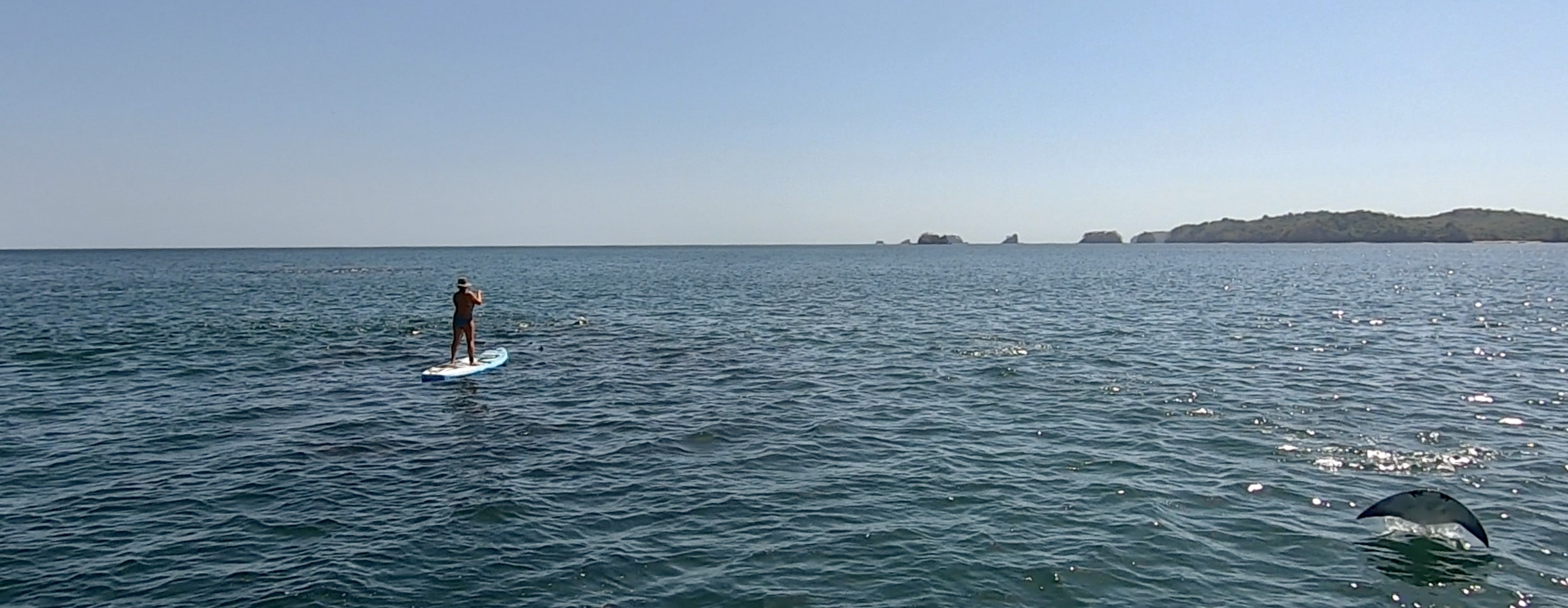 Three people from the cat had headed to the nearby beach right after setting anchor, one on a SUP and two swimmers. Now the guy on the SUP was paddling straight past the three teens in the panga, making fast for his cat. The teens appeared to be speaking with the other two, who eventually swam back to the cat as well. Then in an odd display, the teenagers buzzed a couple of circles around the cat and sped off.