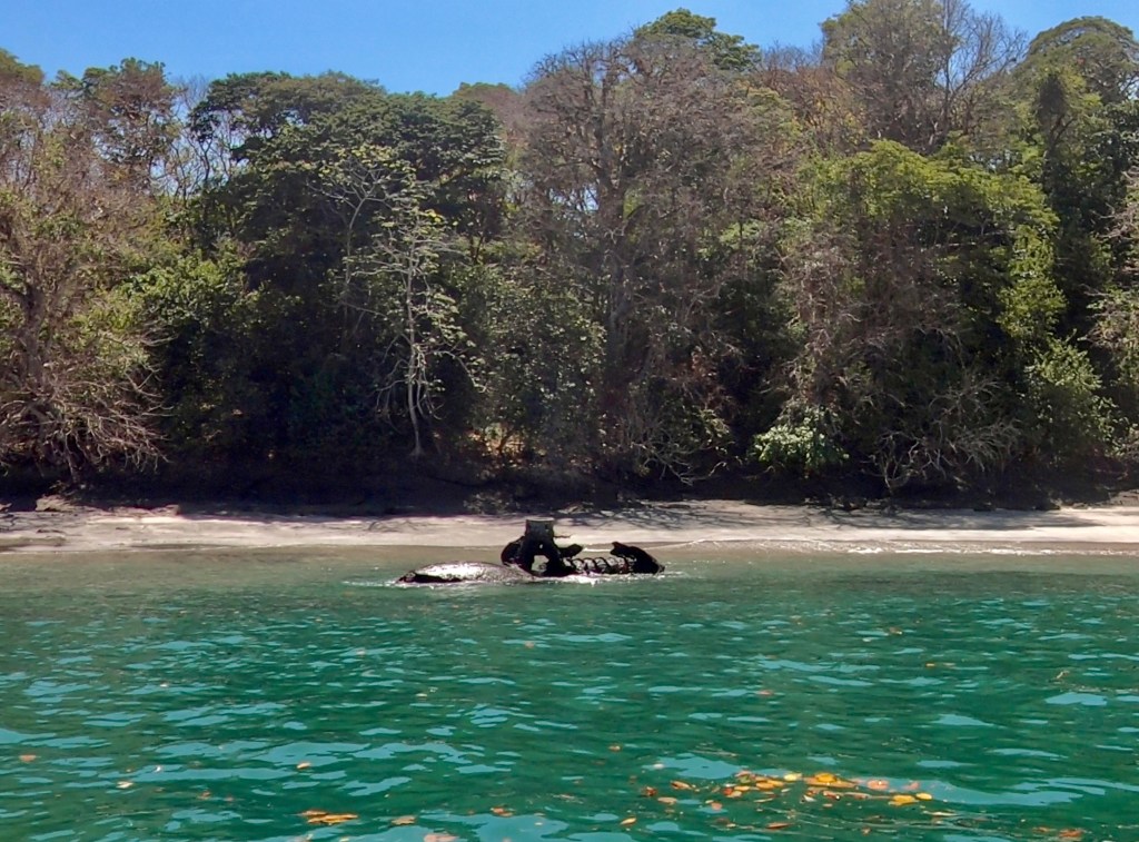 We had read that coming around the southeast side of Isla el Rey, on tiny Isla San Telmo, one could find the wreck of a small submarine, which would reveal itself along the shoreline as the tide dropped. The sub, apparently one of the earliest technologies of its kind which had been used for pearling, had mysteriously shown up over a hundred years ago. We were able to locate it, and it actually was larger and more intact than I expected. Cool, and worth a stop; but we moved on shortly afterward.