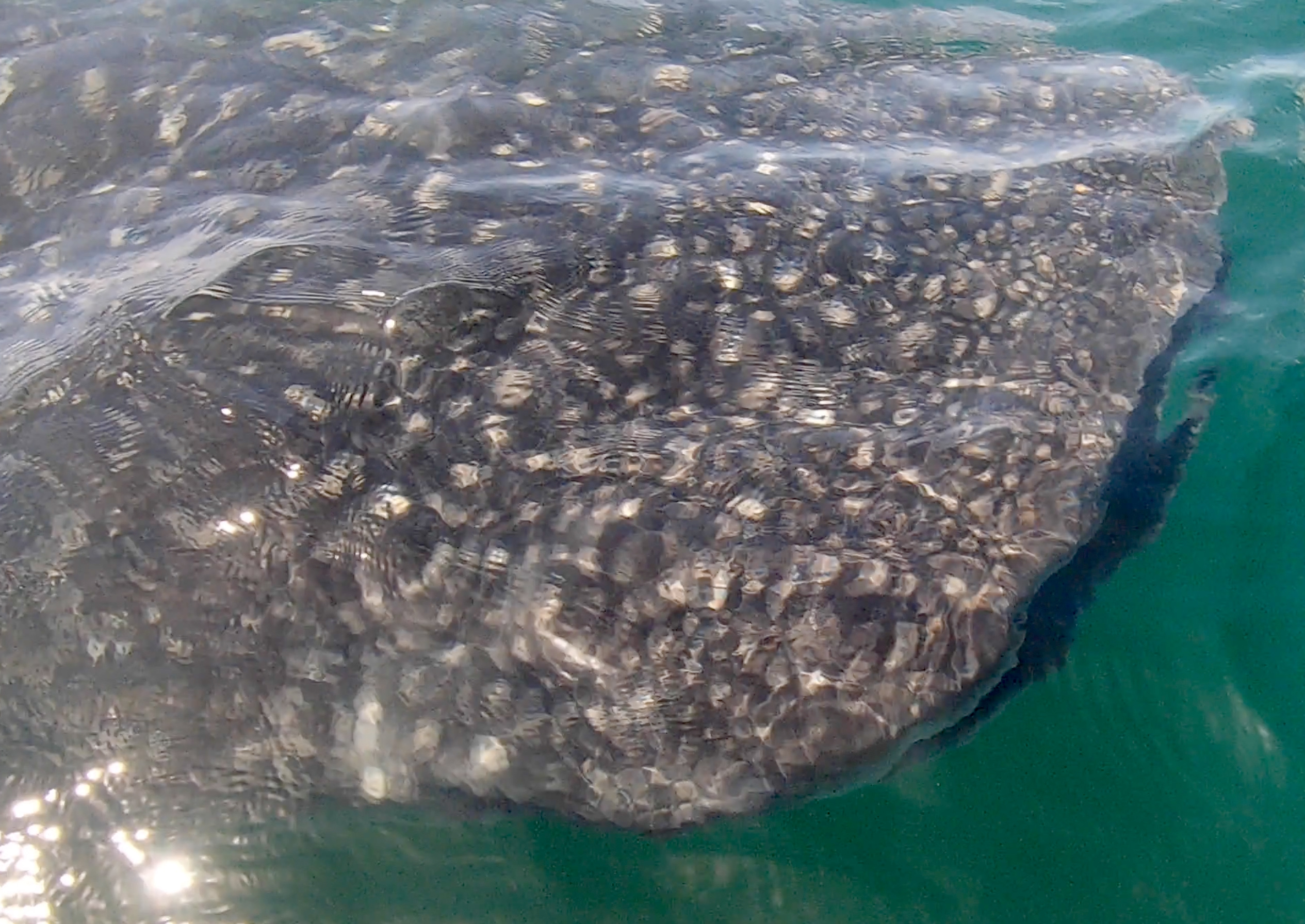 And a big one at that. Though over thirty feet long is possible, ten to twenty feet is more typical when you hear of whale shark encounters with people. This one was over twenty. Right about half as long as our boat. Wow!