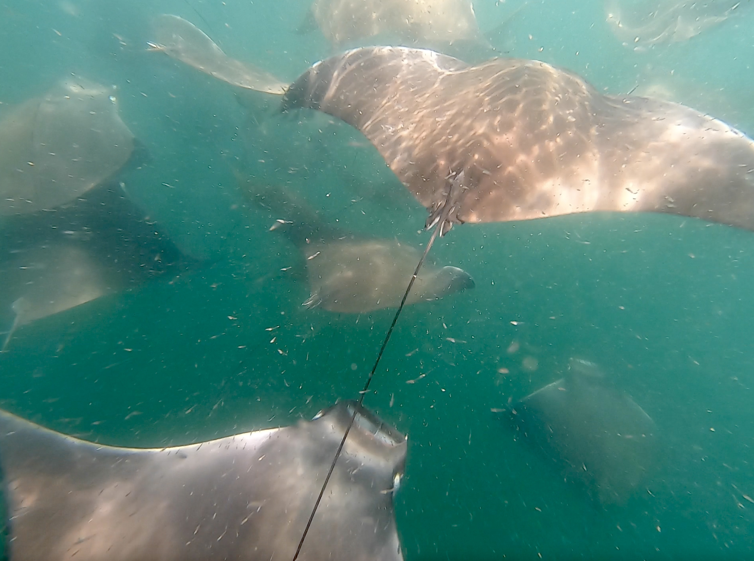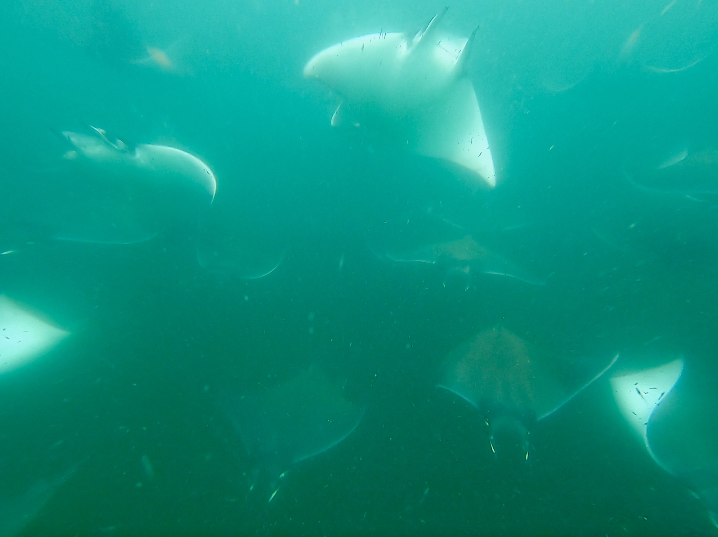 What those crazy rays were doing is anybody’s guess. Communicating with each other? Cleaning themselves of parasites? Just having a blast? Who knows…but it sure was an endless source of both smiles and laughter for us.