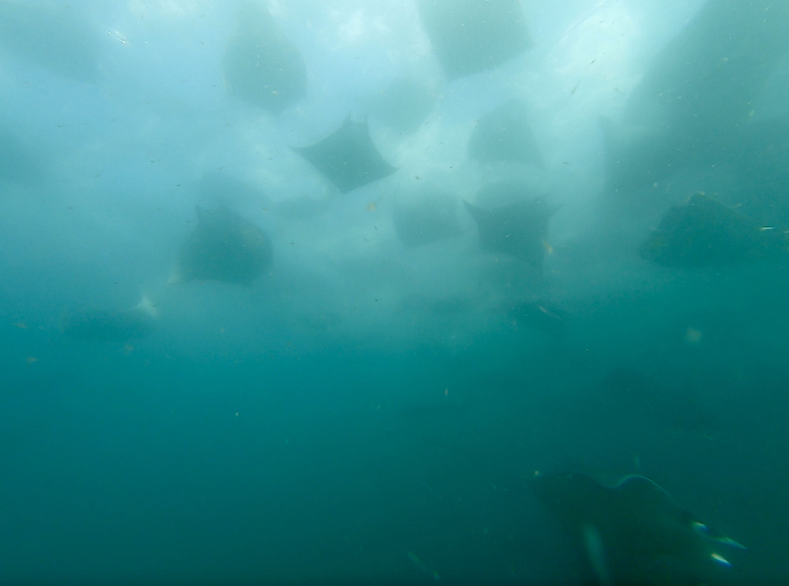 So now what? It’s still morning. Fuck ya, let’s take the dinghy out. And so we did. Before we knew it, we were amongst the group of rays we had just flown the drone over. The whale shark was still there as well, and proceeded to swim right alongside the dinghy. Eventually it disappeared into deeper water, but the rays just kept circling about. We seized the moment and jumped into the water, snorkeling in a surreal and unforgettable devil ray soup.