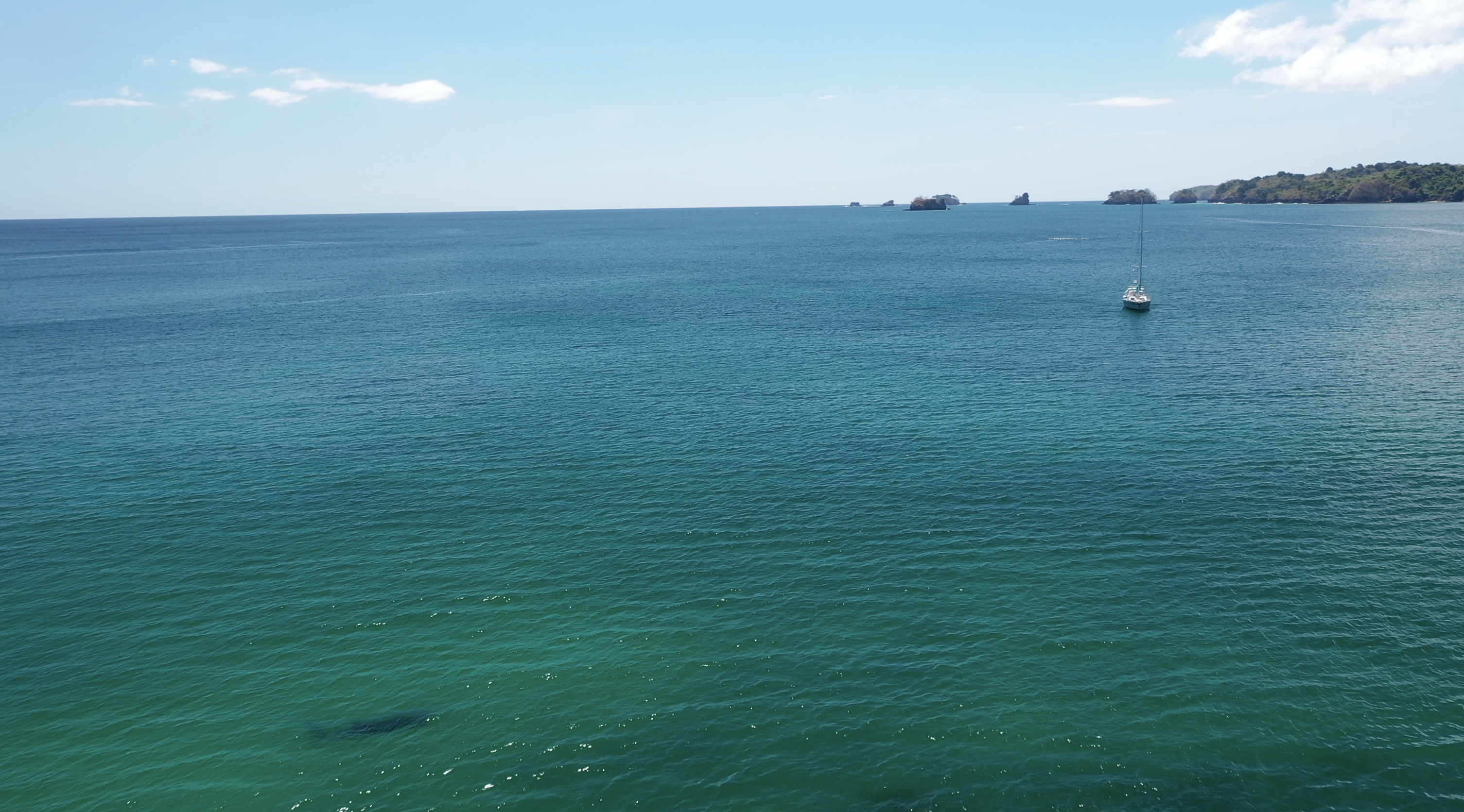 Now we were coming around Punta Cruz, the point jutting a mile out from Isla San Jose, southwestern most island of Las Perlas. That made it less than two miles from Ensenada Playa Grande (Big Beach Cove) where we planned to anchor. Less than half a mile from the shore in one hundred feet of water, just as we started to make a gentle turn towards the bay, we saw something dark cutting through the surface, not more than a couple hundred feet forward and starboard.