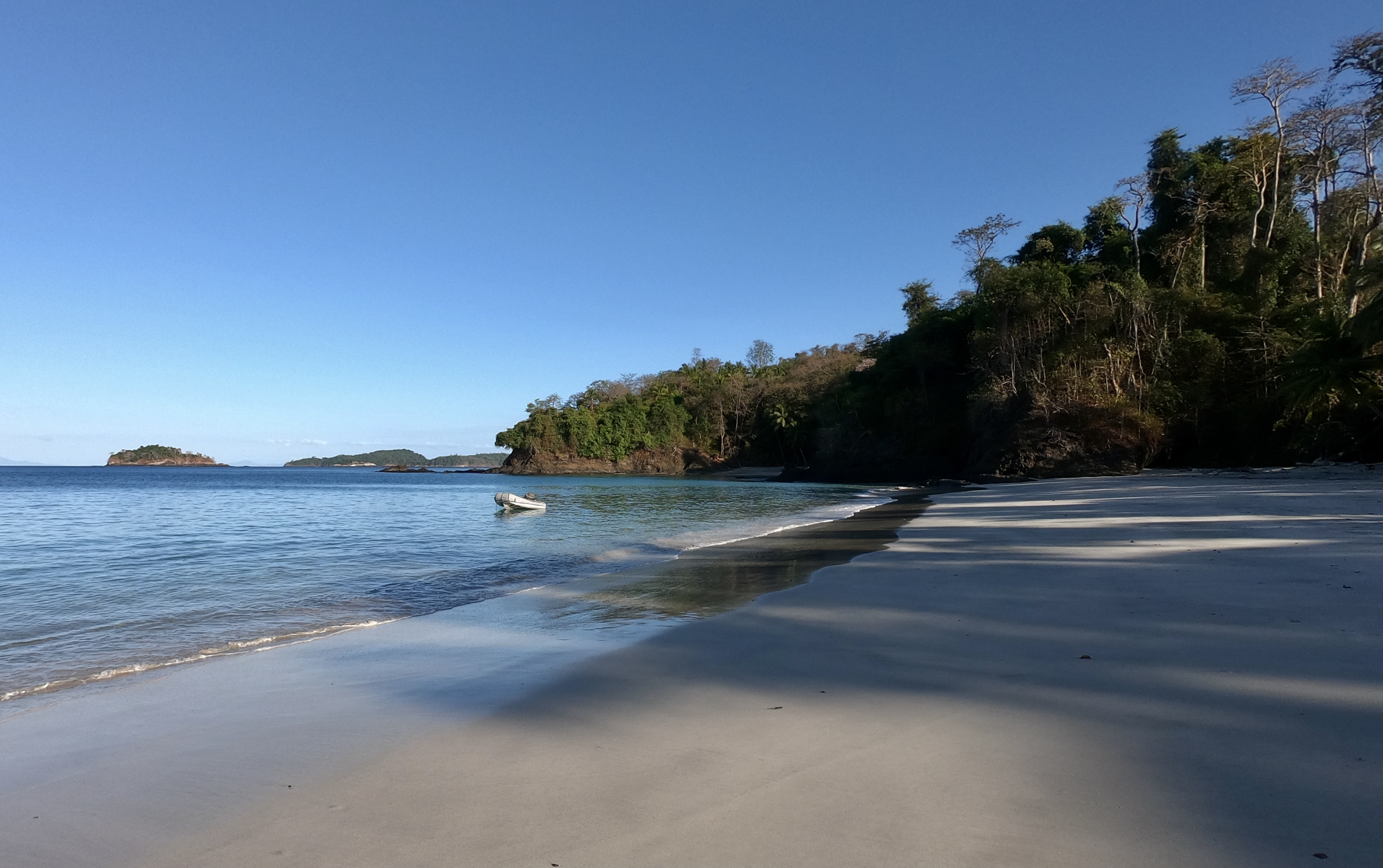 As we approached the southern tip of Burica Peninsula, looking through binoculars the beach we were seeing was Panama. However, just behind the line of trees was Costa Rica!