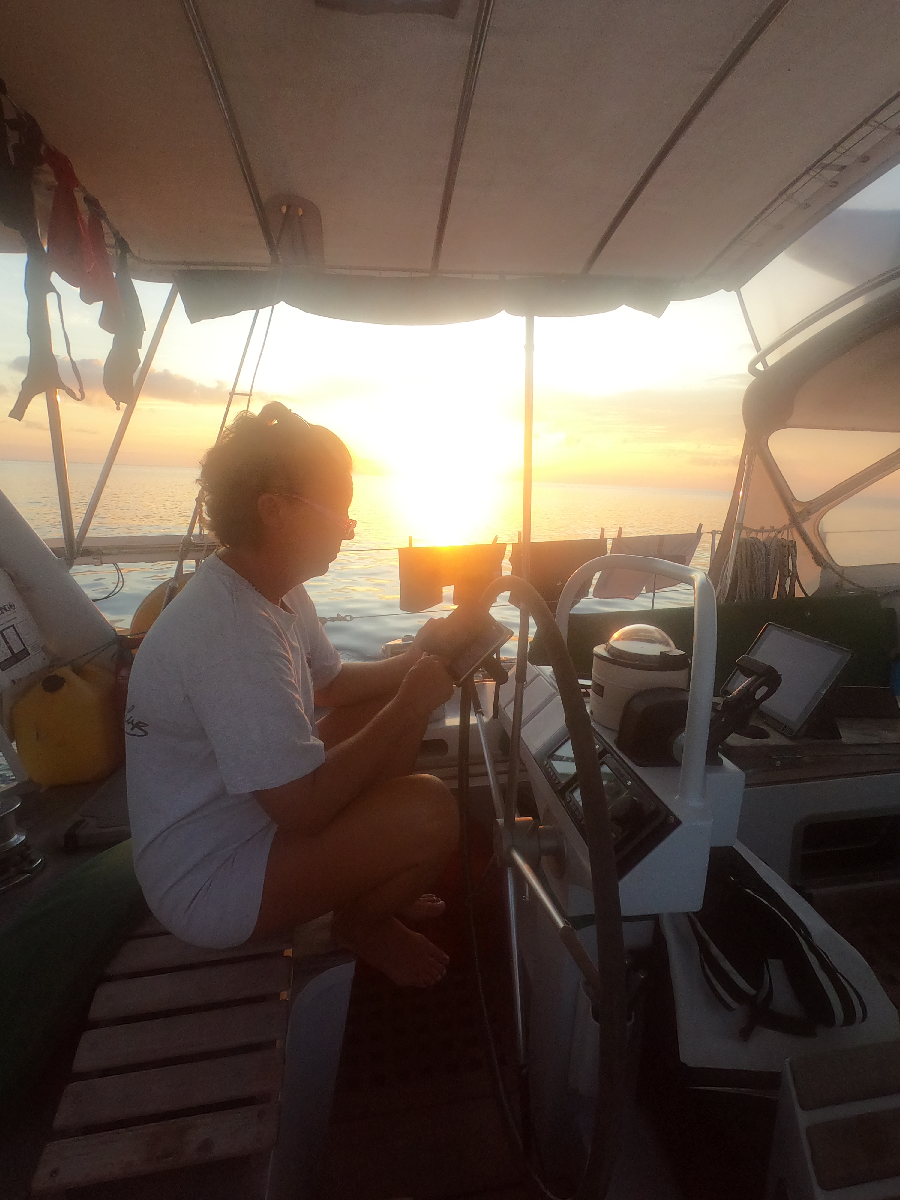 A lack of wind meant we had been forced to motor sail part of the way. The upside of that was, with our alternator fully functional, not only were we able to charge our battery bank but also make water without having to worry about the power draw.