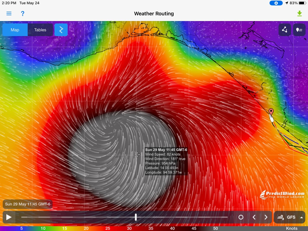 The following morning we found the weather forecasts still quite ambiguous. The system still hadn’t been officially upgraded to a named hurricane yet, but it seemed inevitable now. The bigger question for us was where it was going. All indications were that it would overtake our position and continue north within two hundred miles or so of the coast all the way into Mexico.