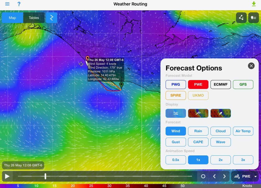 The give and take was that as May turned to June, the Papagayo and Tuantapec winds would begin to die down; however, the hurricanes would begin to pick up. Not really reassuring. We were fearful that may be exactly what was unfolding before us.