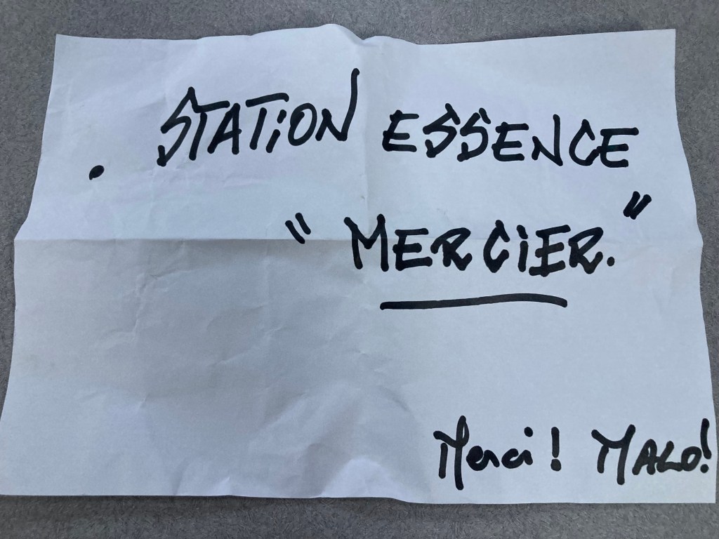 Confused, we turned around and started backtracking, this time paying much closer attention to GoogleMaps. When we arrived at the supposed location, we looked around quite perplexed and were quickly dismayed to see off the road, tucked away behind a fence, a small yard that contained dozens and dozens of stacked portable propane tanks. We had obviously misunderstood the nature of the business identified as a “gas depot”. Cooking gas…not engine fuel.