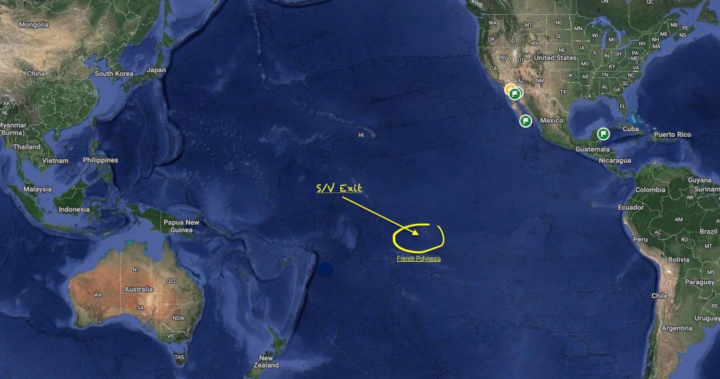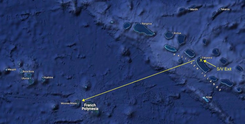 Of the 121 islands and atolls that make up French Polynesia as a whole, only about seventy five are inhabited; and, of those even fewer have anchorages accessible or safe enough for Exit.