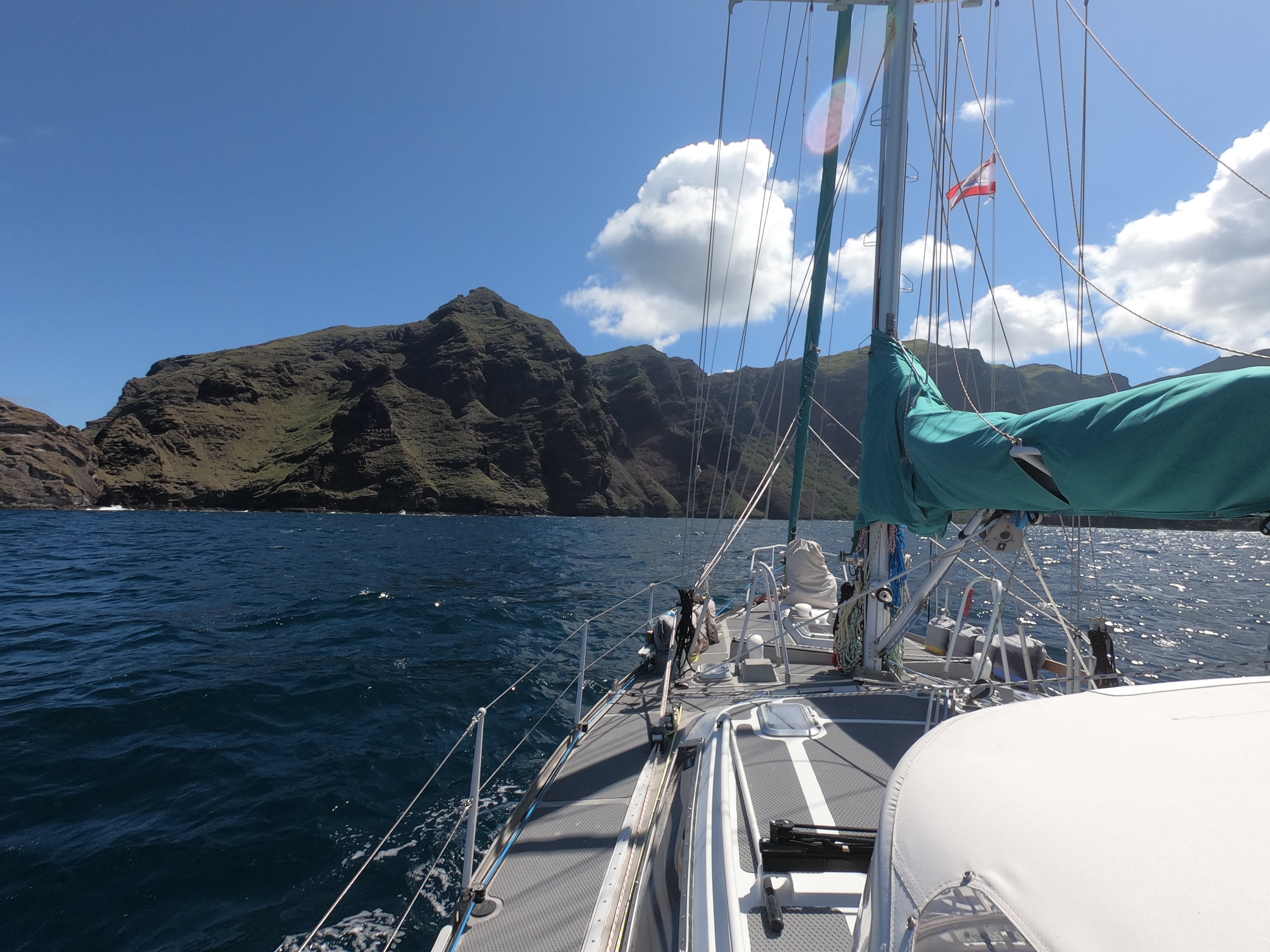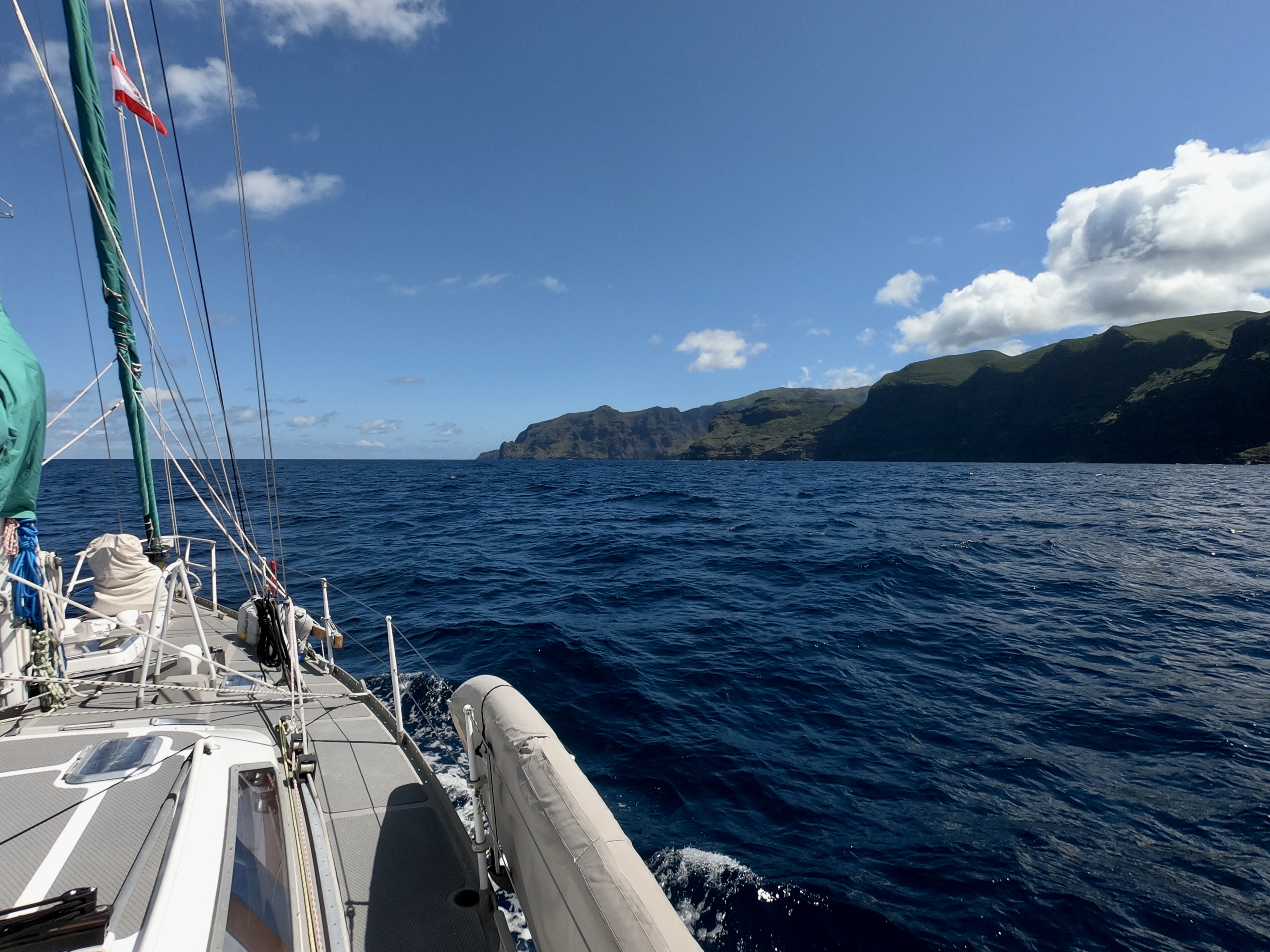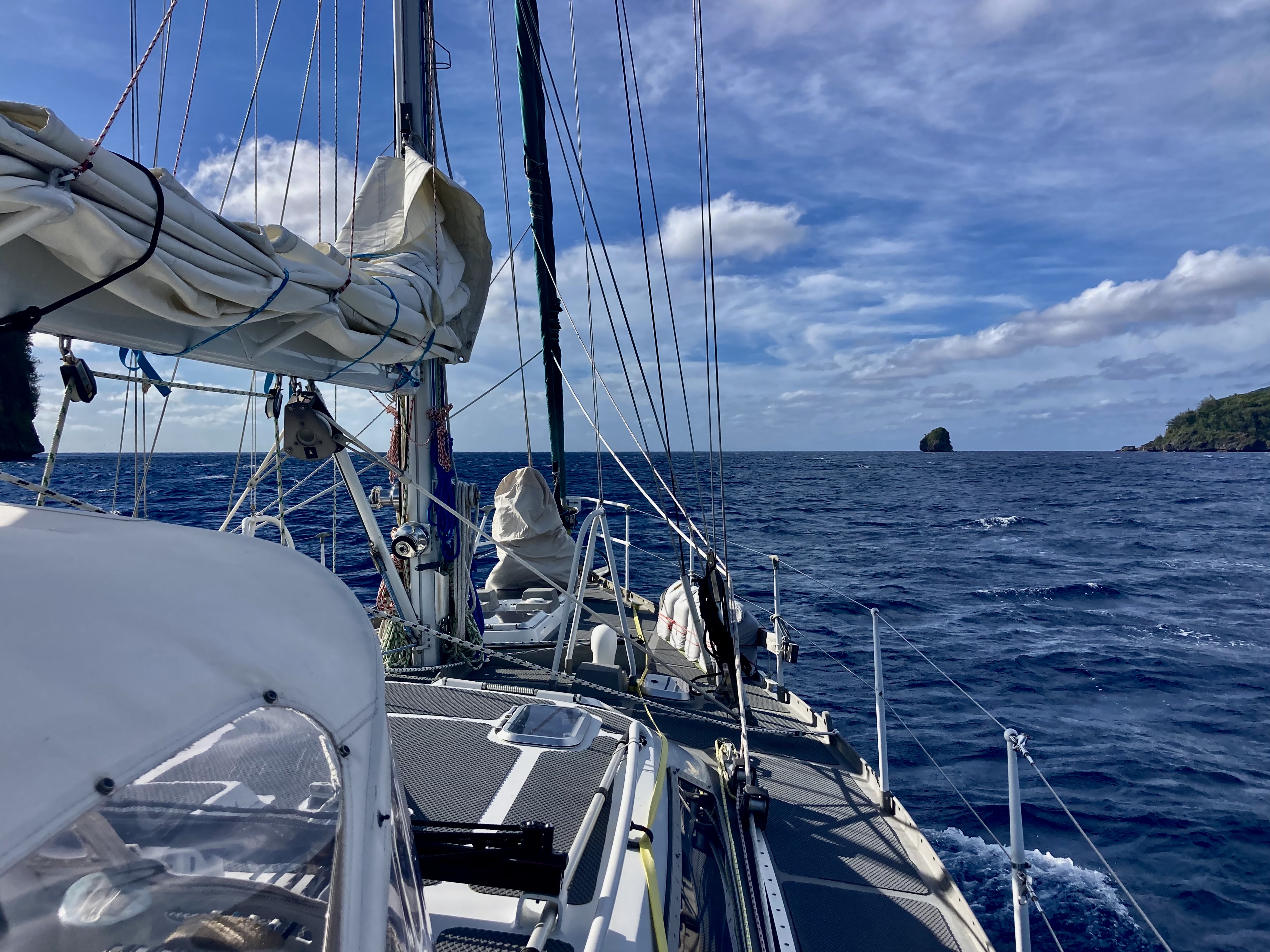 This allowed us to address our wind indicator sensor atop the mast, which had been out of commission for a month. Having it die midway between Mexico and French Polynesia had been, to say the least, less than ideal. We had ended up sailing sixteen hundred miles without it, which had reduced the accuracy of our data interpretation for sure.