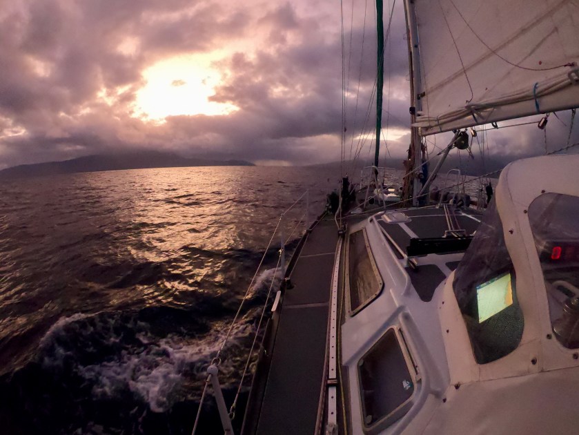 Even motorsailing for twelve hours straight, it was still highly unlikely that we would beat the sunset. Thus, a twenty-four hour slow sail became our new strategy – a pace slow enough to assure we would have the light of a new day to guide us through the winding pass.