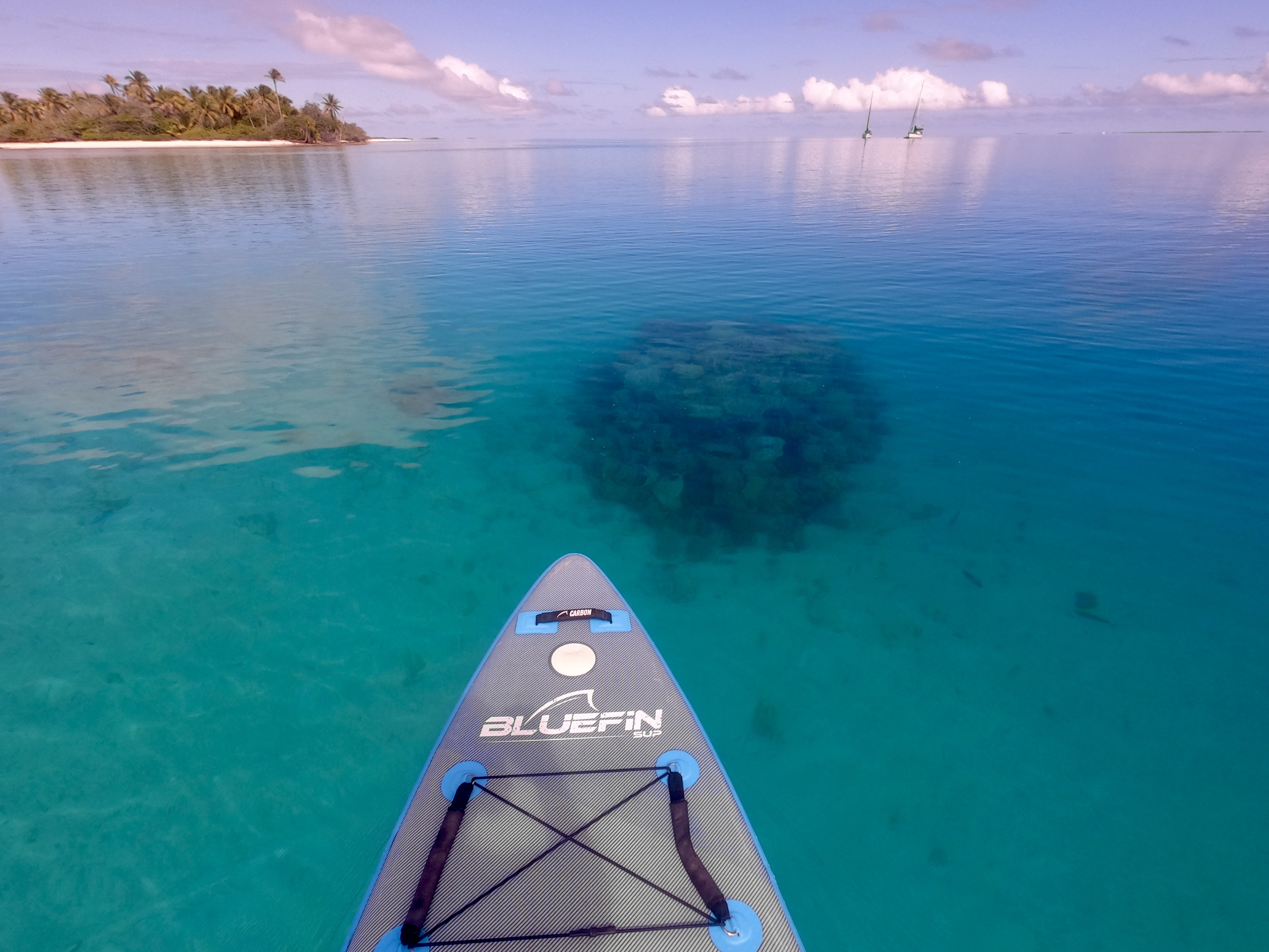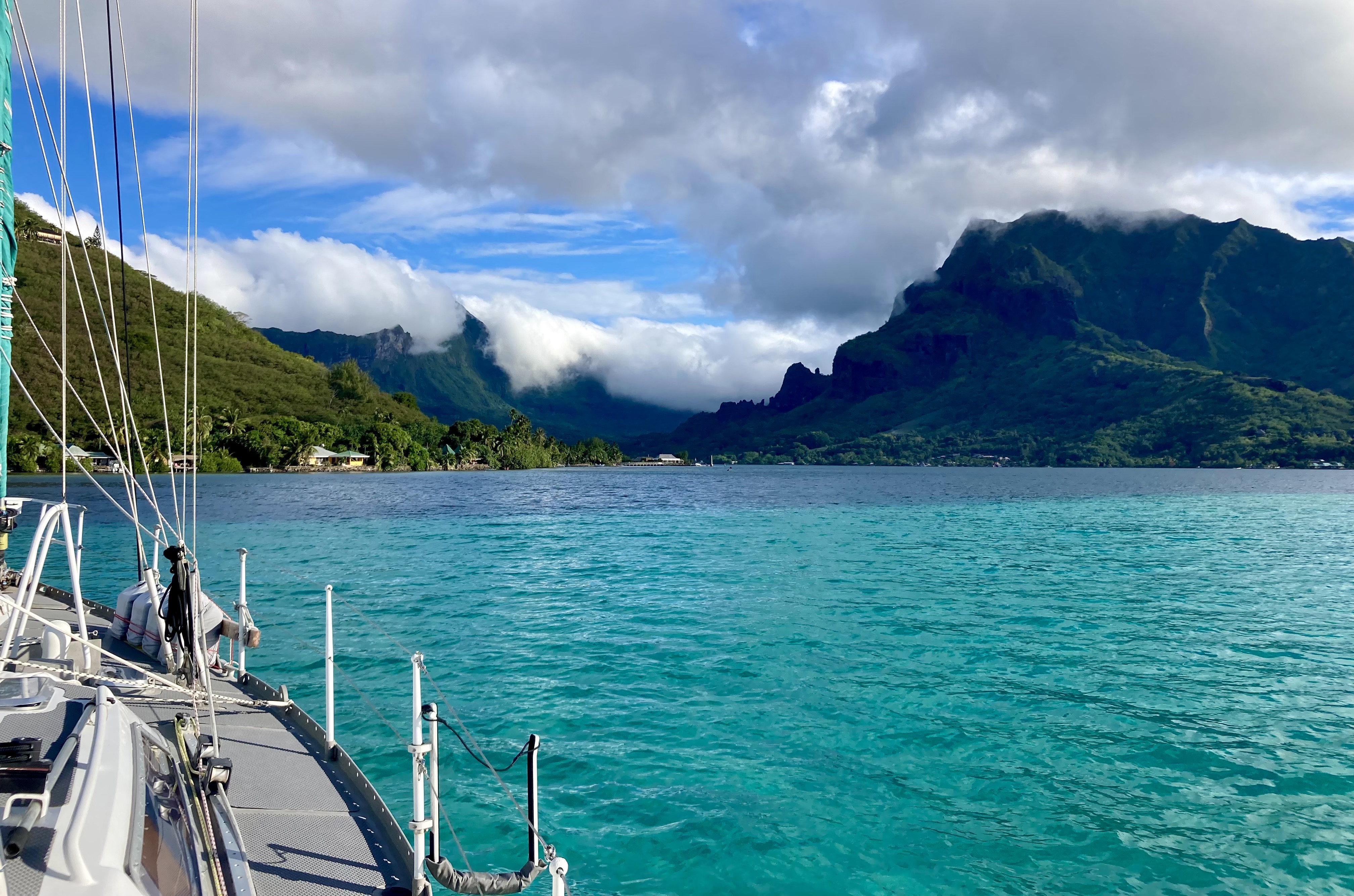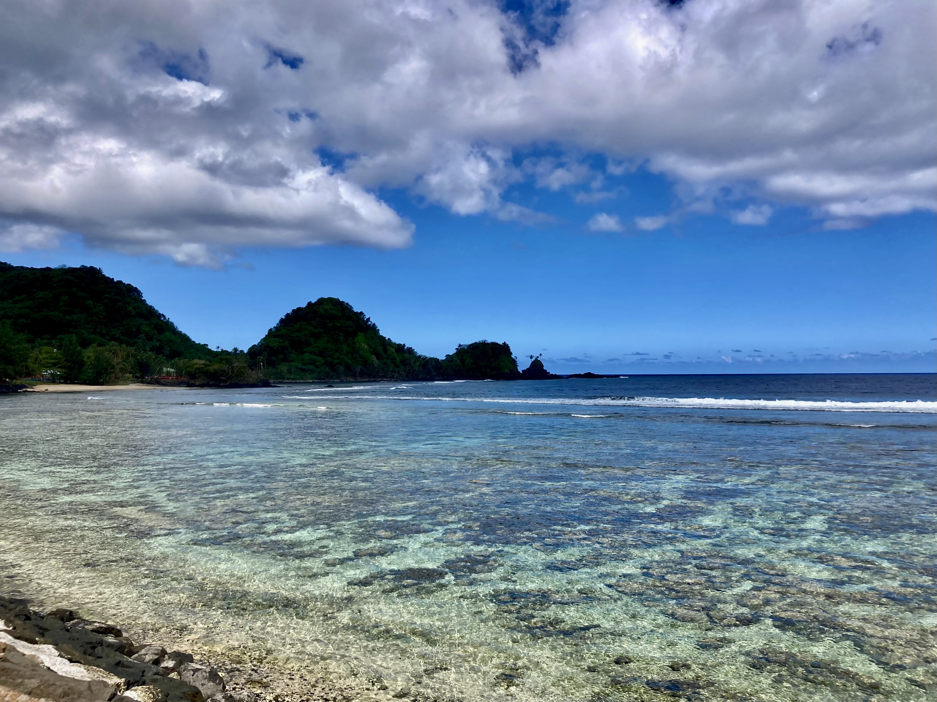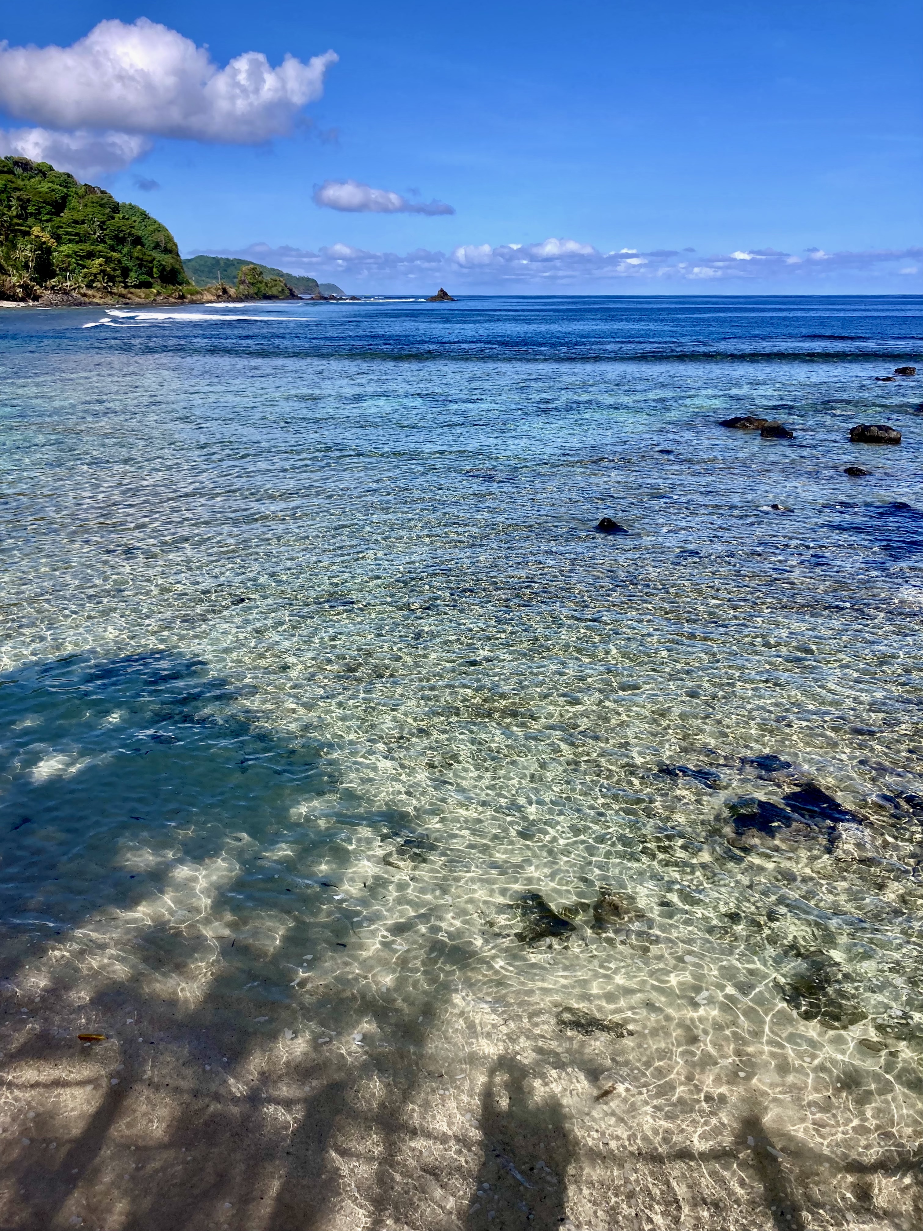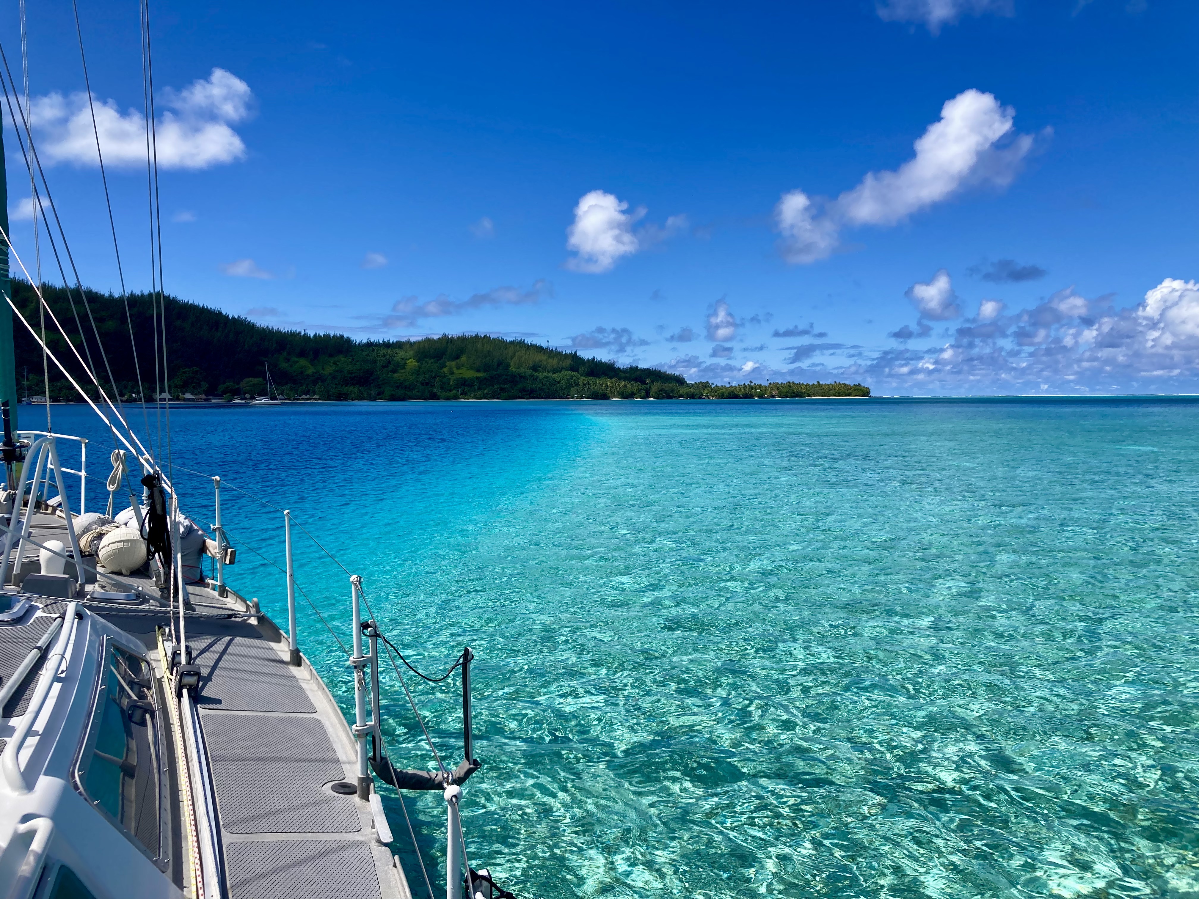 After about fifteen minutes of high alert navigating, we found ourselves inside the main lagoon. Safe harbor North of Latitude 10°S.