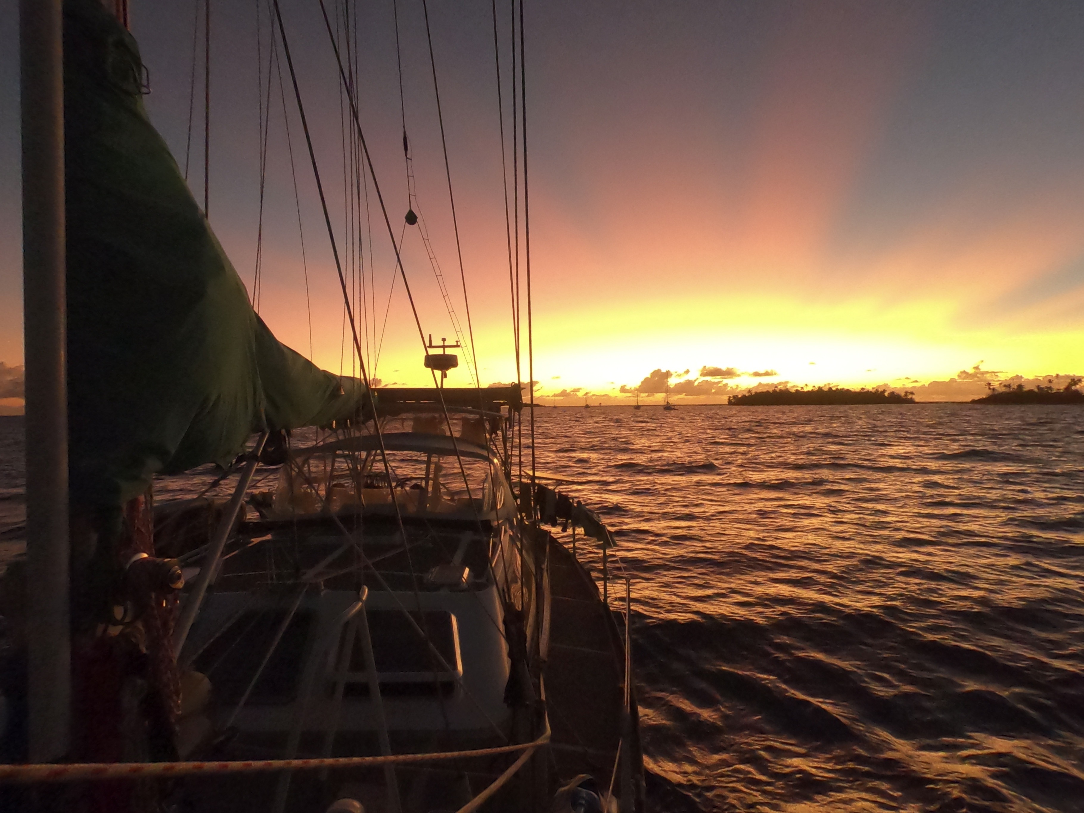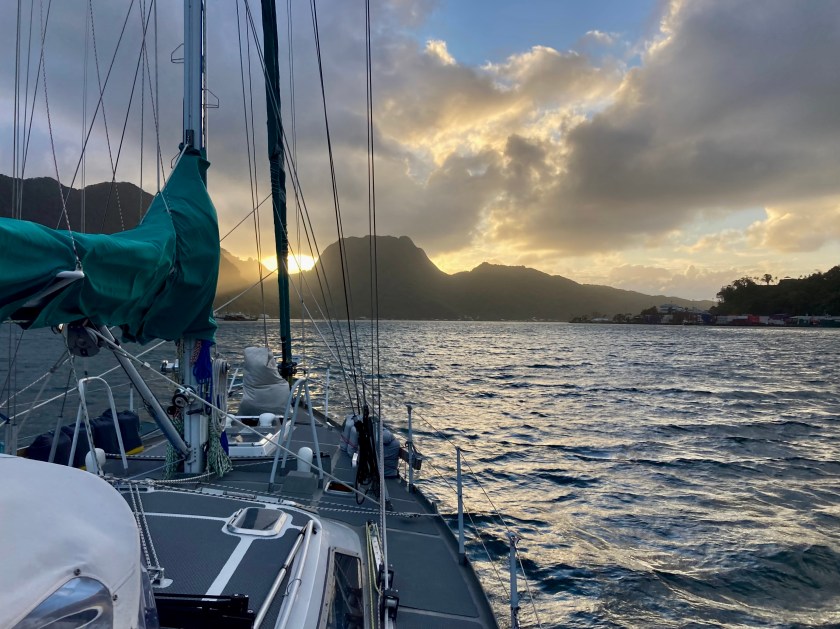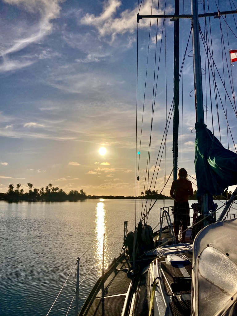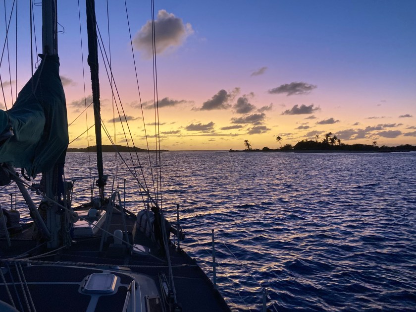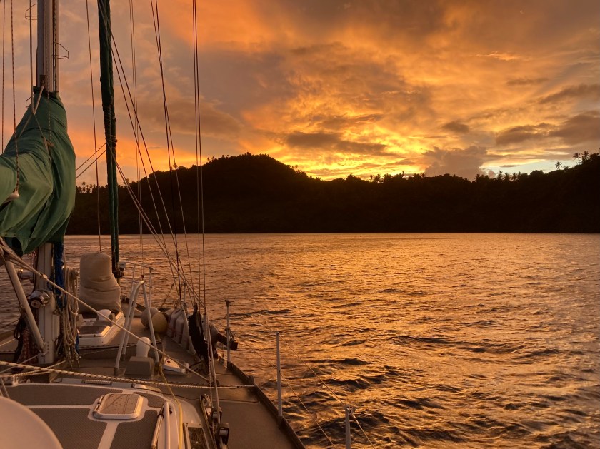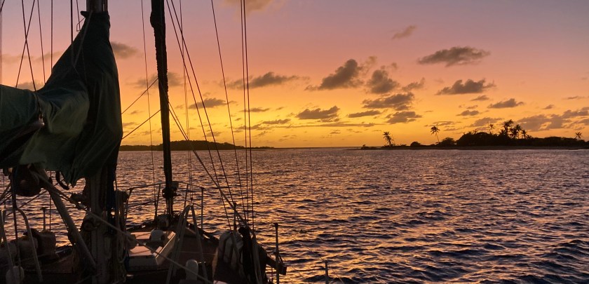 We had set anchor inside the atoll of Wallis on a Saturday just before noon. That evening we ended up enjoying a magical sunset at anchor just off a small uninhabited island named Île Faïoa in the southeast corner of the atoll while we awaited the arrival of Monday, when we thought we could clear in.