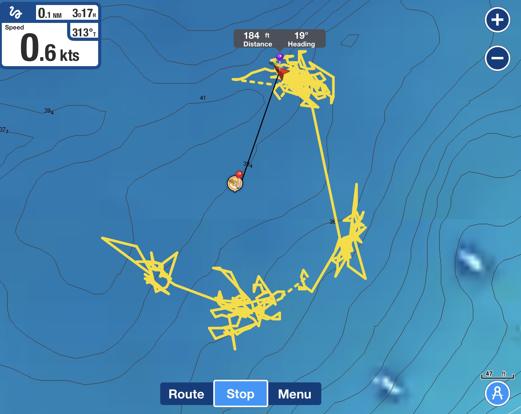 The only time this wandering about becomes problematic for us is if there are obstructions within close proximity of the anchor. We found a handful of times, that the extra movement and drifting allowed by the floats could cause us to drift closer to these obstructions without the chain clearing over the top of them. In these cases, the weight of the chain on the bottom actually keeps us in place and out of the way of obstructions that we may pass across if the chain is being floated. As long as we are sitting clear of the obstruction, this is one situation where not having the floats out makes more sense.