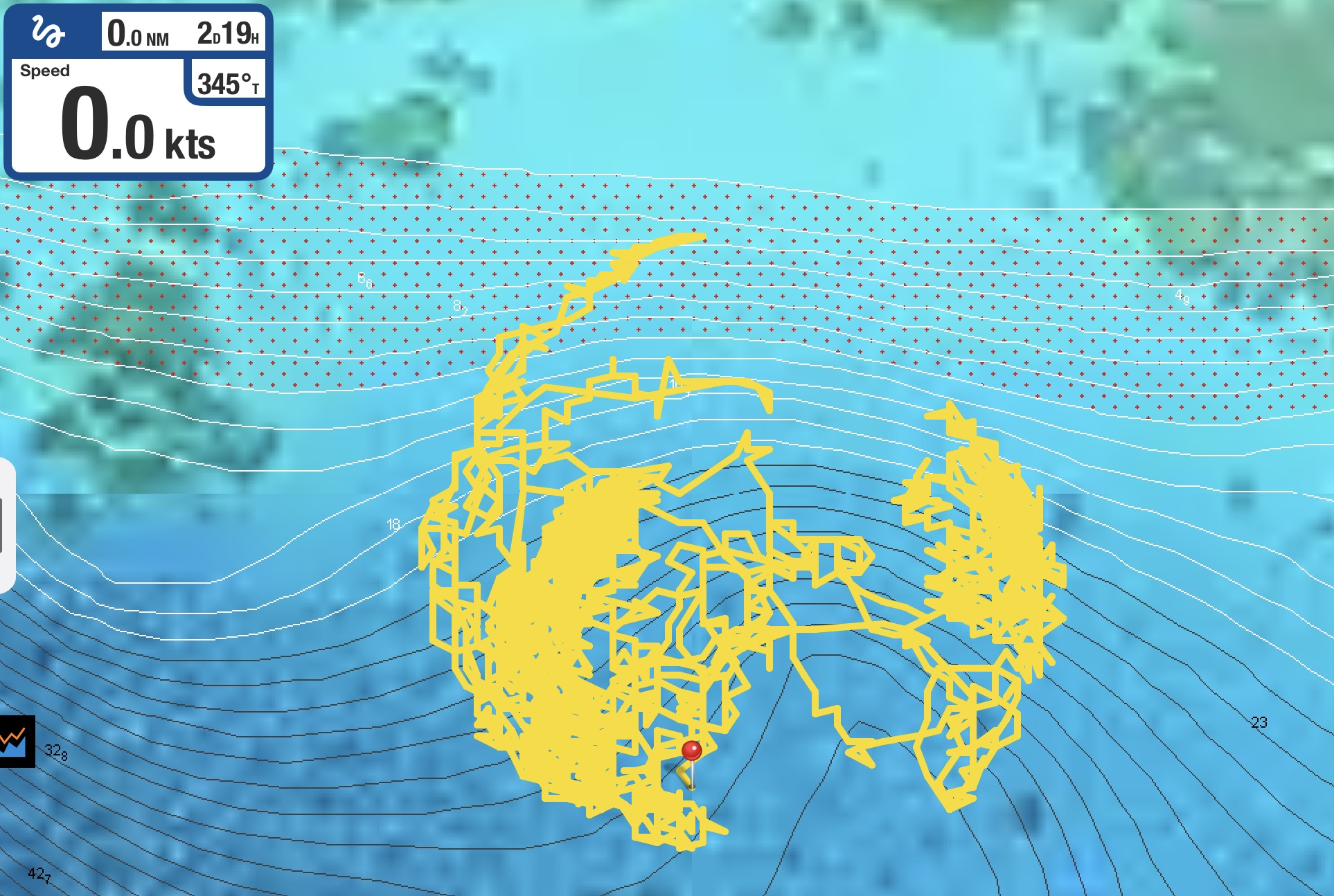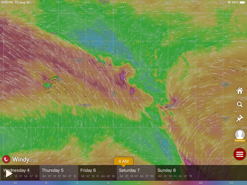 Still, it was nice to have a better indication of wind than: not enough, just right, or too fucking much. And even nicer to have it clearly and conveniently available on a display in both the cockpit and at the nav table.