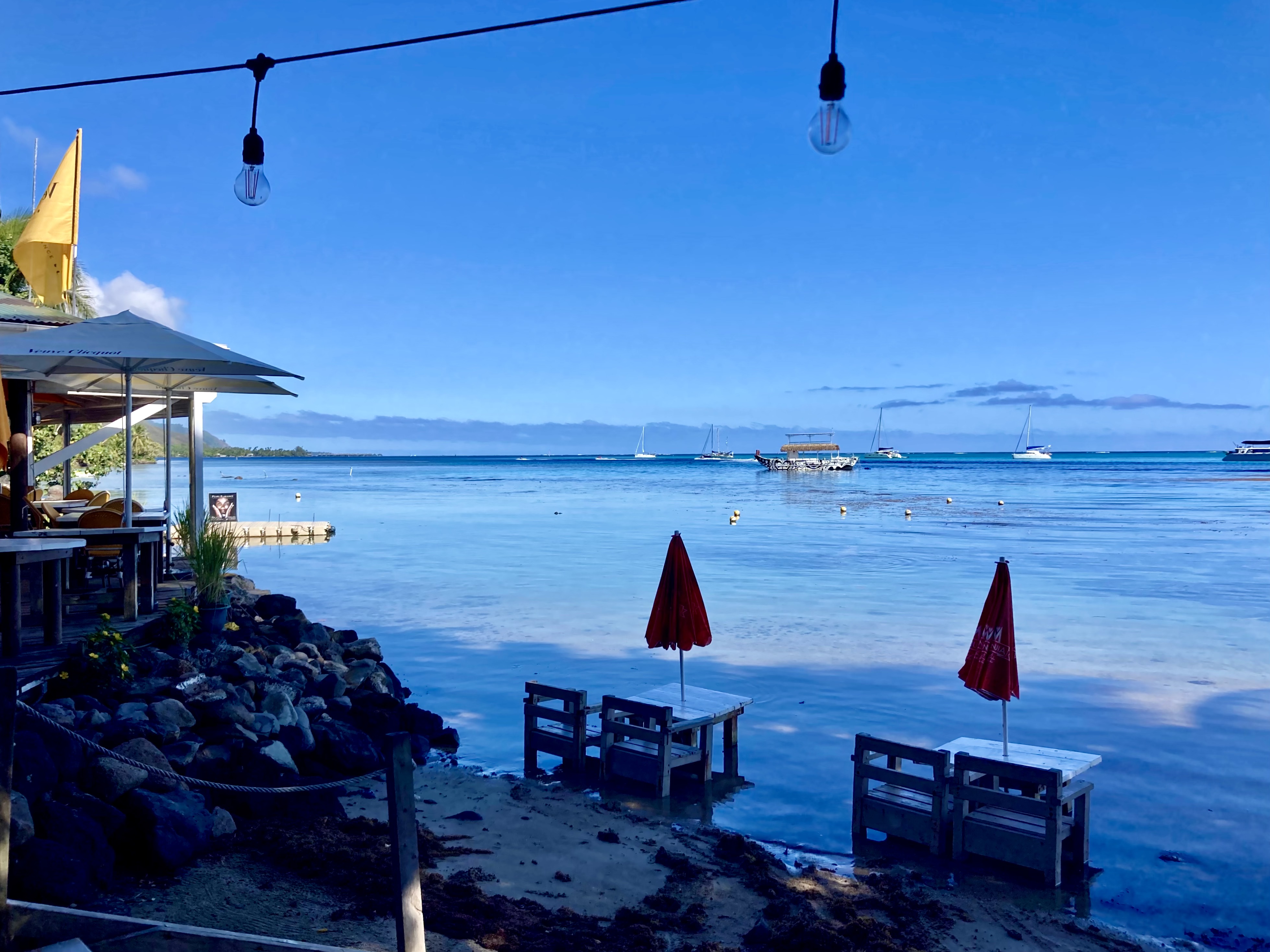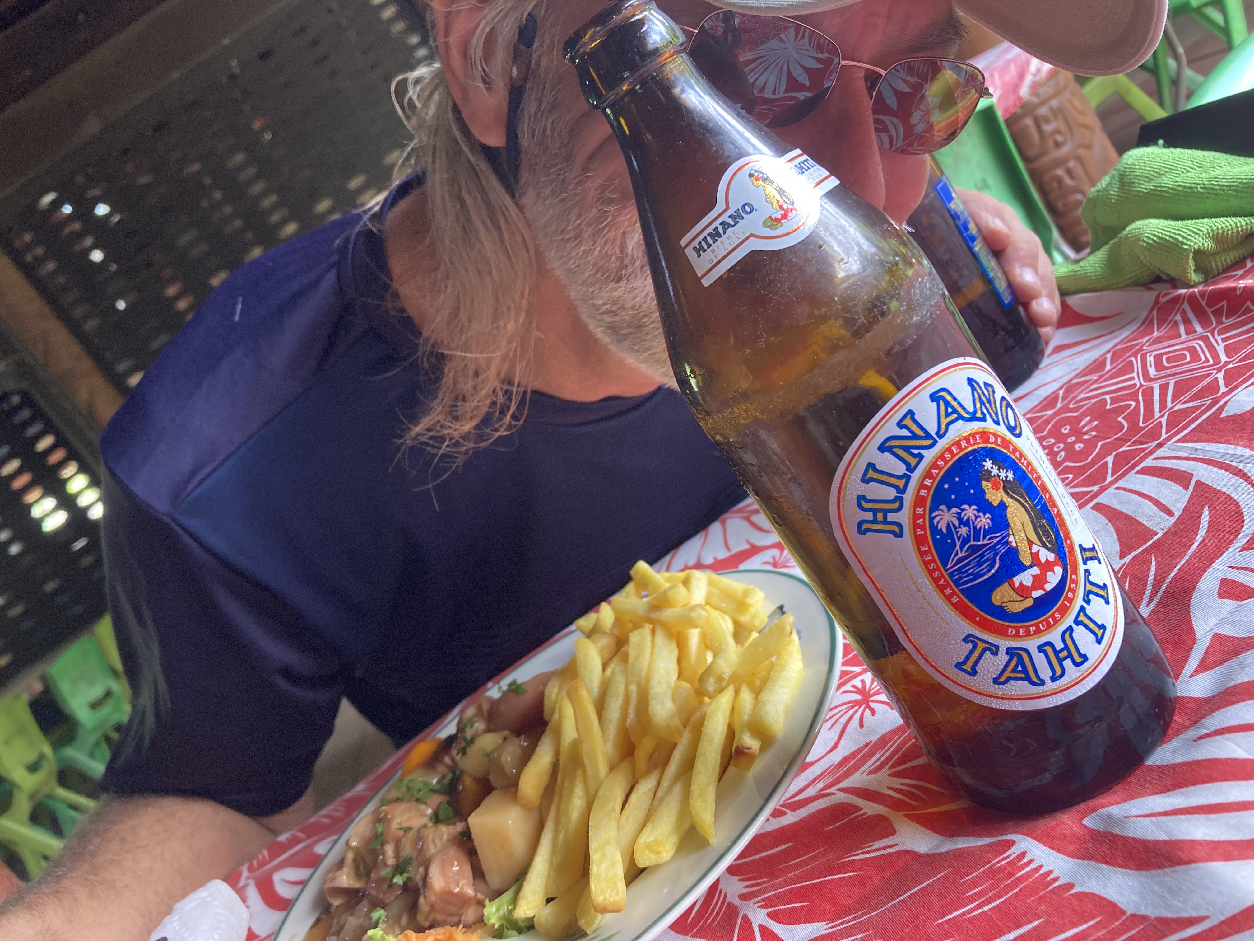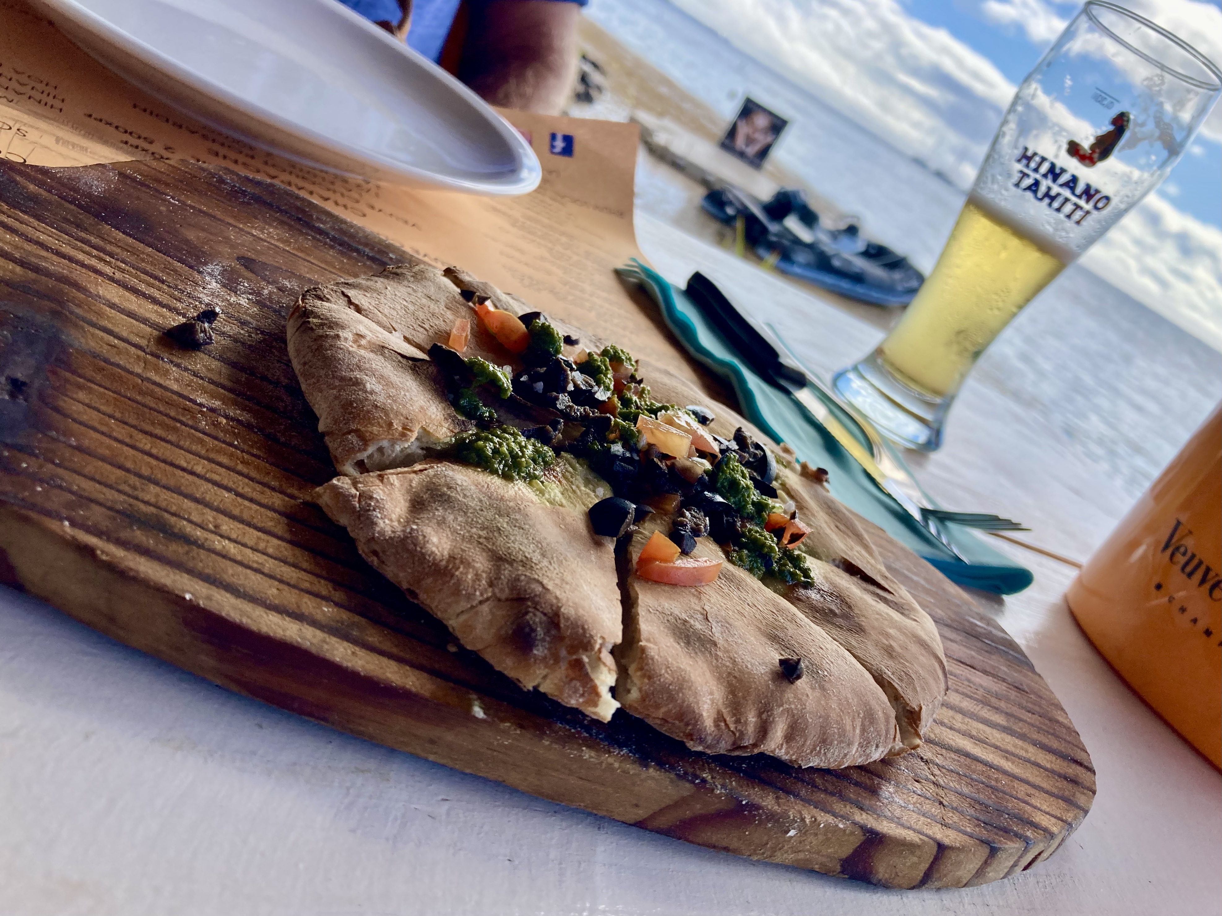 We decided that a bit of food prepared by someone else and a few Hinano Tahiti beers sounded like a great idea. We joked that maybe a few drinks would even help us to walk straight again!