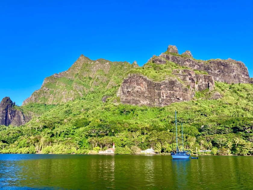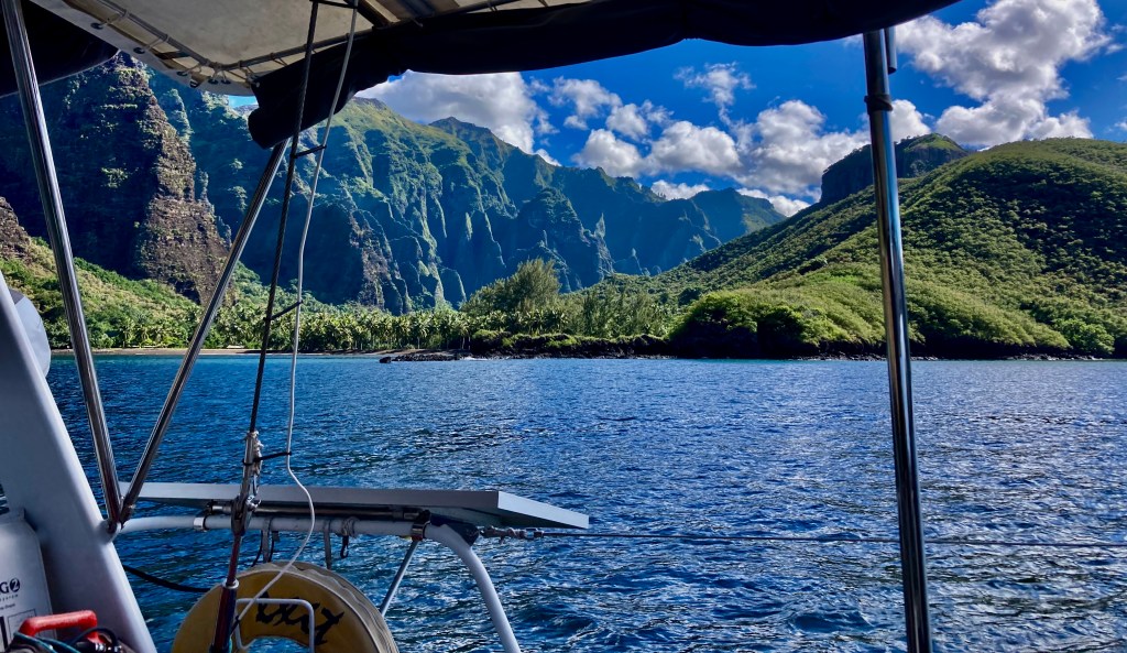 We left Baie de Taioha’e and sailed six mile west to an anchorage called Anse Hakatea (or Daniel’s Bay).