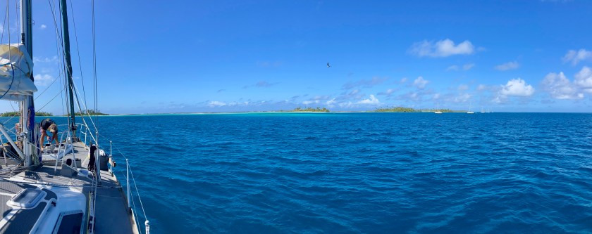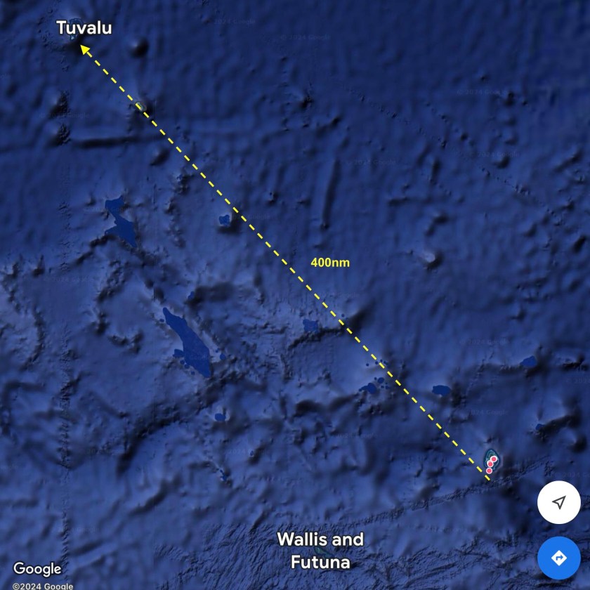 From a latitude of 19°S in Vava’u, Tonga to 13°S. We had travelled roughly 370 nautical miles. To a tiny oval shaped atoll, only about 13nm long from top to bottom with an 8nm long island inside.
