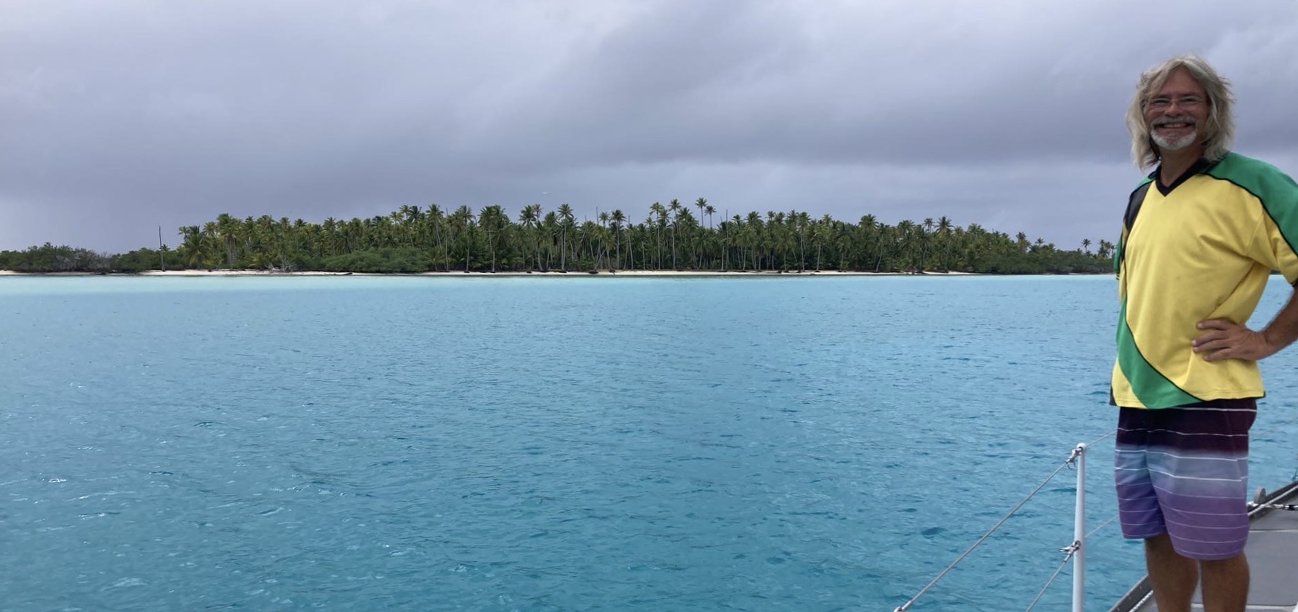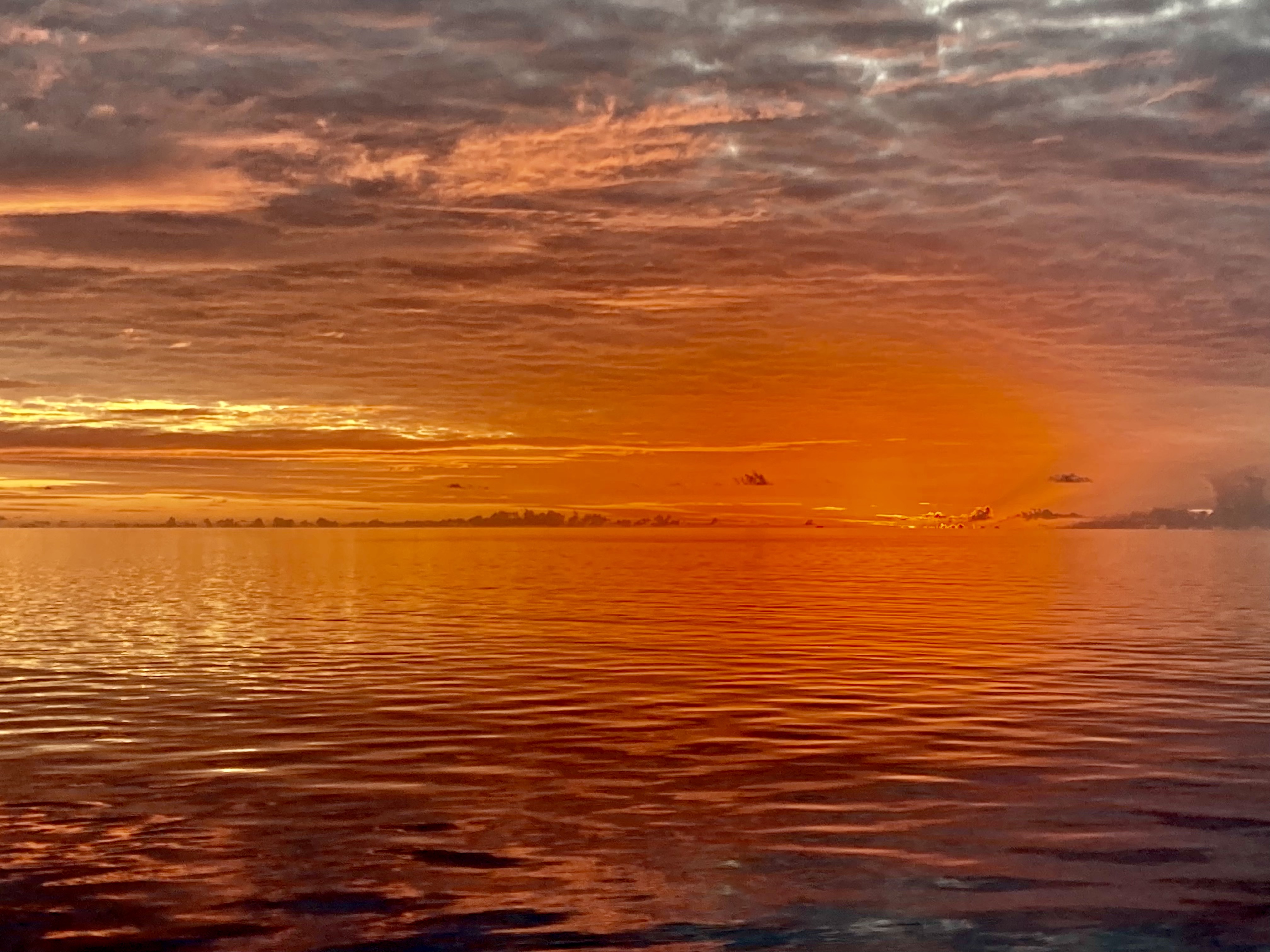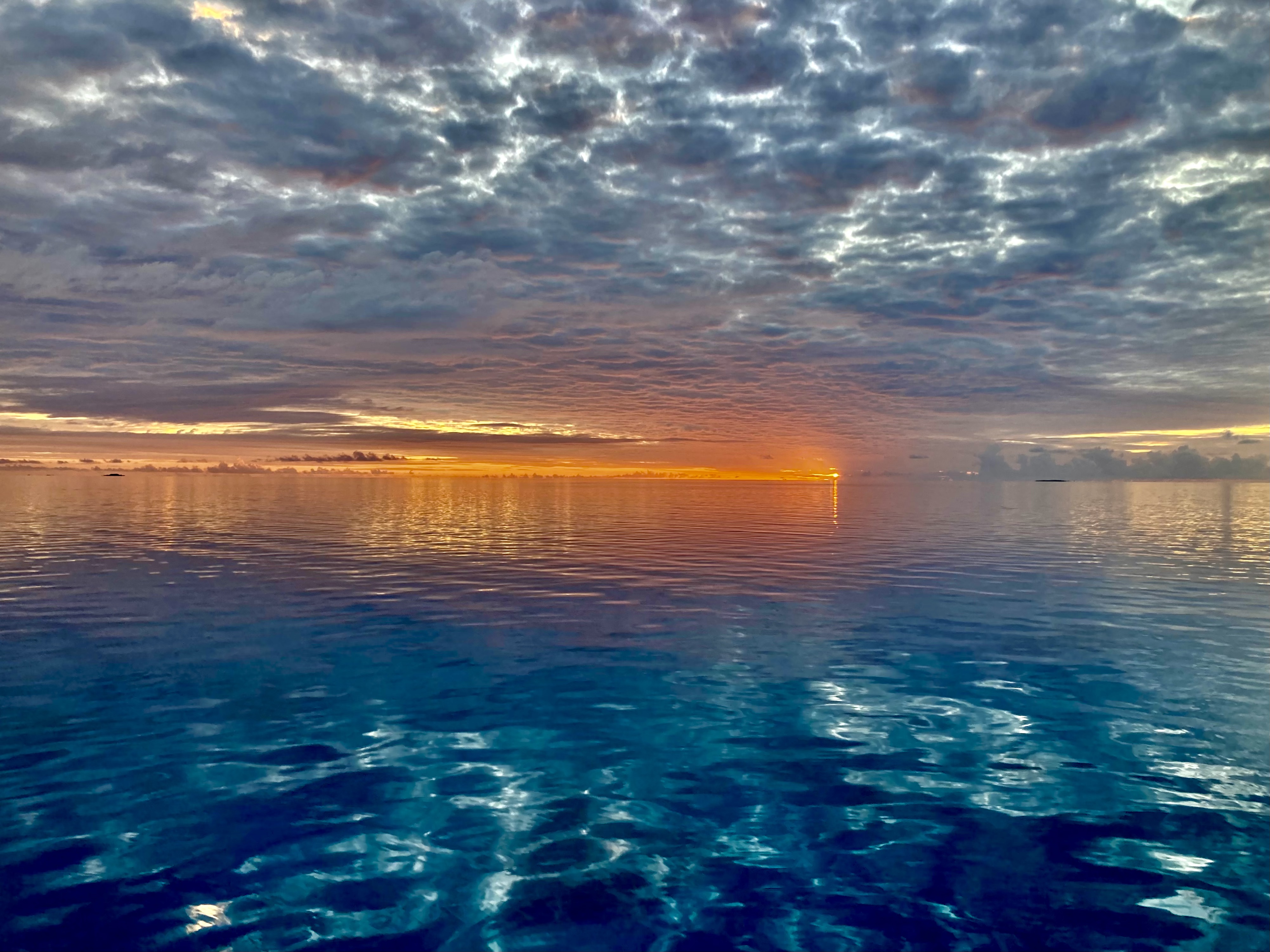 Six hours later, the dark silhouette of Funafuti lay directly in front of us, barely left of the new day’s sun, which had just cleared the horizon line.