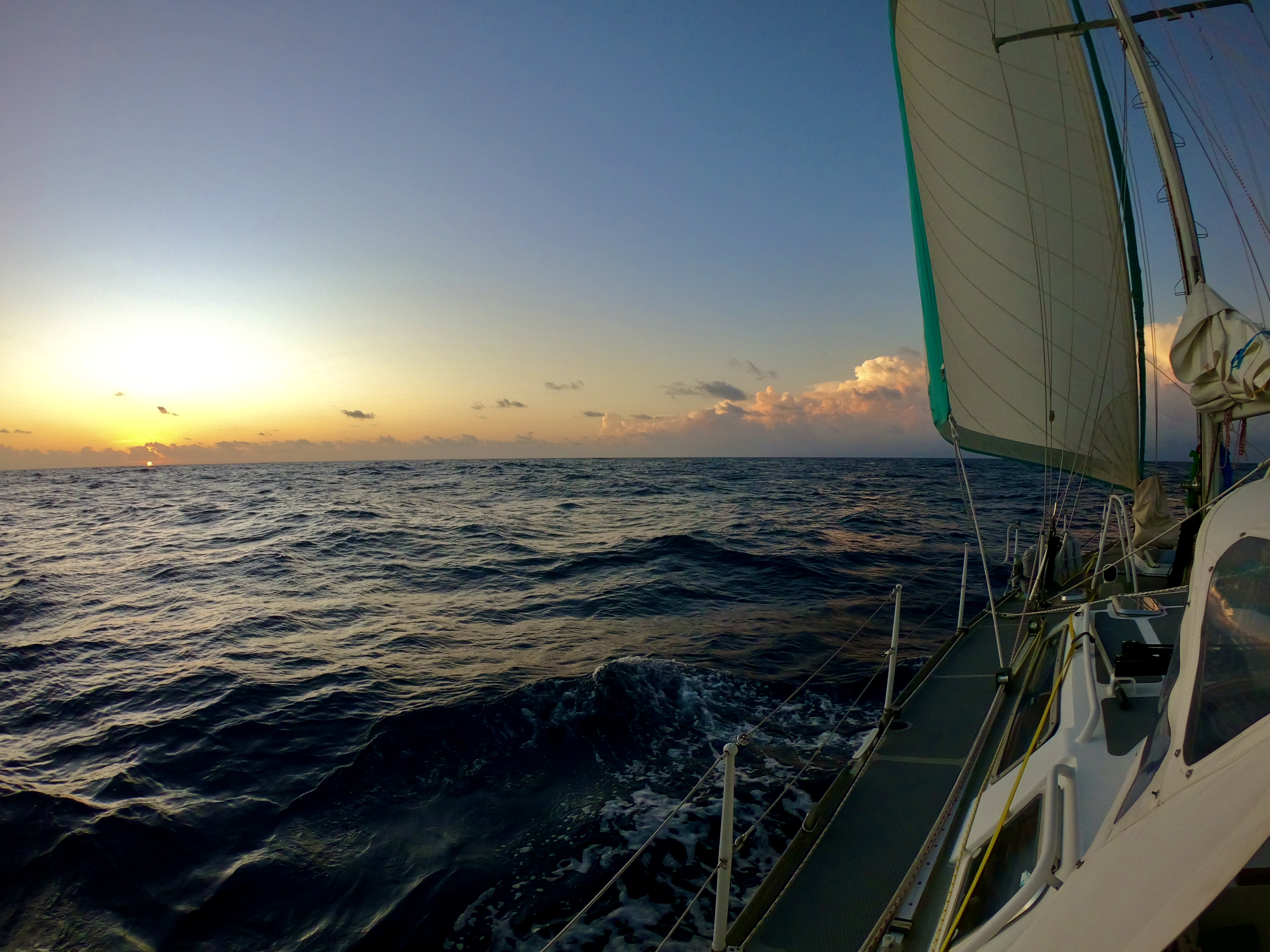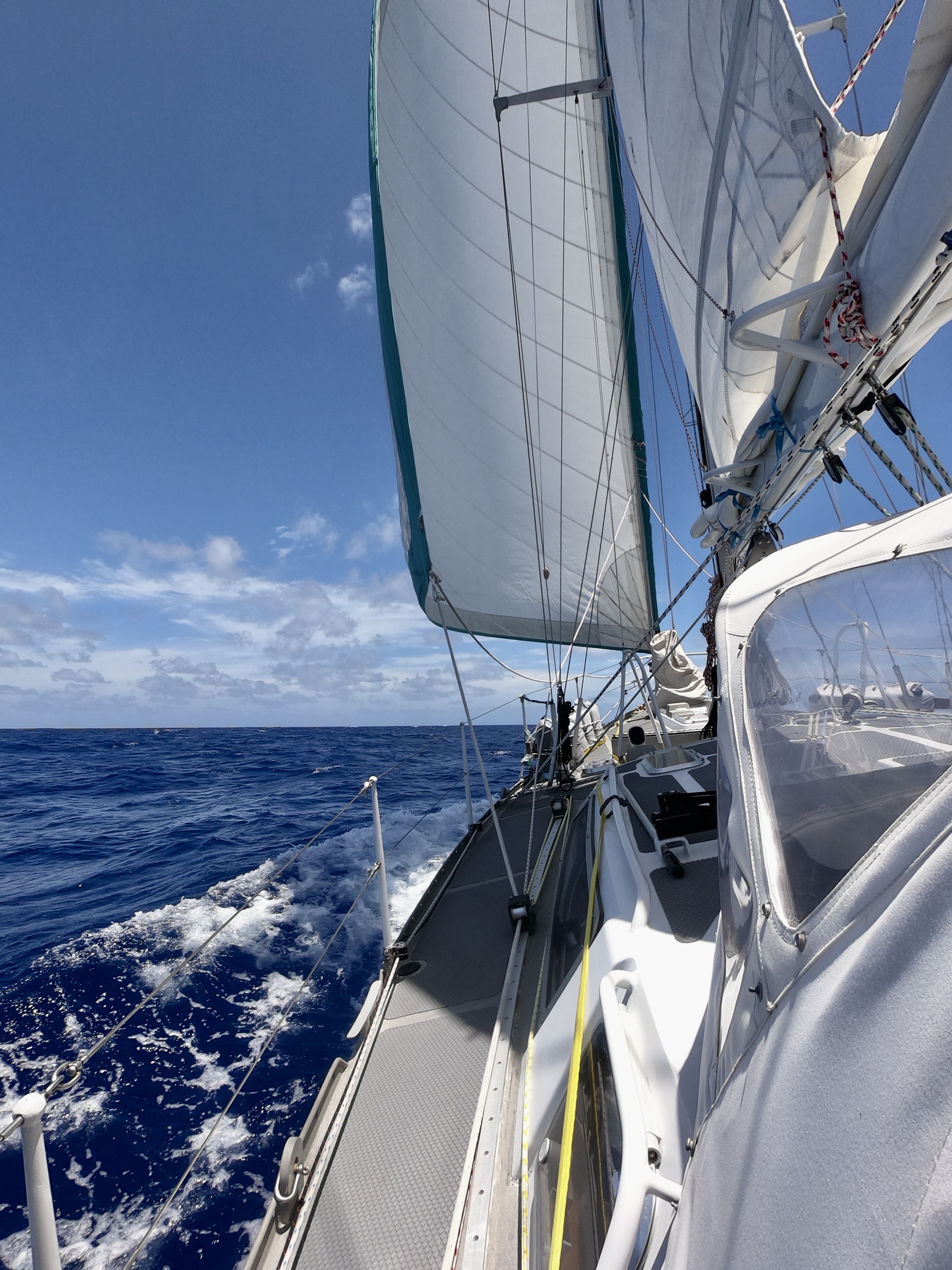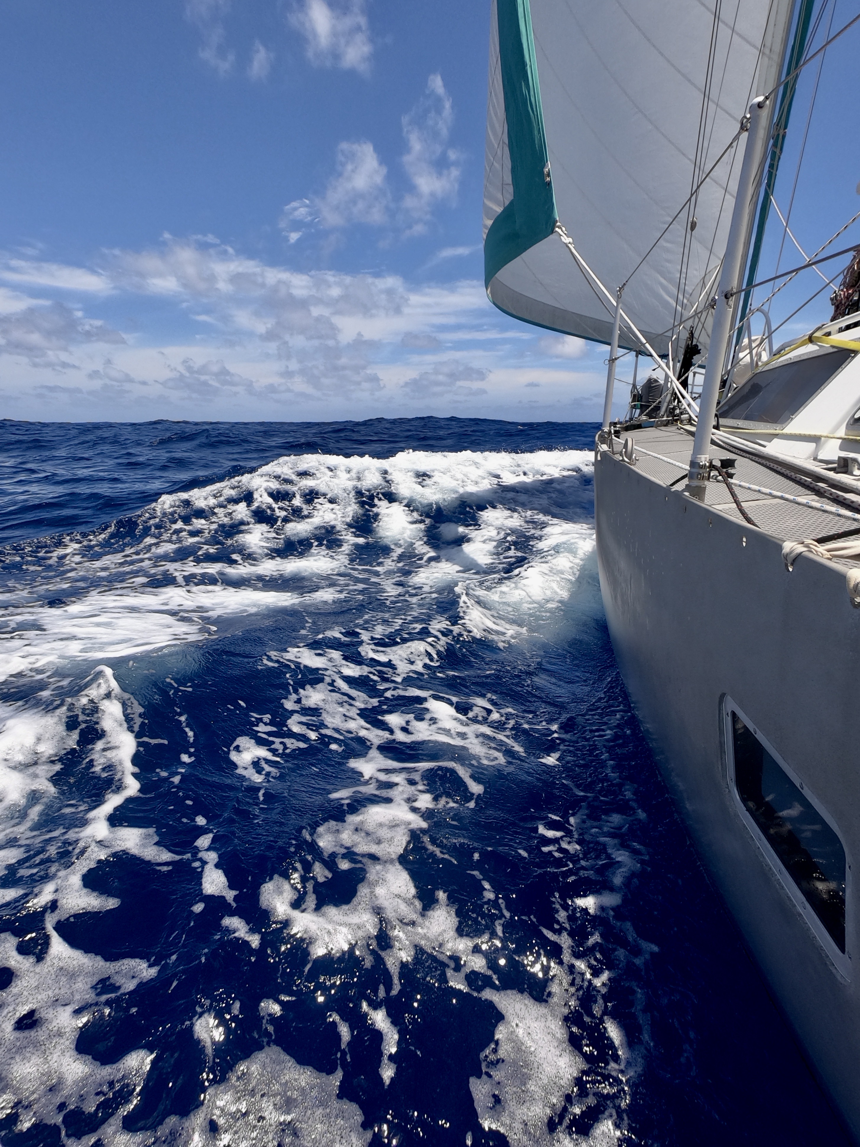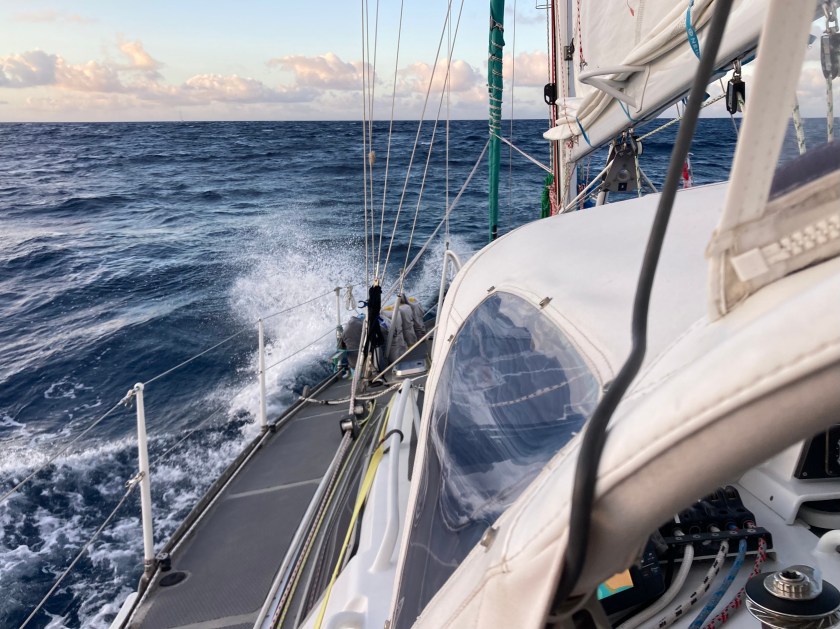 A 1:00am squall that finally brought fifteen knot winds also made for a rough night, but finally we were making good progress hauling ass at between six and seven and a half knots.