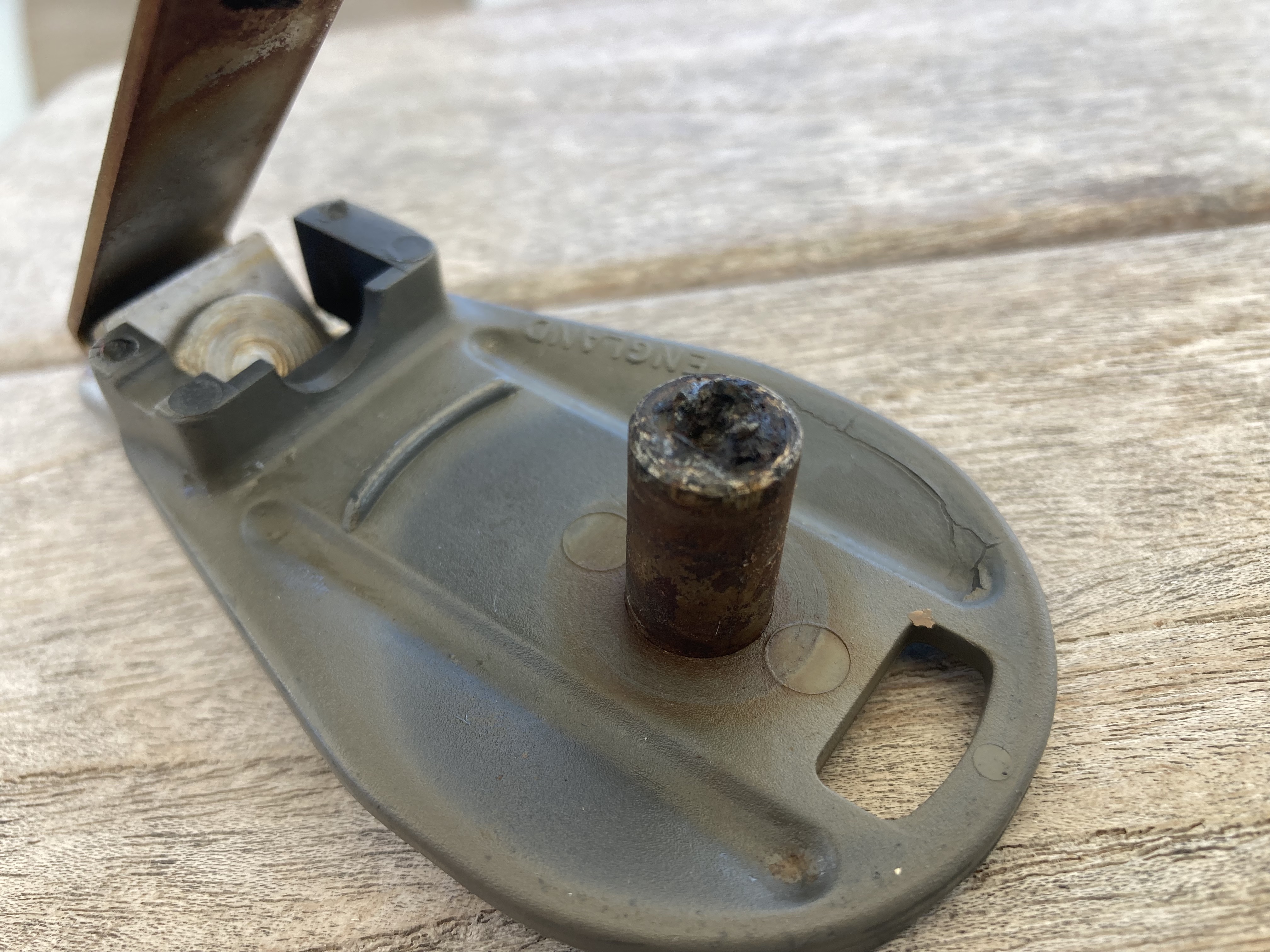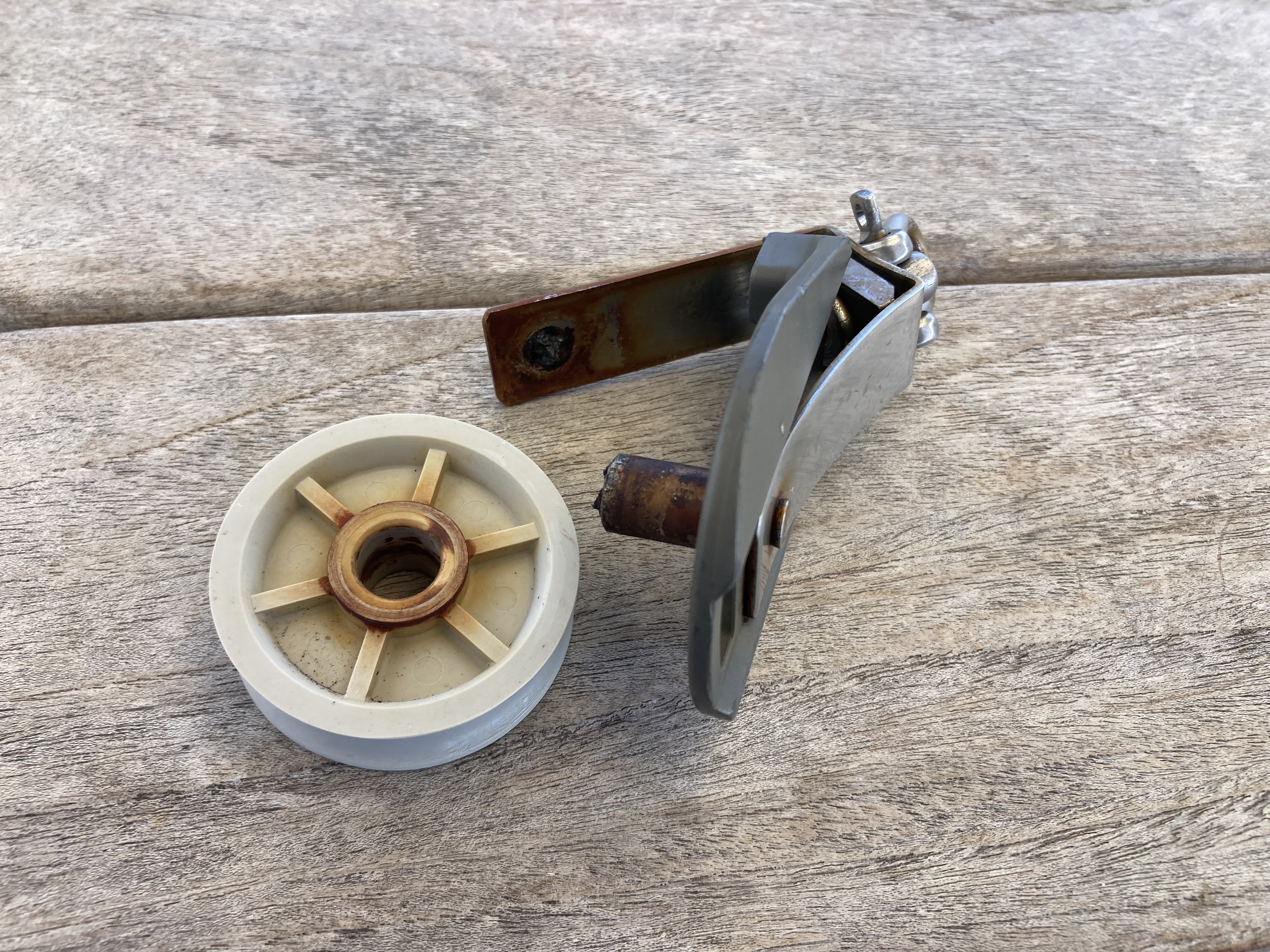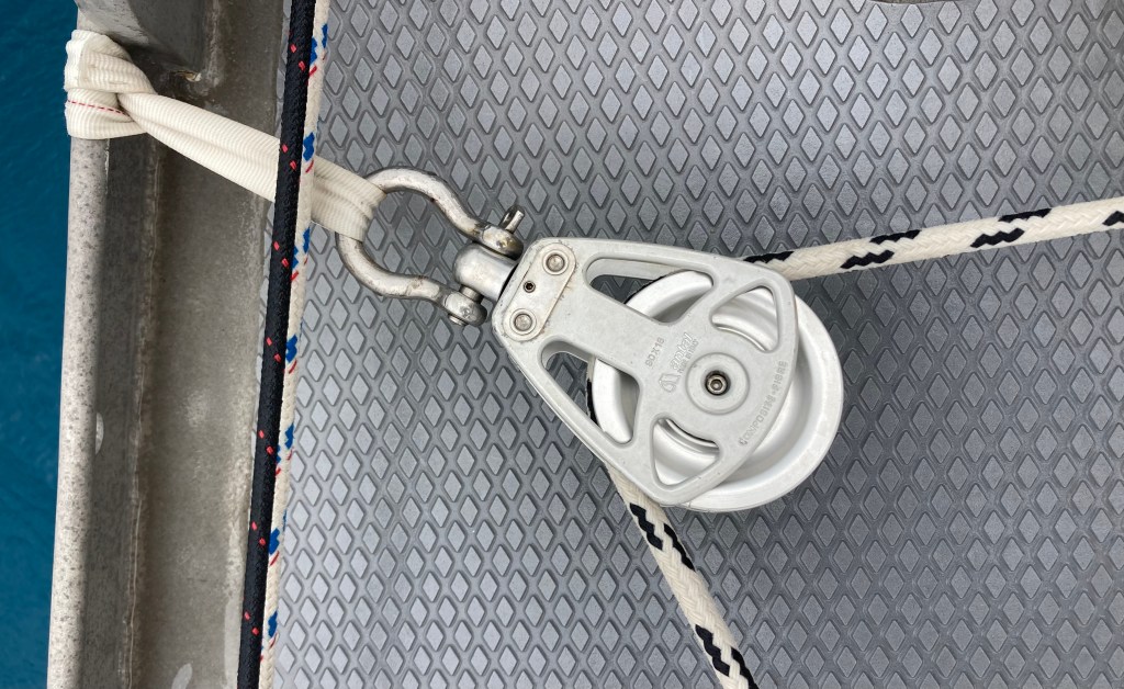 These had already been replaced by massive solid aluminum blocks we found in our spares locker which appeared rather bulletproof – it seemed to me that the boom would fail before these things would.