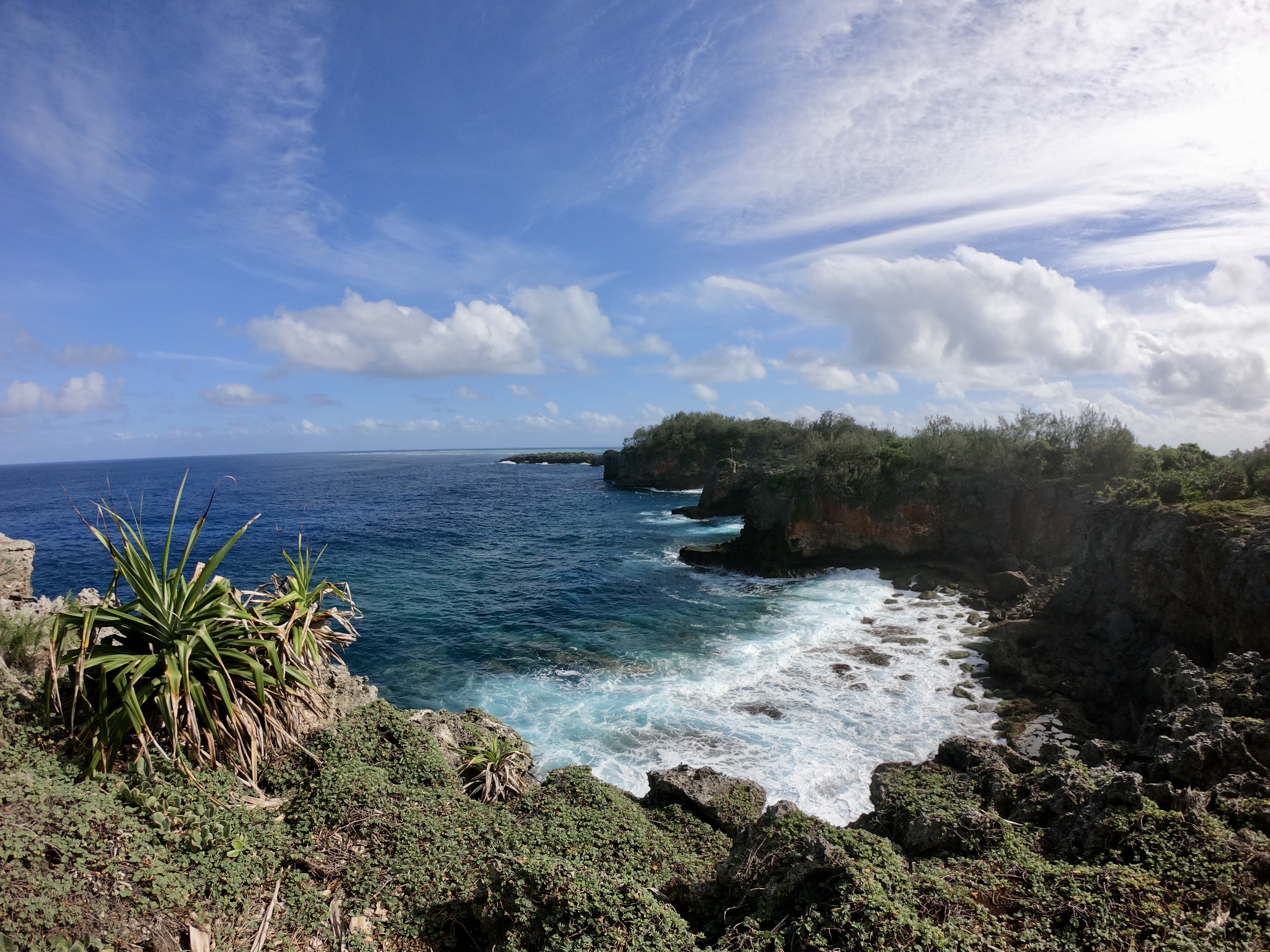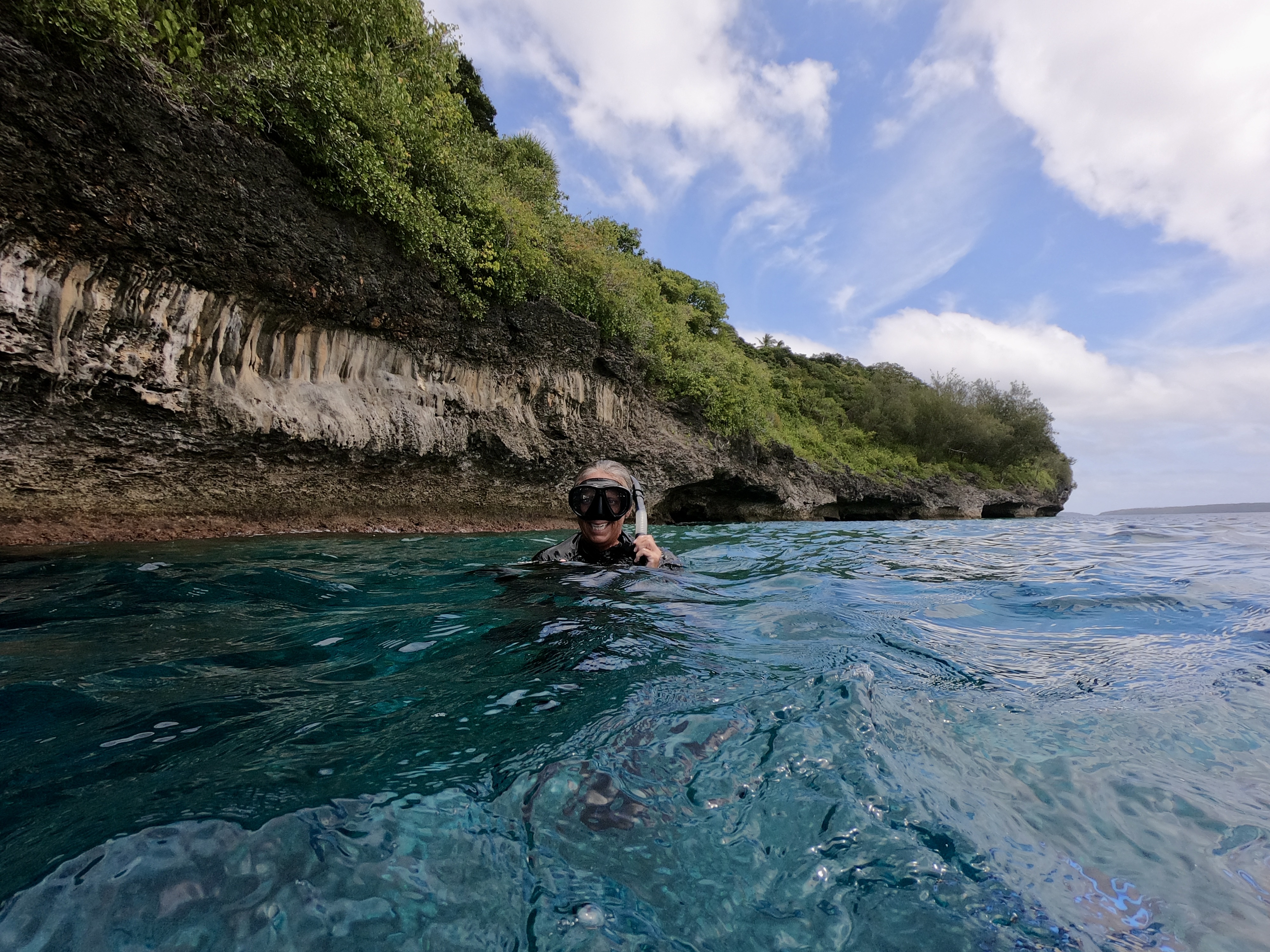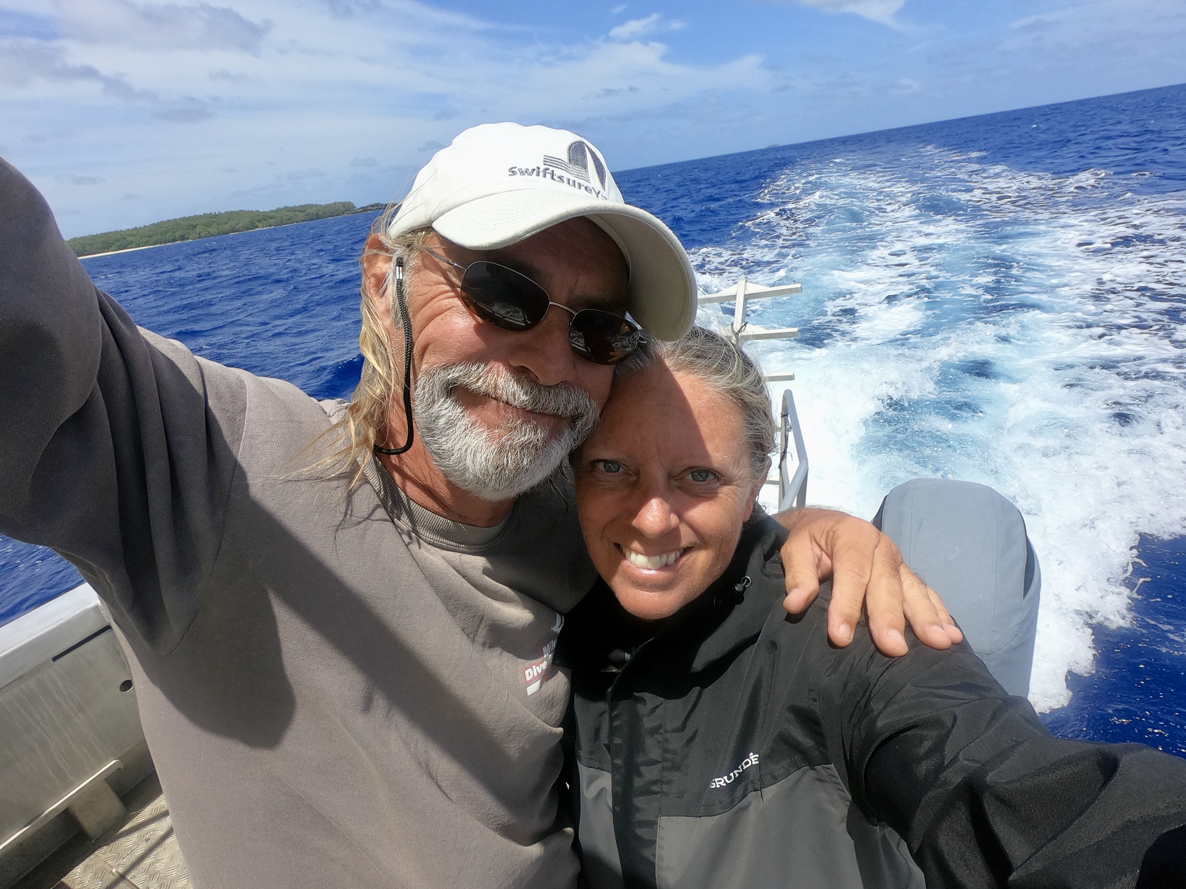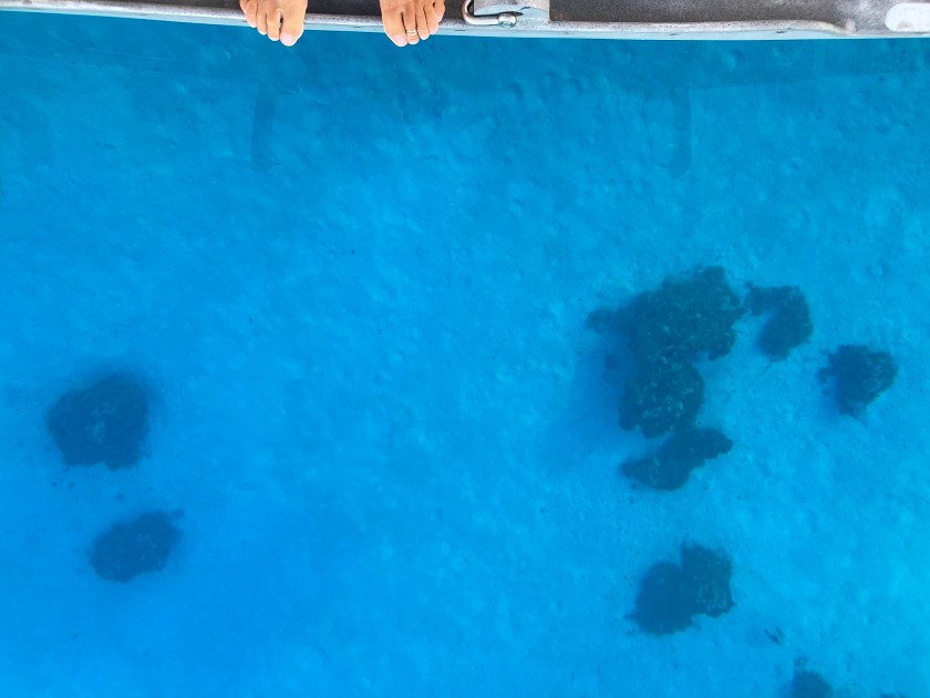 No worries. We were used to diving alone; and after a thorough briefing felt completely comfortable with the situation. As it turned out, when the dive boat arrived at the pass, the current was outgoing and it was absolutely ripping. The call was quickly made to alter the plan, and we all headed outside the pass in the dive boat to a spot on the outer side of the atoll. Pascal said we were still free to go on our own. Despite having very little information about where we were going, we hopped in the water and had a great dive wandering randomly amongst underwater canyons. We had a surface marker to deploy at the end of the dive so, without meandering too far or doing anything silly, we were confident knowing there was a boat to pick us up when we surfaced. It wouldn’t make the list of best dives ever; regardless, we had an awesome time doing our first solo dive on the outside of a remote atoll in the middle of the Pacific Ocean.