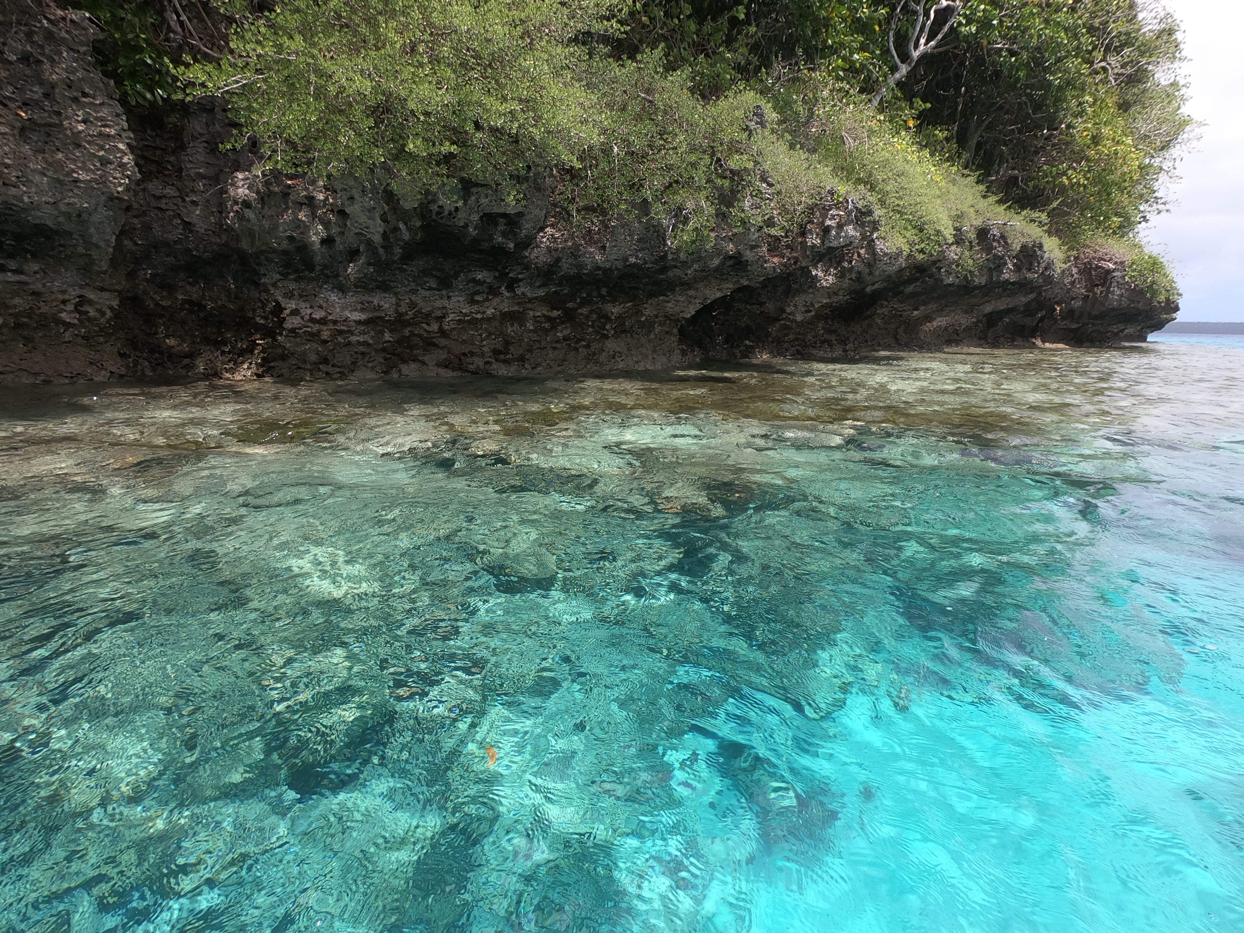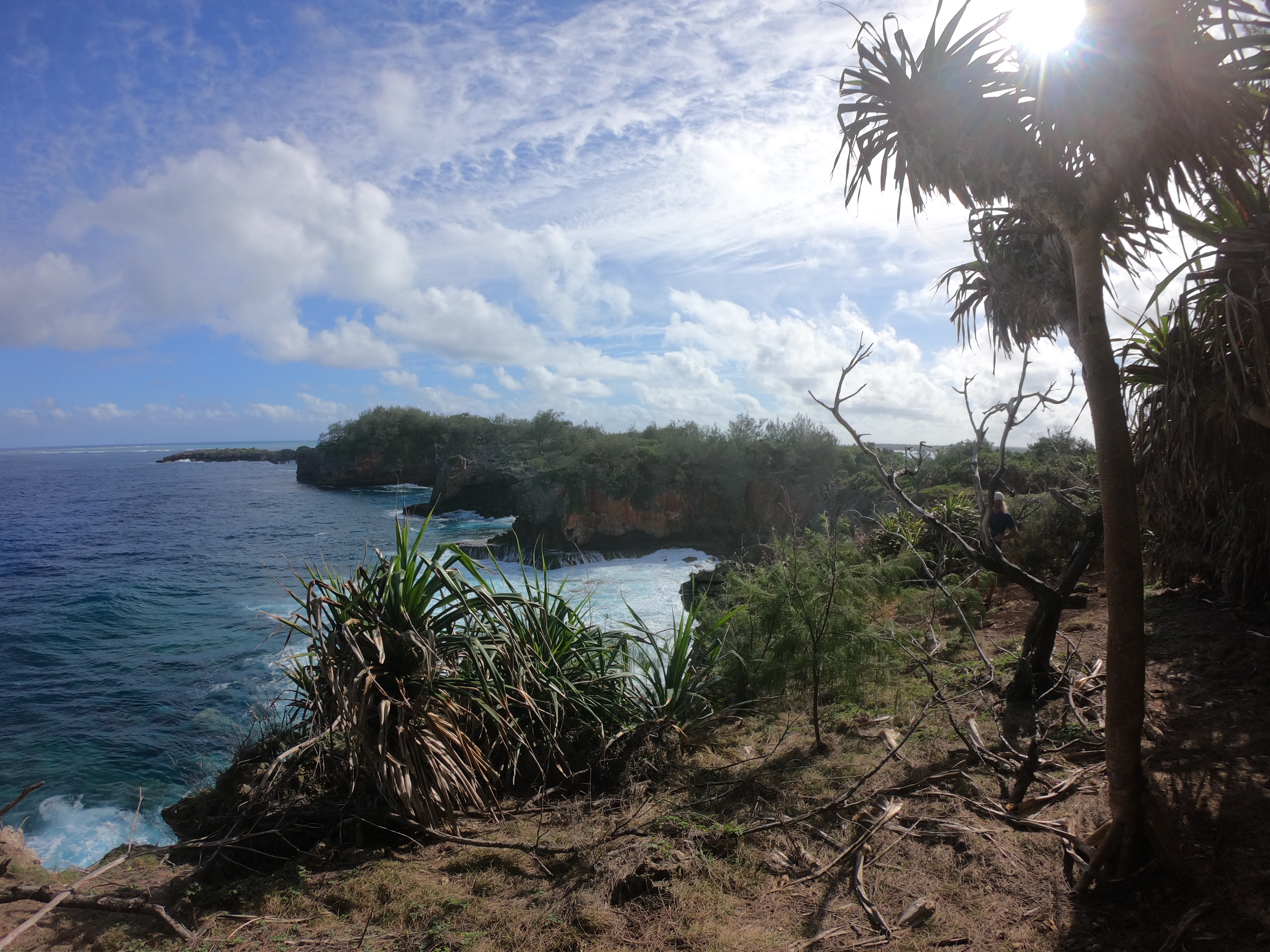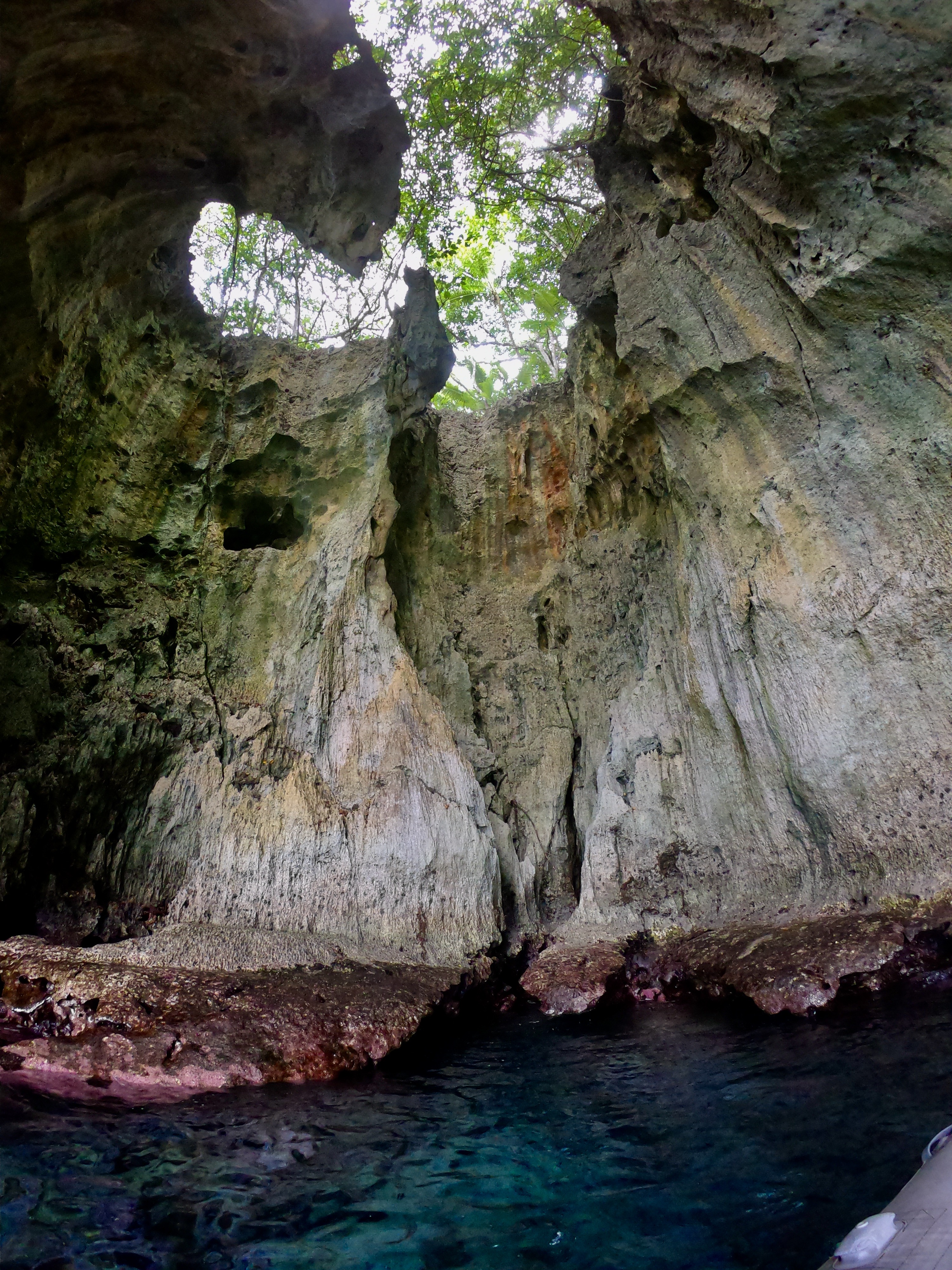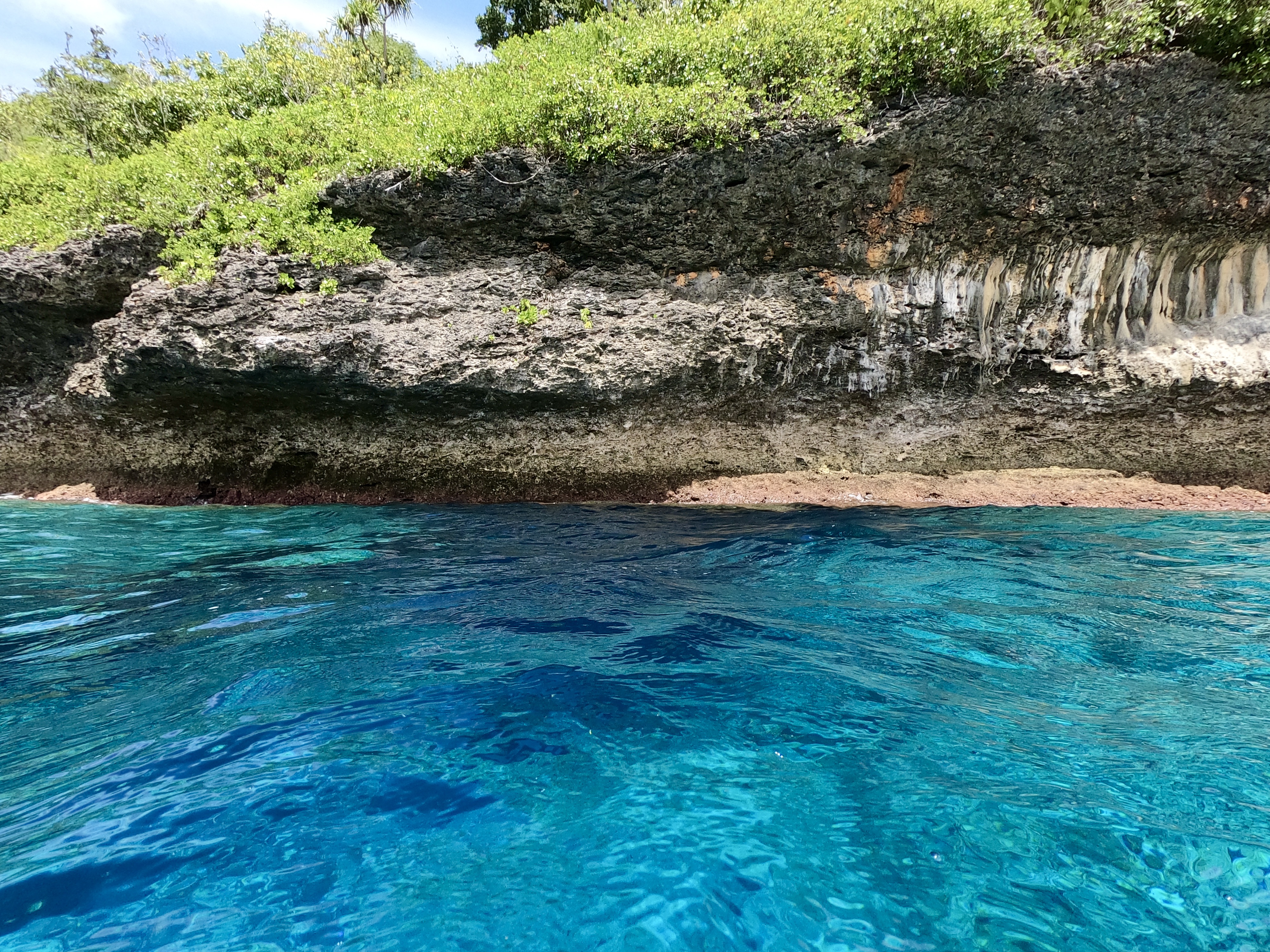 No worries. We were used to diving alone; and after a thorough briefing felt completely comfortable with the situation. As it turned out, when the dive boat arrived at the pass, the current was outgoing and it was absolutely ripping. The call was quickly made to alter the plan, and we all headed outside the pass in the dive boat to a spot on the outer side of the atoll. Pascal said we were still free to go on our own. Despite having very little information about where we were going, we hopped in the water and had a great dive wandering randomly amongst underwater canyons. We had a surface marker to deploy at the end of the dive so, without meandering too far or doing anything silly, we were confident knowing there was a boat to pick us up when we surfaced. It wouldn’t make the list of best dives ever; regardless, we had an awesome time doing our first solo dive on the outside of a remote atoll in the middle of the Pacific Ocean.