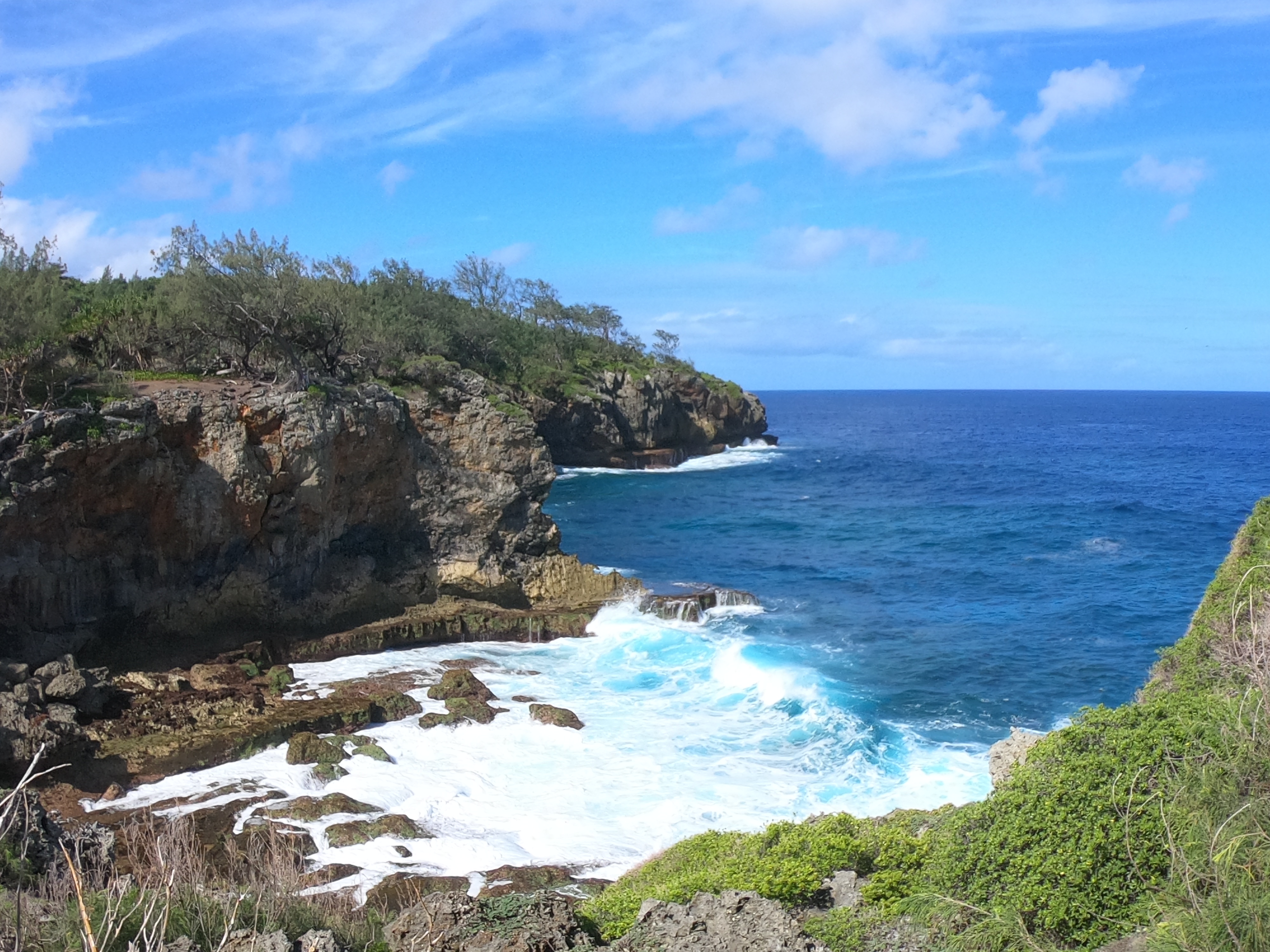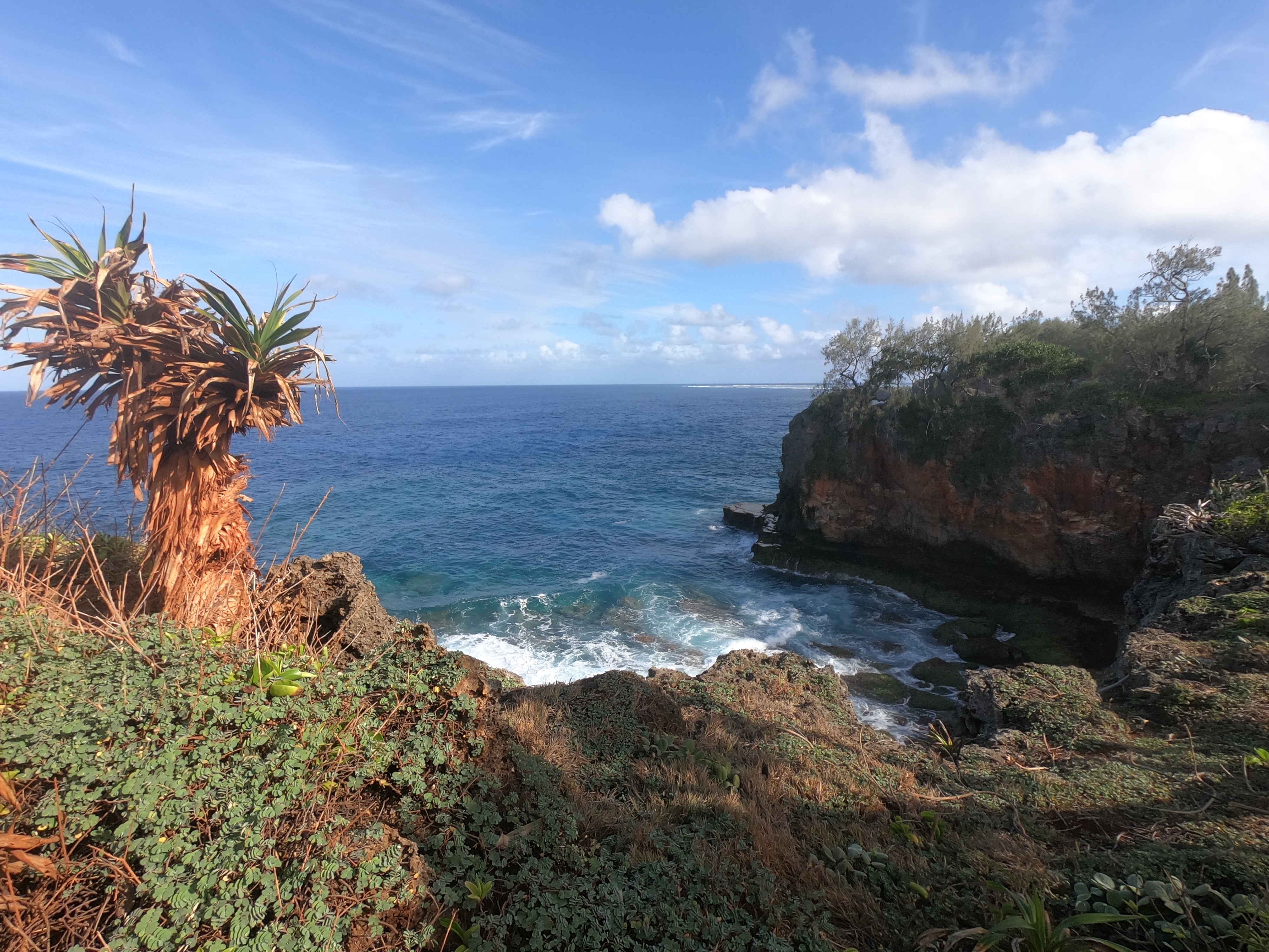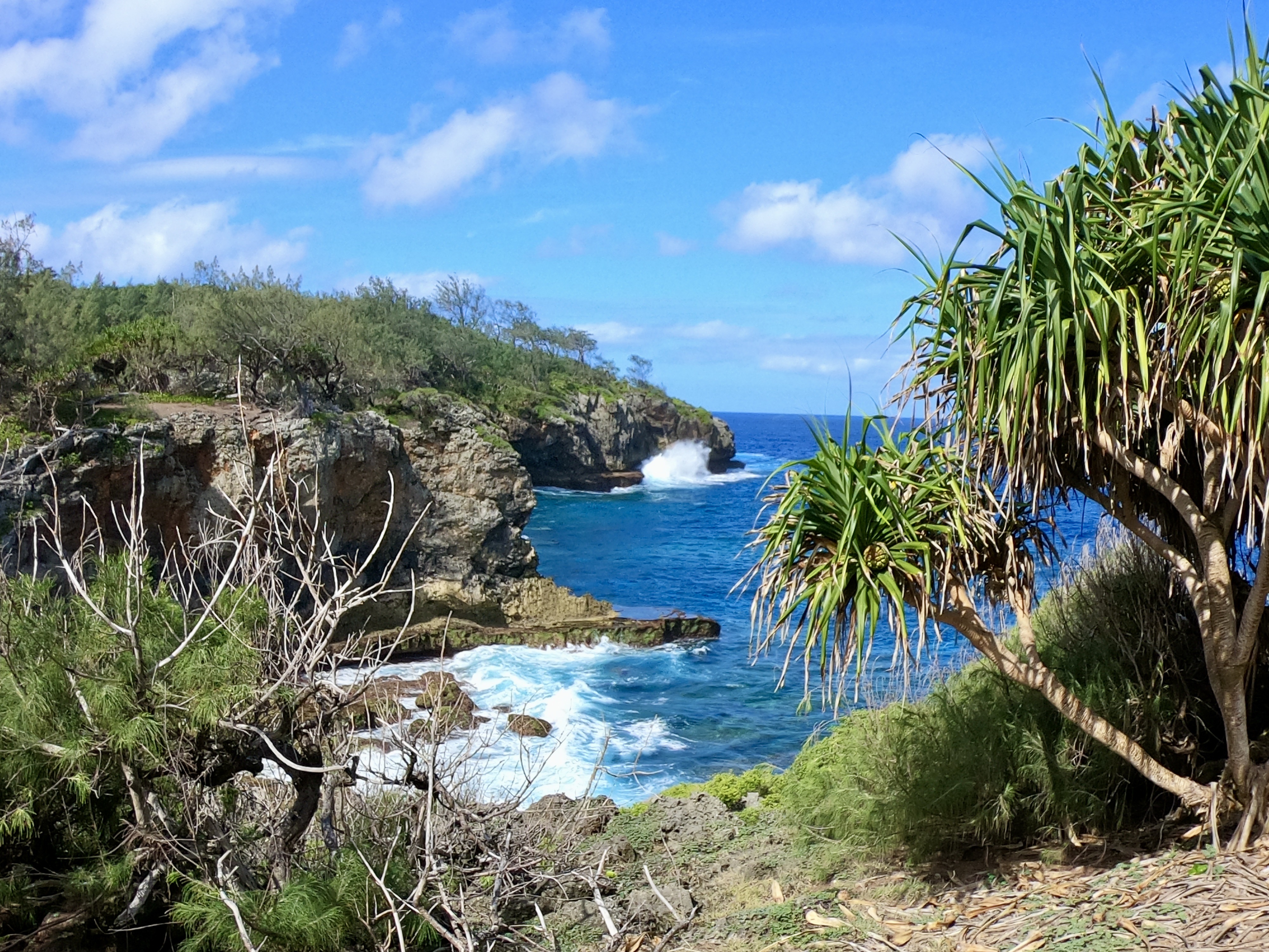 No worries. We were used to diving alone; and after a thorough briefing felt completely comfortable with the situation. As it turned out, when the dive boat arrived at the pass, the current was outgoing and it was absolutely ripping. The call was quickly made to alter the plan, and we all headed outside the pass in the dive boat to a spot on the outer side of the atoll. Pascal said we were still free to go on our own. Despite having very little information about where we were going, we hopped in the water and had a great dive wandering randomly amongst underwater canyons. We had a surface marker to deploy at the end of the dive so, without meandering too far or doing anything silly, we were confident knowing there was a boat to pick us up when we surfaced. It wouldn’t make the list of best dives ever; regardless, we had an awesome time doing our first solo dive on the outside of a remote atoll in the middle of the Pacific Ocean.