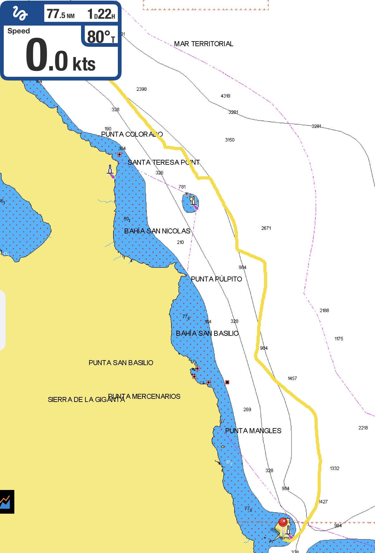 Isabella Bank as seen on the Navionics charts