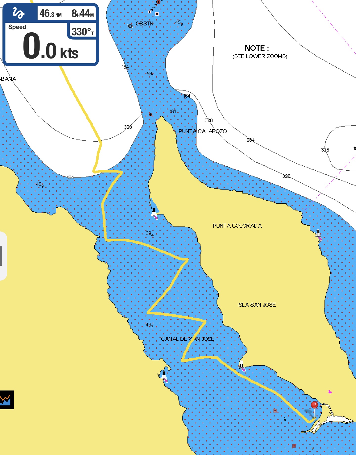 Ironically, we later learned, a sailboat that made the same passage a month or so after we did, had a quite different experience, and definitely concluded the Disappointment Islands to be aptly named. It turns out, if you don’t zoom in and magnify electronic charts far enough, you lose some degree of detail. In fact, some landmarks fail to even register on the screen – a detail which, for us, has resulted in our painstaking practice, without exception, of zooming in closely along the entire route of any plotted course we are on.