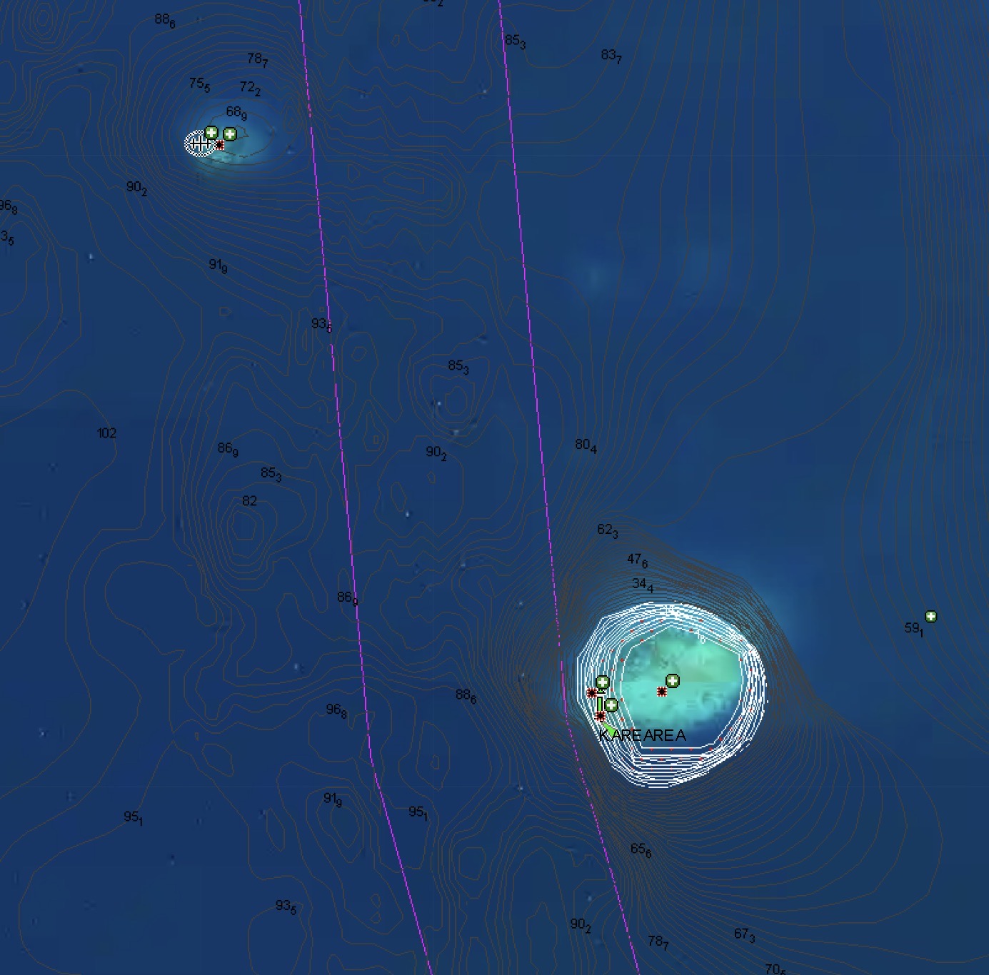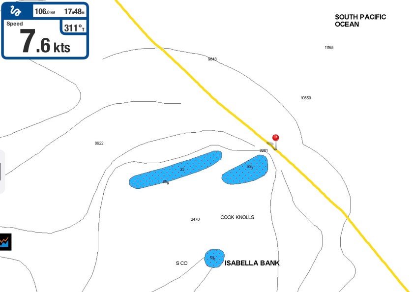 Sometimes they turn out to be areas that create exceptionally volatile and rough surface conditions which prevent even getting in the water to take a look. Other times they prove to be a magnet for fishing boats navigating erratically as they string out nets, long lines and other implements of death – a place best avoided entirely. Sometimes it turns out they don’t even seem to exist…we actually do pass over the top and manage to jump in the water only to find nothing but blue water underneath us. Possibly real, but certainly not where the chart indicates. Or we never find out because we pass by in the dead of night.