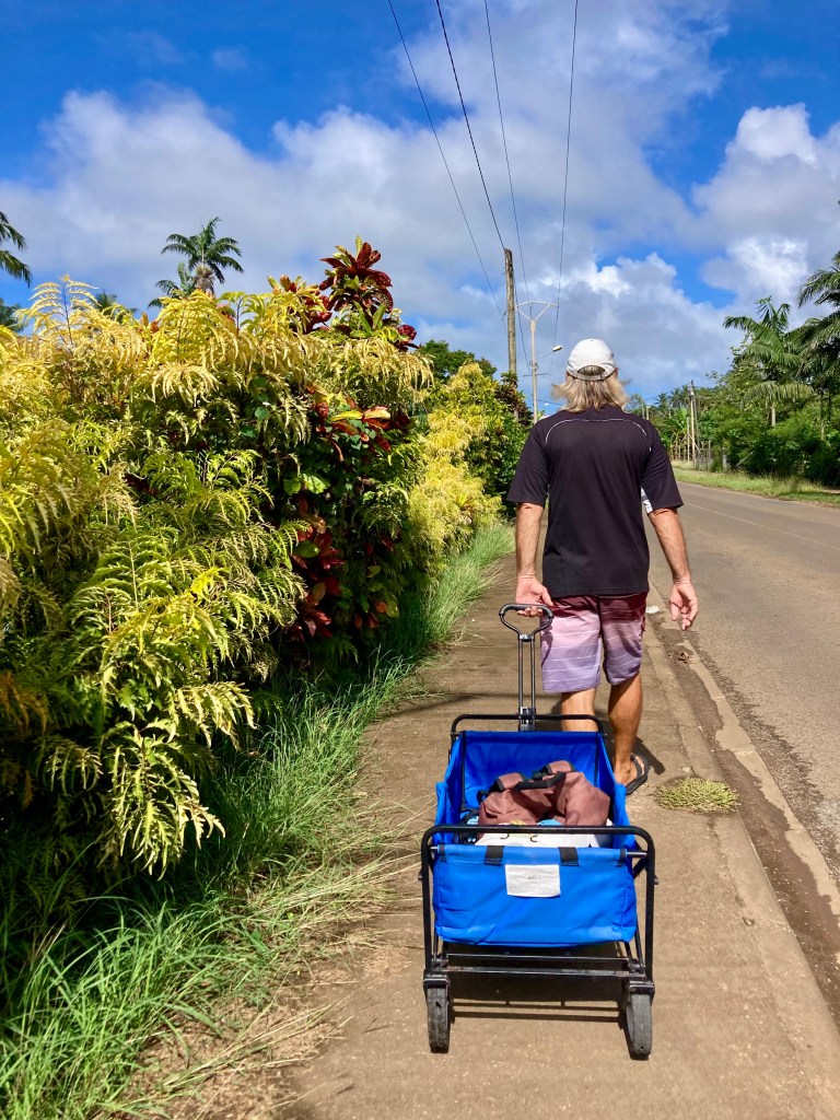 The typical procedure is to go ashore in our dinghy, walk to the nearest gas station with empty five-gallon jerry cans, fill them with either diesel or petrol, then haul them back to the dinghy in our wagon, repeating the process as many times as is needed to fill tanks or top up our reserves.