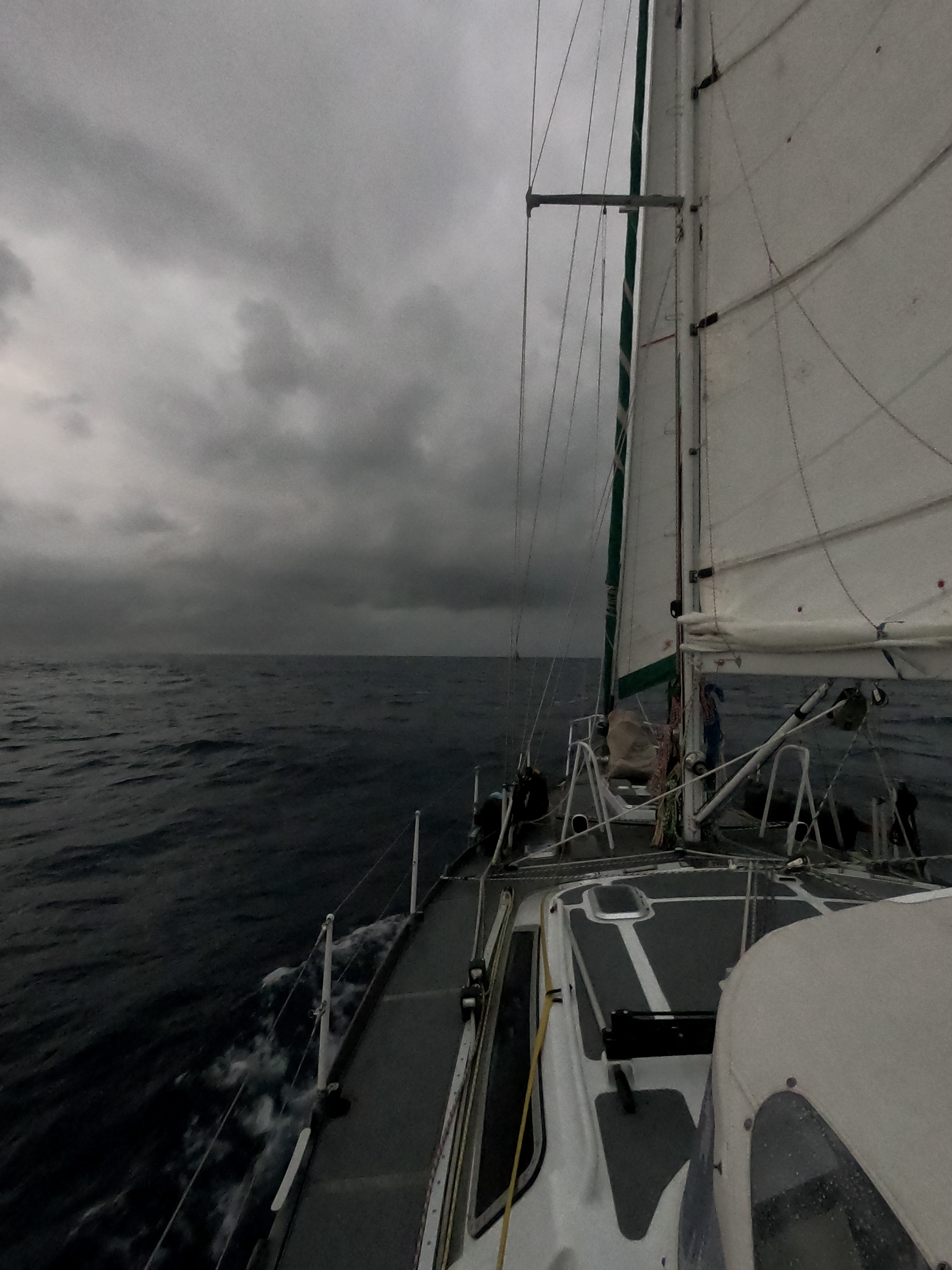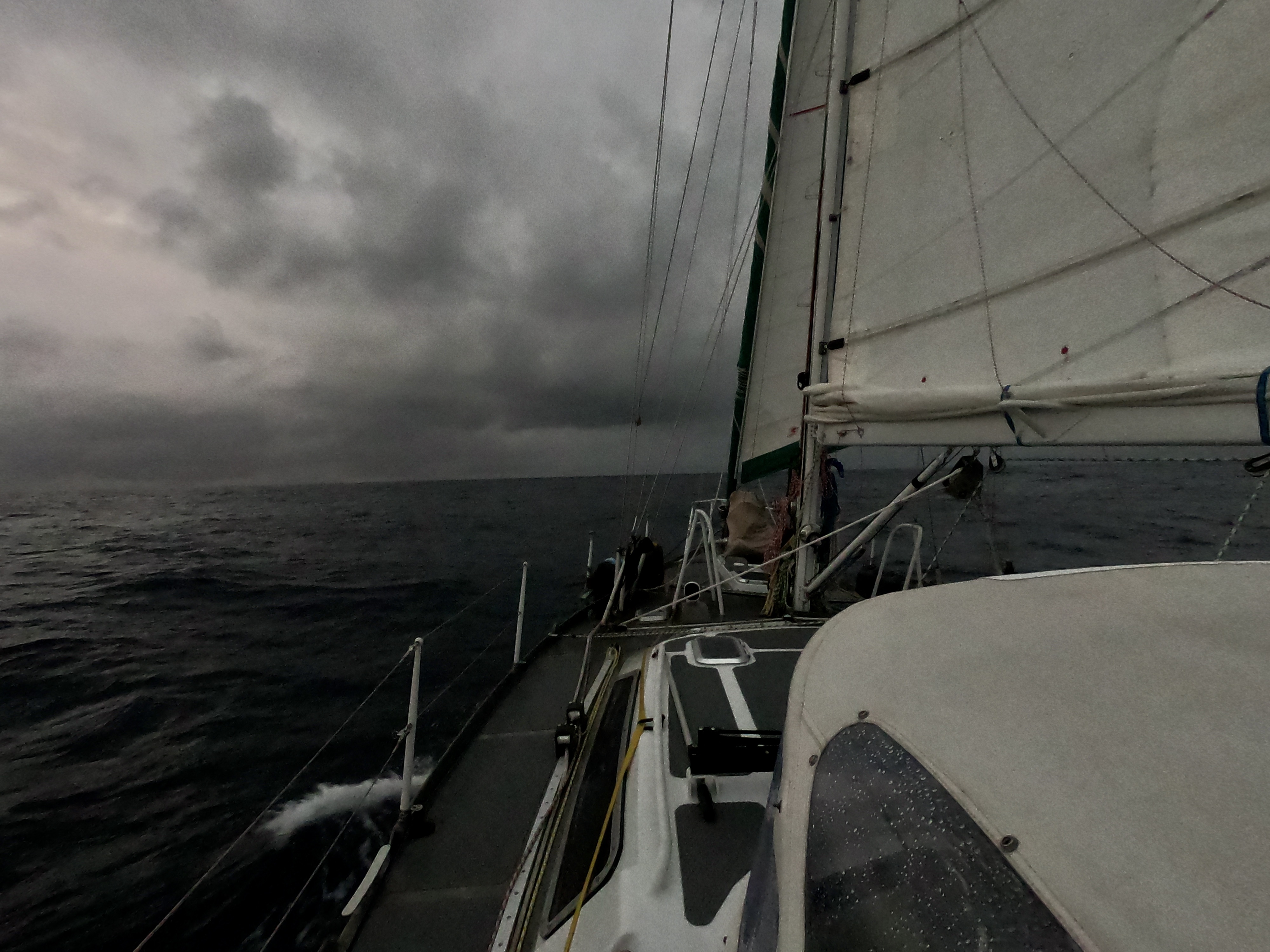 At anchor, the rain can be inconvenient and even annoying. But underway, it can become relentless and unmerciful. In the middle of the Pacific Ocean, more than thousand miles from anything, it can be more than a little bit intimidating.