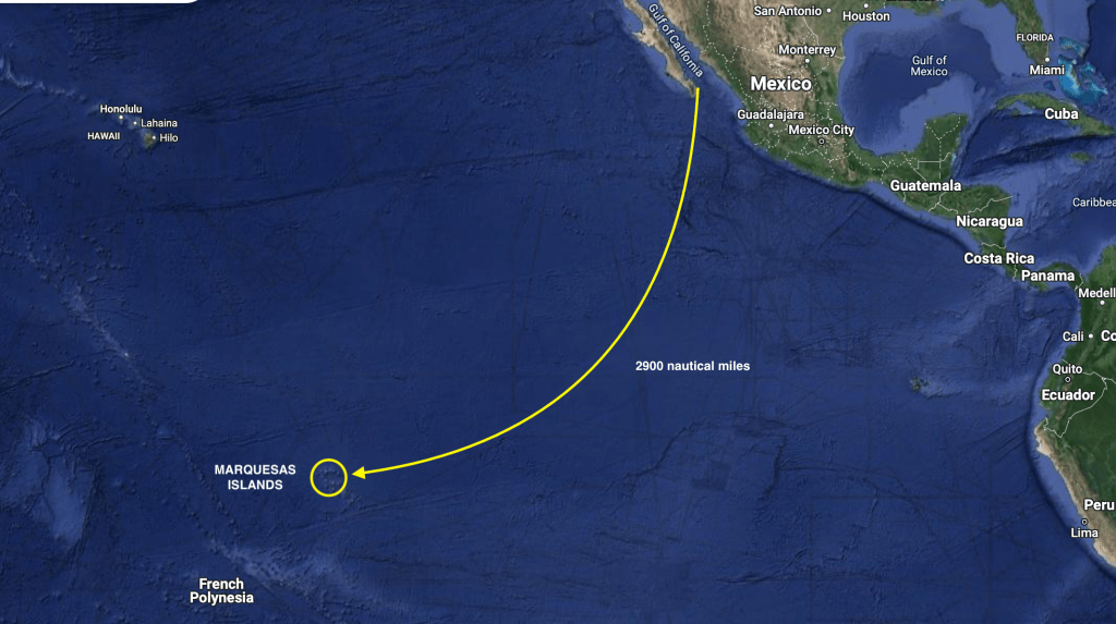 The nearly three thousand nautical miles of Pacific Ocean between Mexico and the tiny French Polynesian island of Nuku Hiva, which we anticipate to be a three to four week passage aboard our forty seven foot aluminum sailboat, has itself always seemed like a daunting distance.