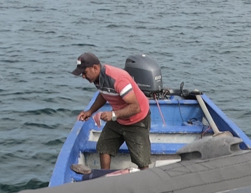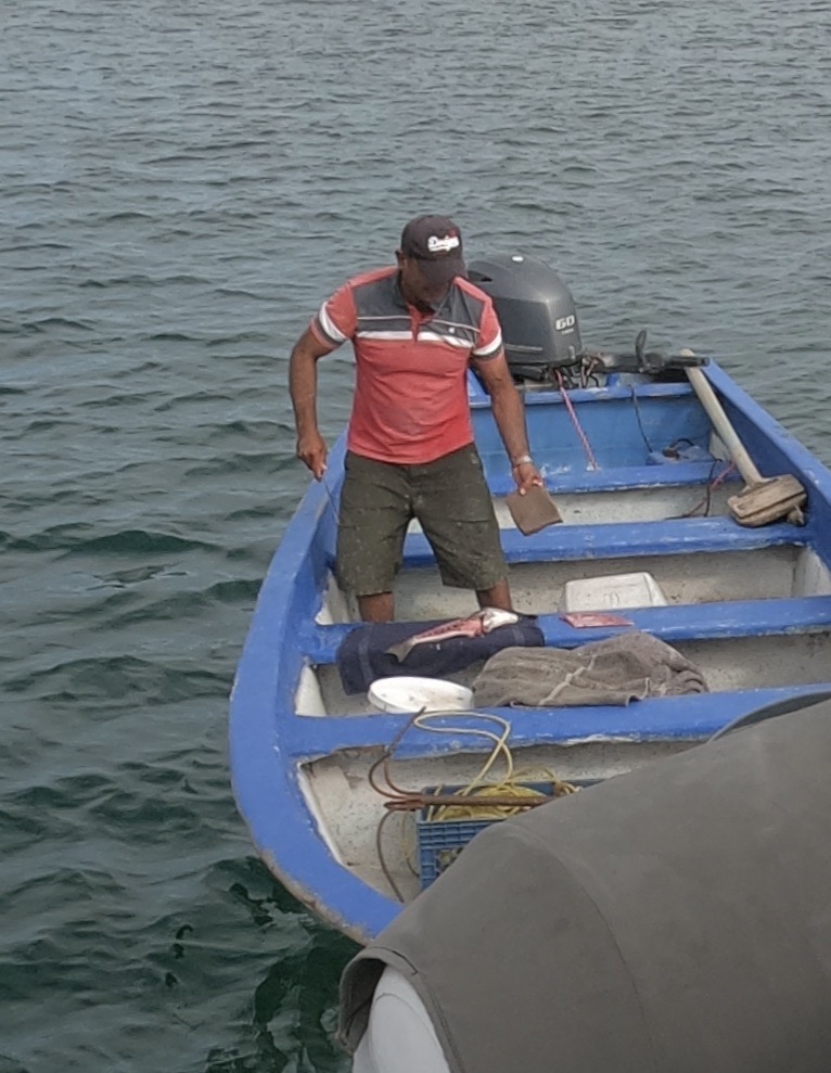 Nevertheless, within about five minutes of shutting off our engine after setting the anchor at Los Gatos, a local fisherman motored up.